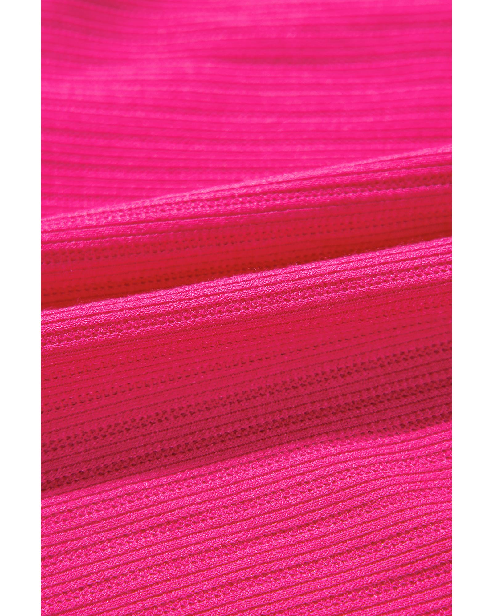 Rose Red Colorful Crochet V Neck Textured Tiered Ruffled Long Sleeve Mini Dress – S