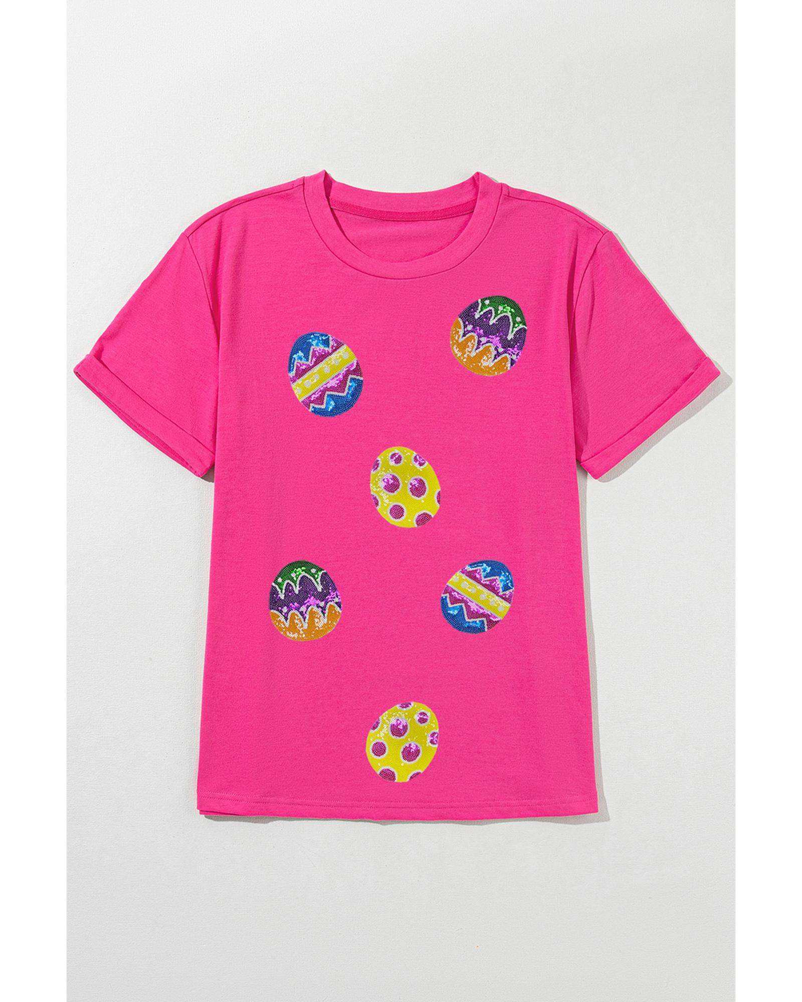 Rose Red Easter Eggs Patched Crew Neck Graphic Tee – M