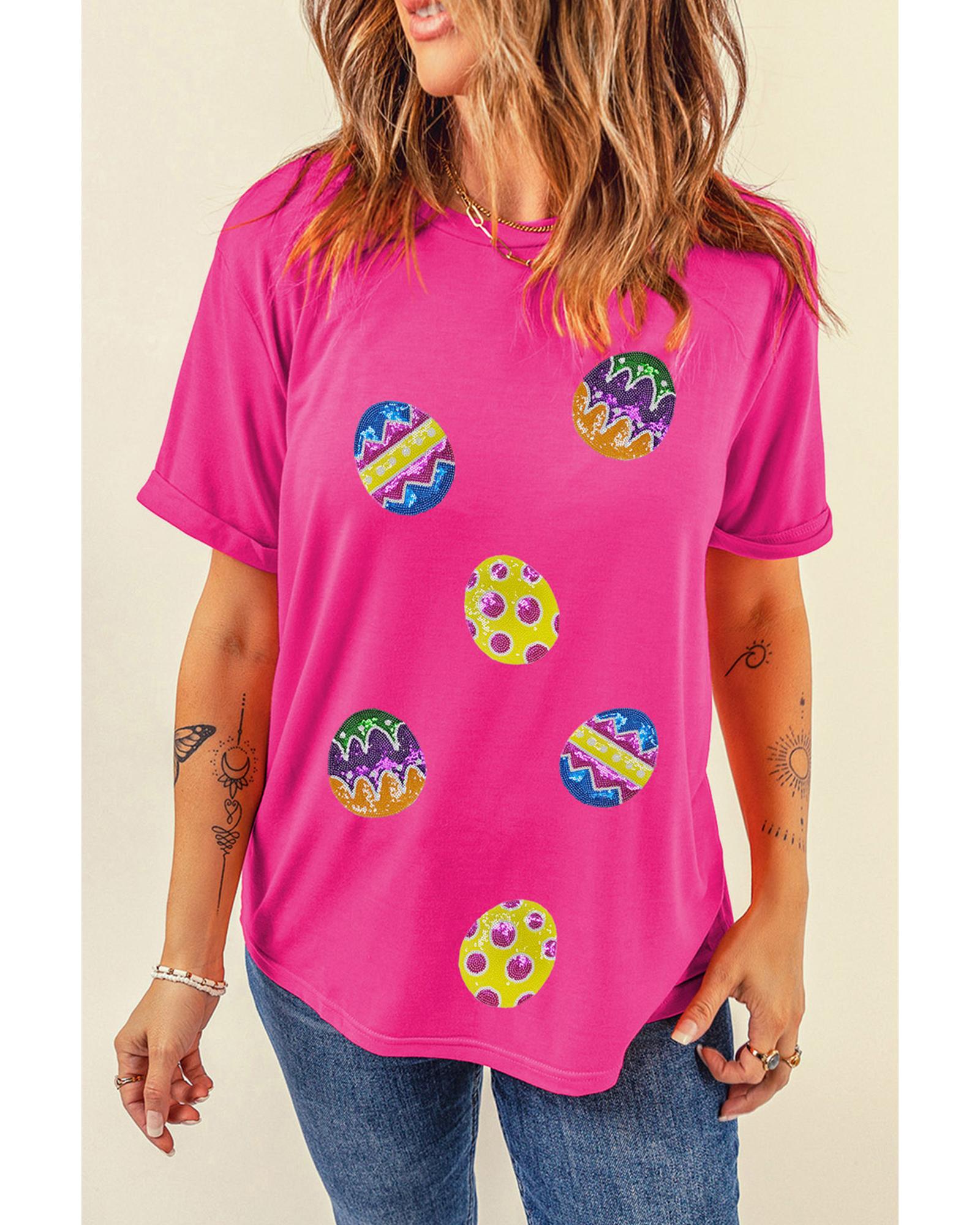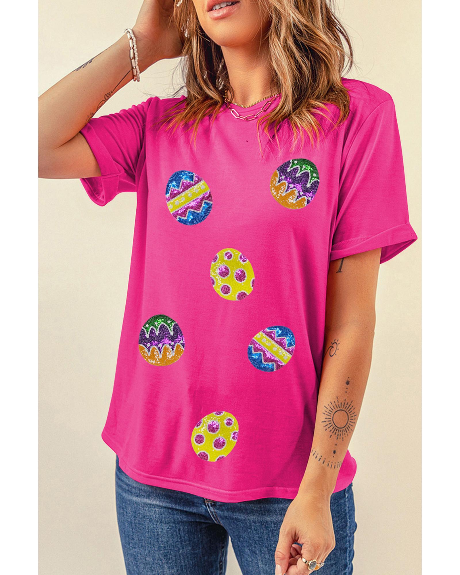Rose Red Easter Eggs Patched Crew Neck Graphic Tee – XL