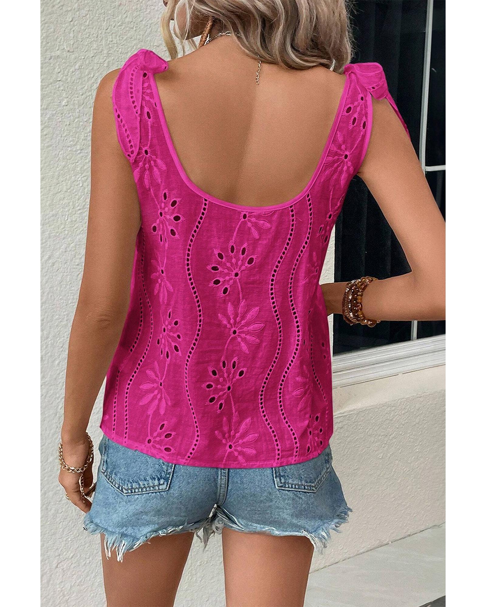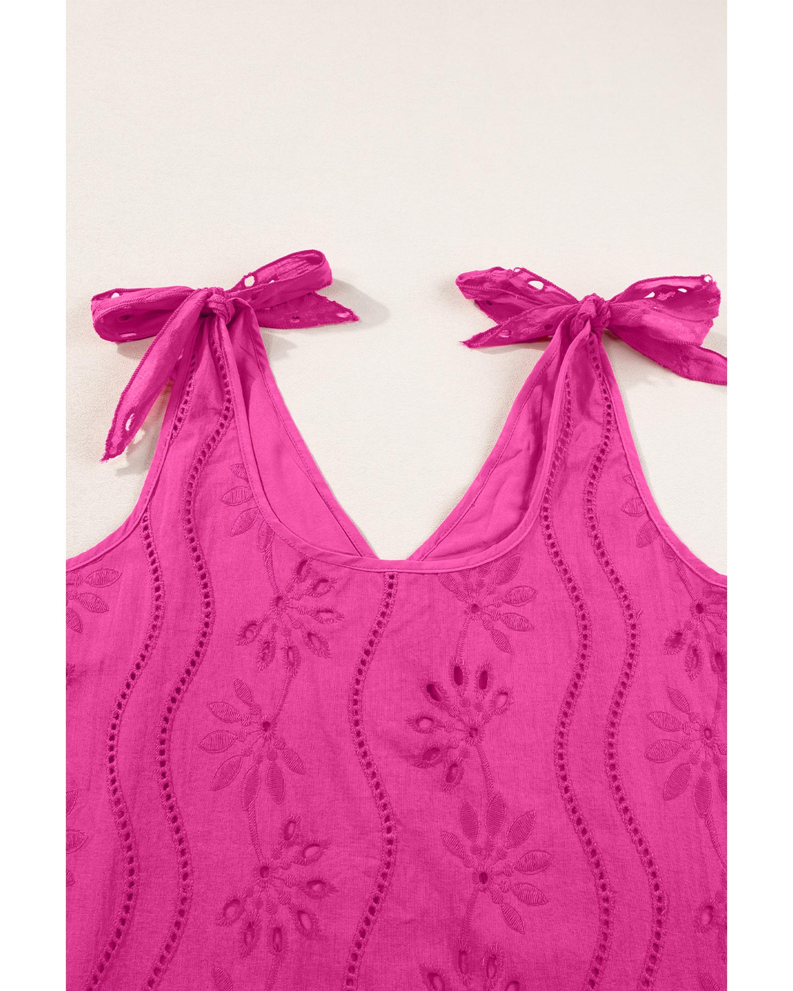 Rose Red Embroidery Patterned Knotted Straps V Neck Tank Top – XL