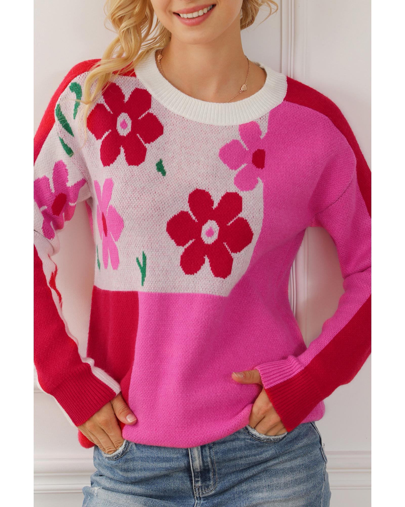 Jungle Green Loose Eyelet V Neck Drop Shoulder Sweater - M
