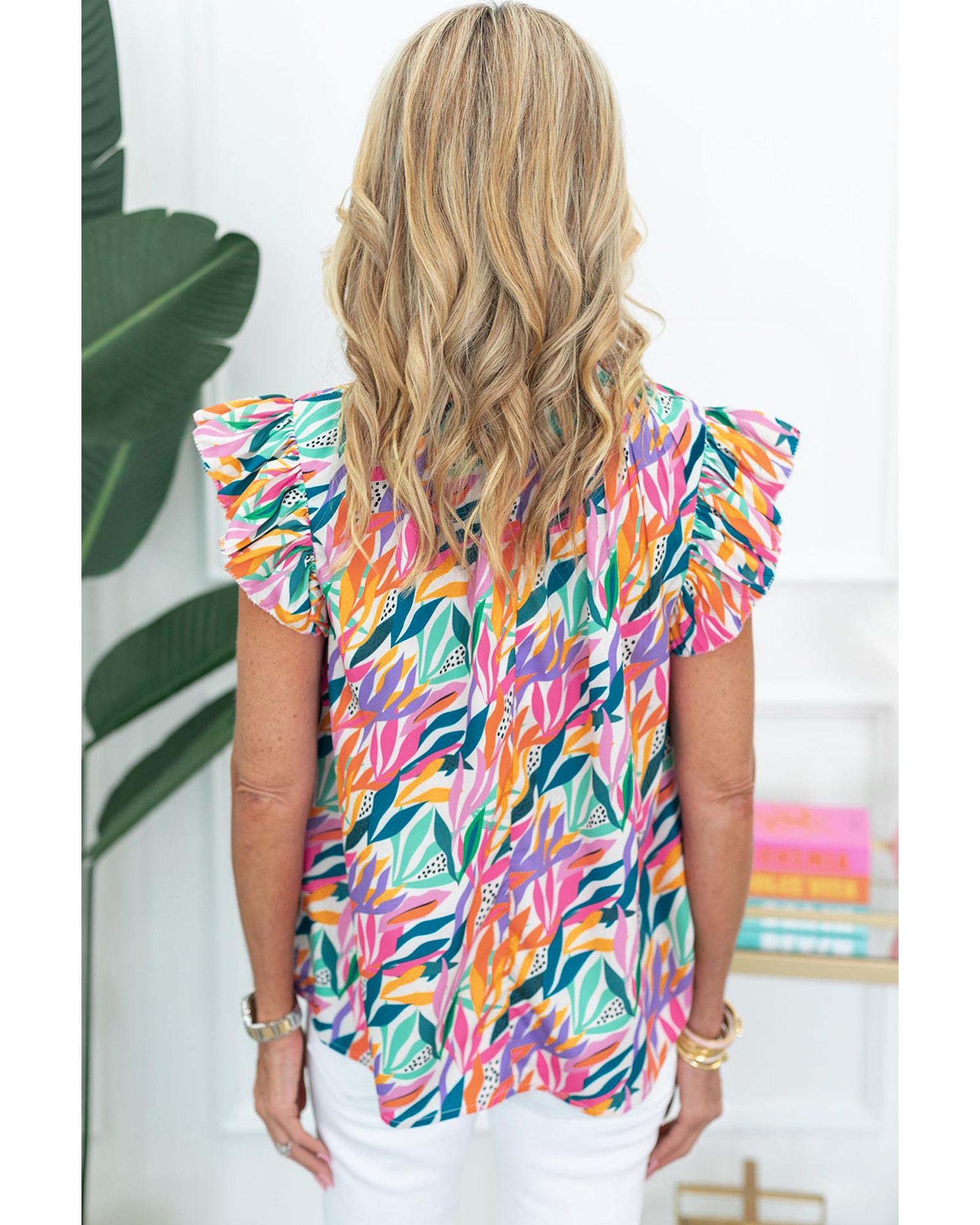 Rose Red Floral Print Ruffled Flutter Sleeve Blouse – XL
