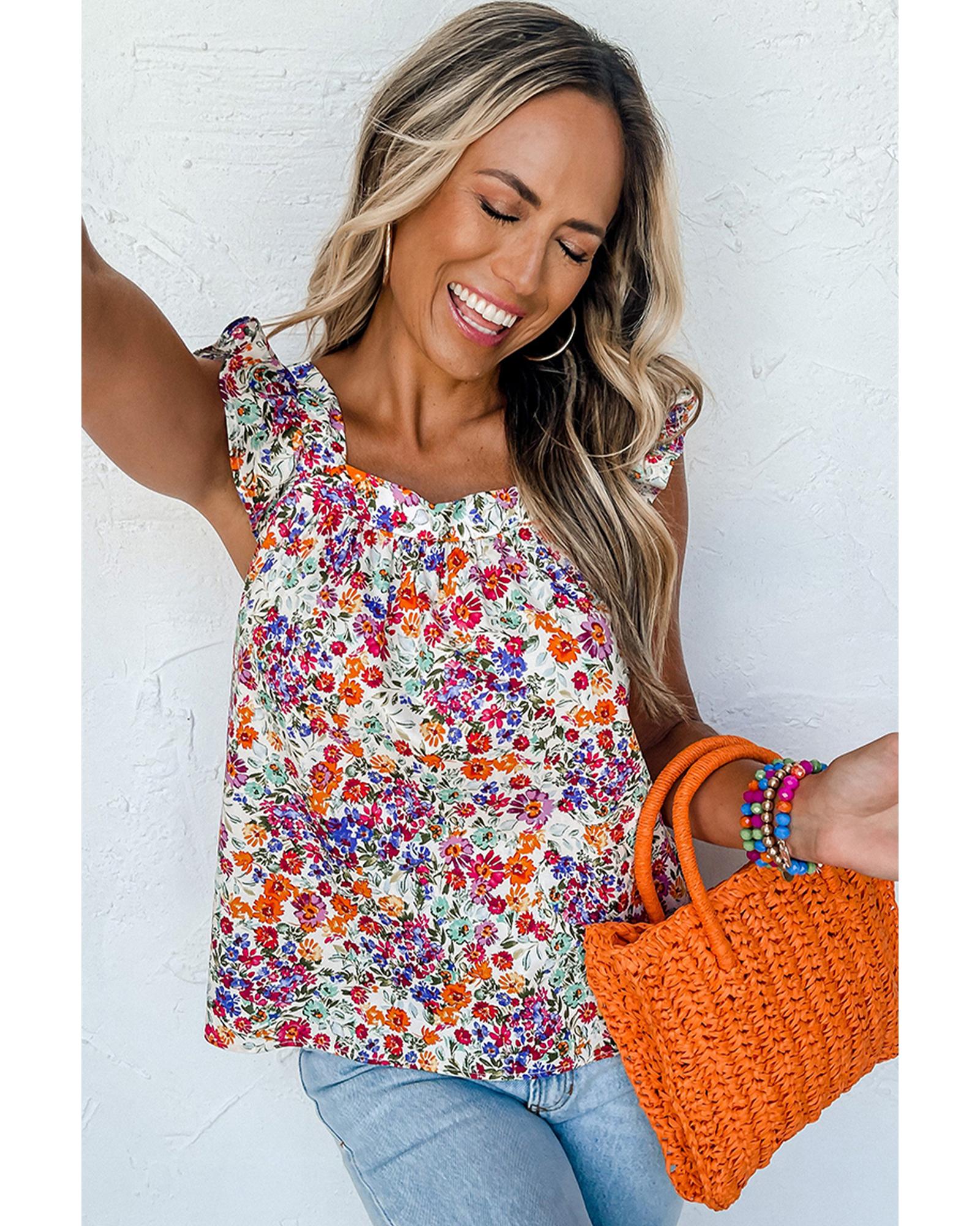 Rose Red Floral Square Neck Flutter Tank Top – S