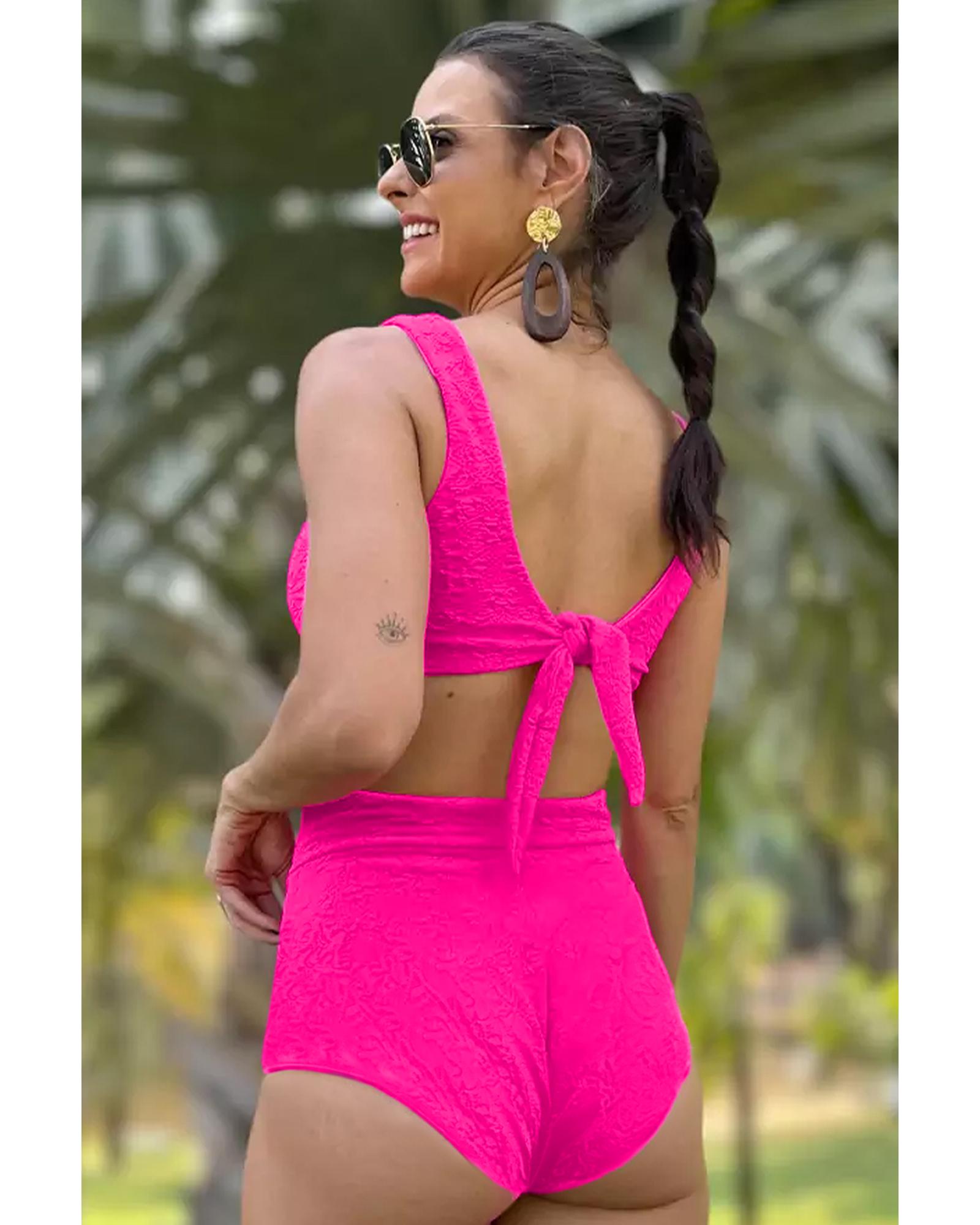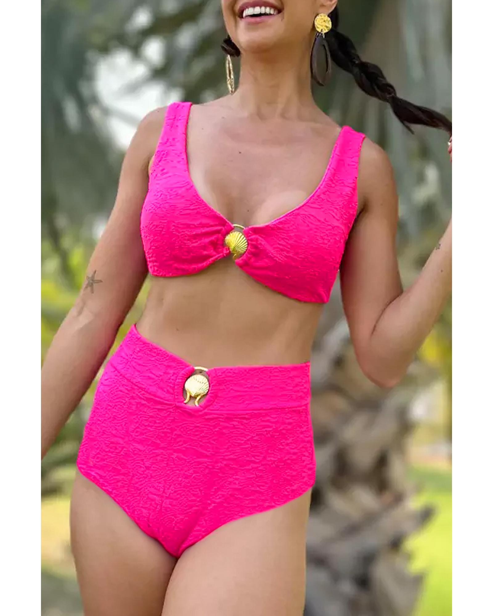 Rose Red Gold Shell Decor Wire-free Knotted 2pcs Bikini Swimsuit – 2XL