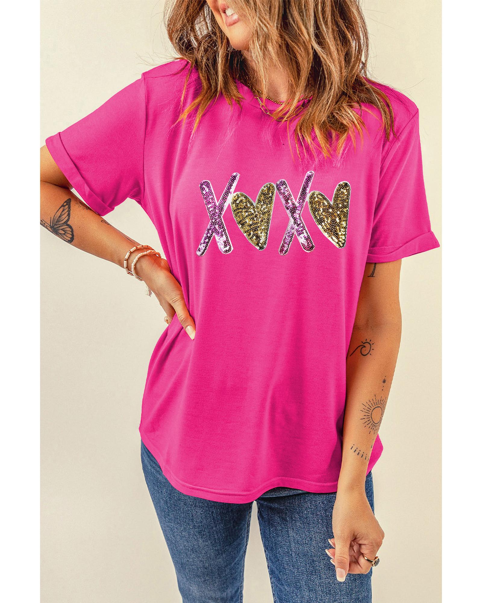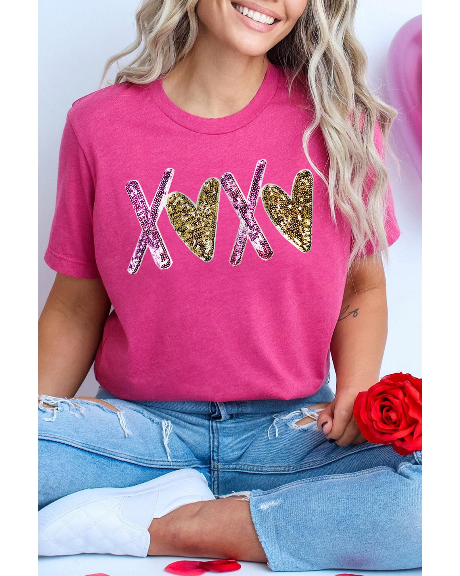 Rose Red Heart XOXO Graphic Crewneck Valentines T Shirt – S