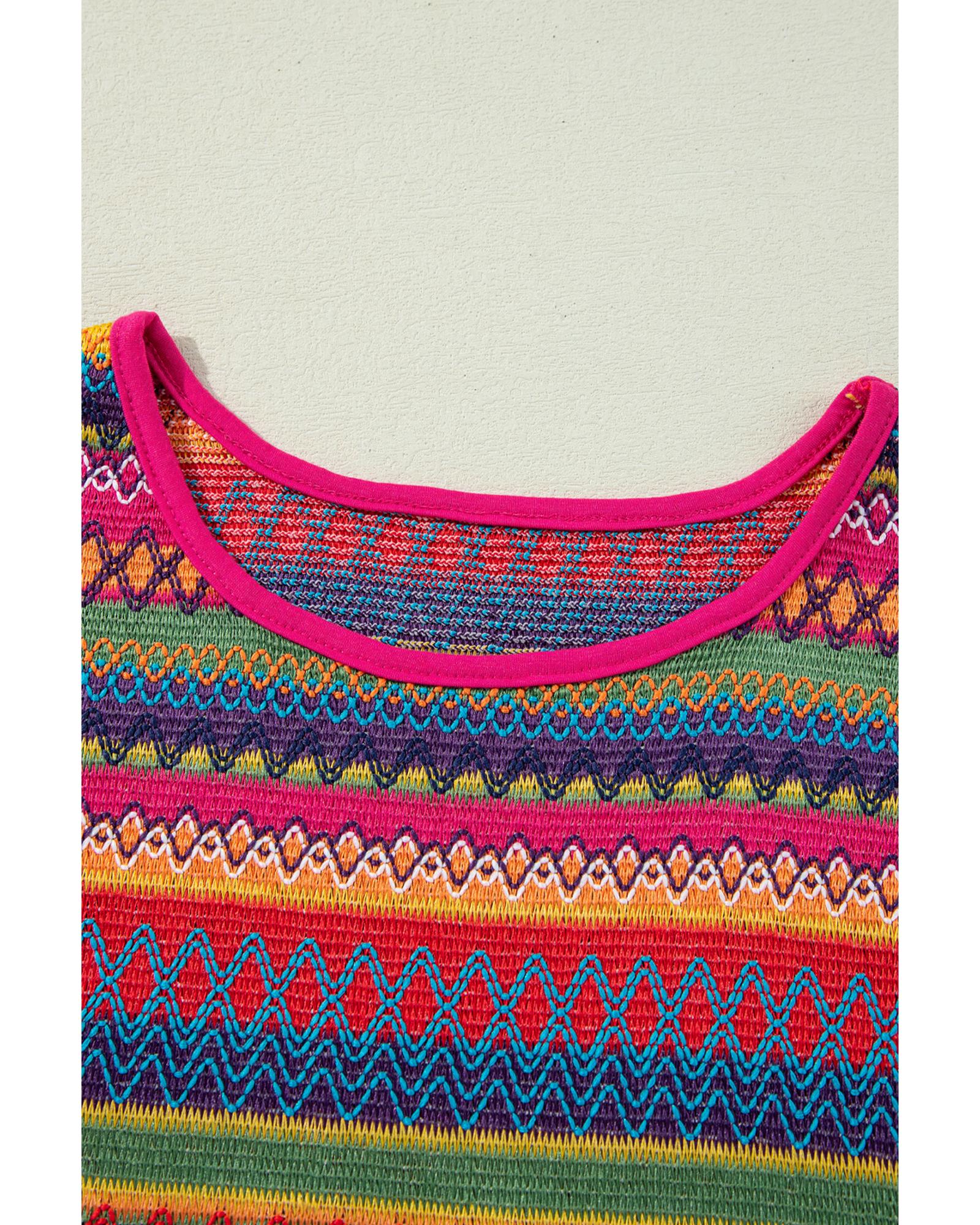 Rose Red Jacquard Textured Tasseled Cap Sleeve Top – S