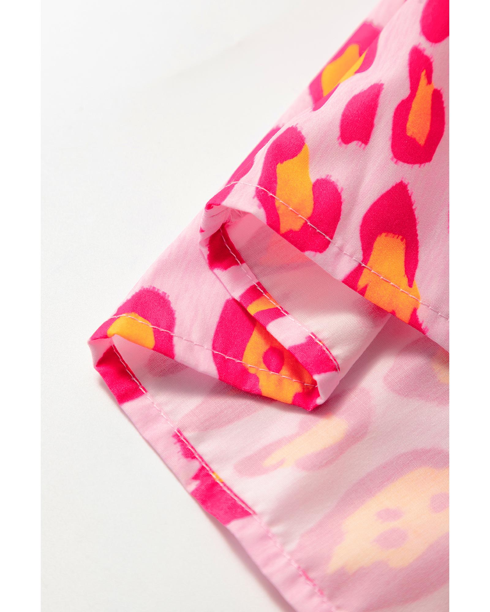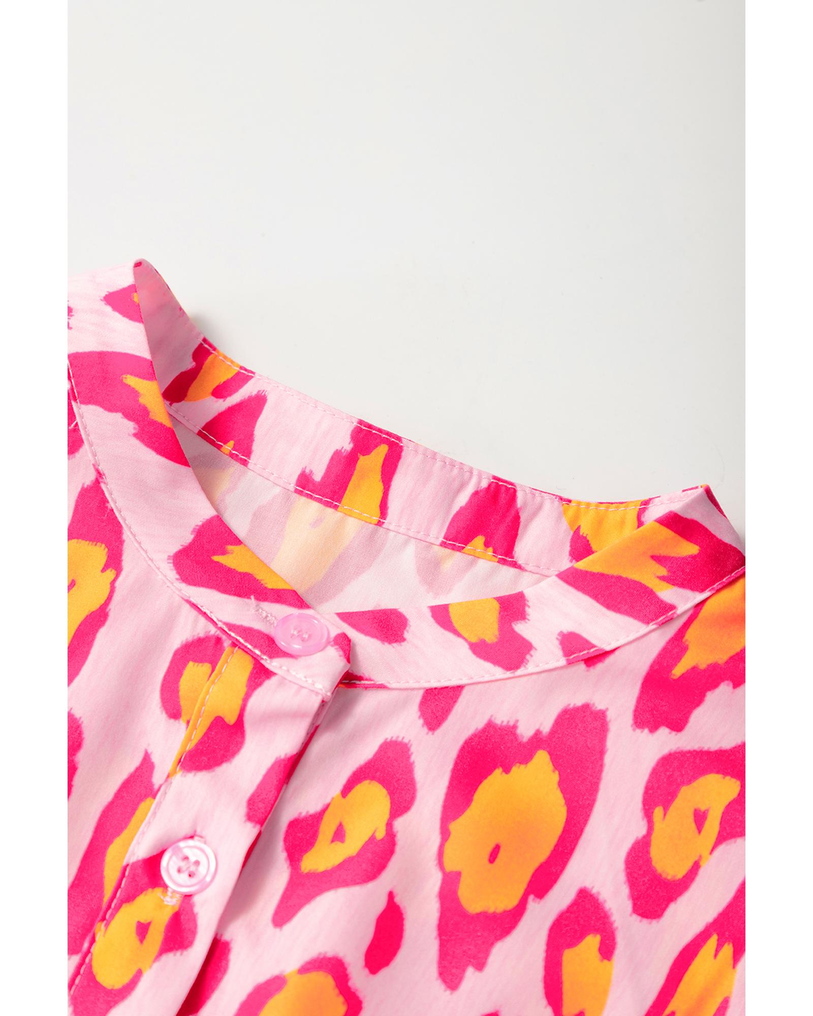 Rose Red Oversized Leopard Print Balloon Sleeve Casual Shirt – S