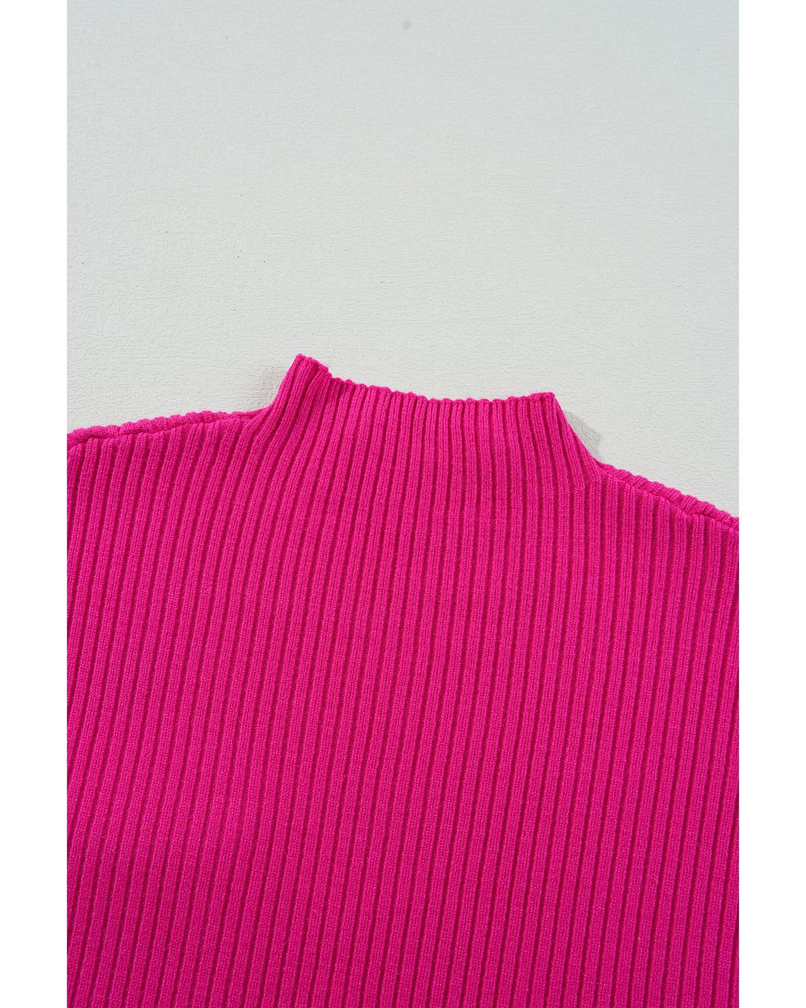 Rose Red Patch Pocket Ribbed Knit Short Sleeve Sweater – XL