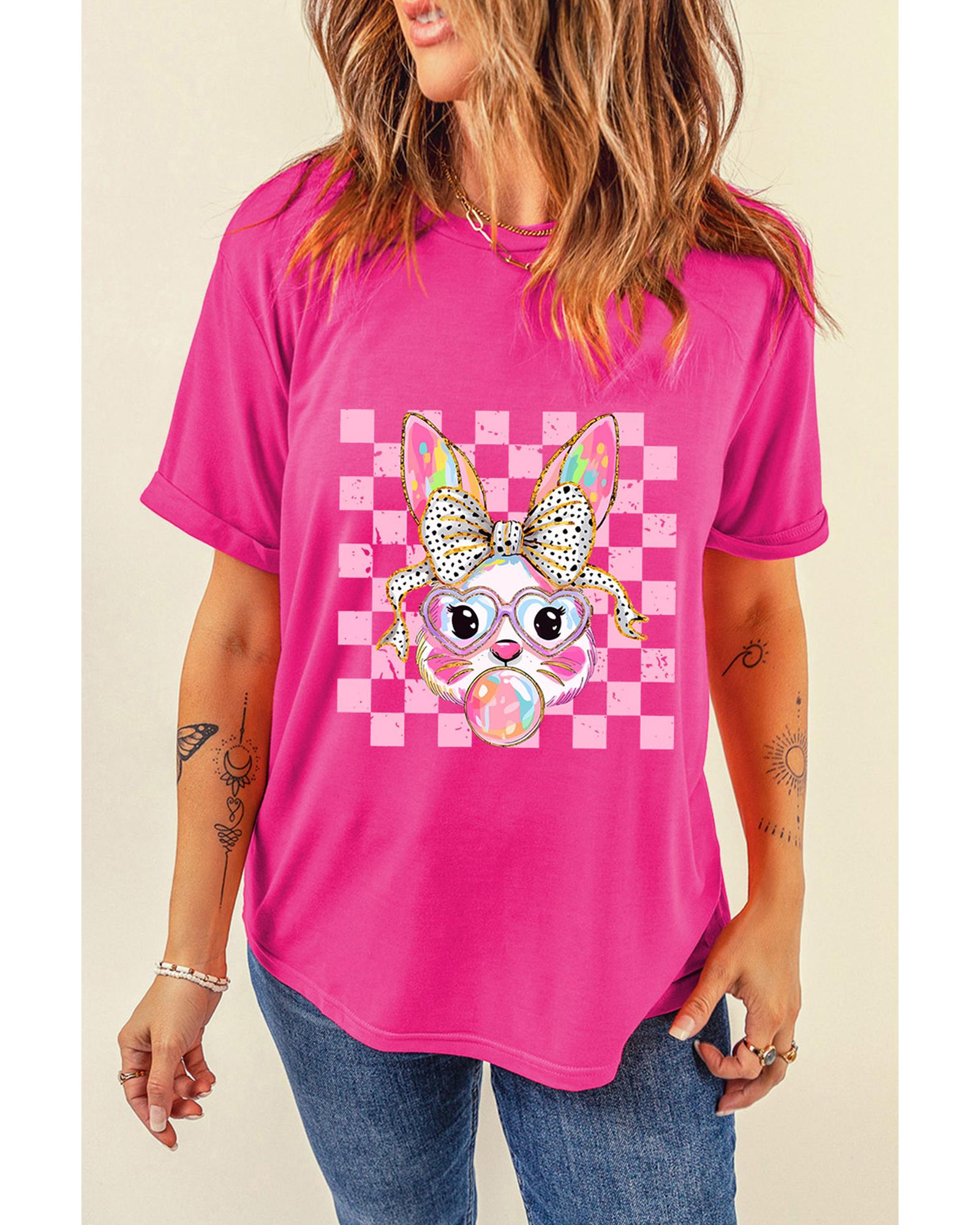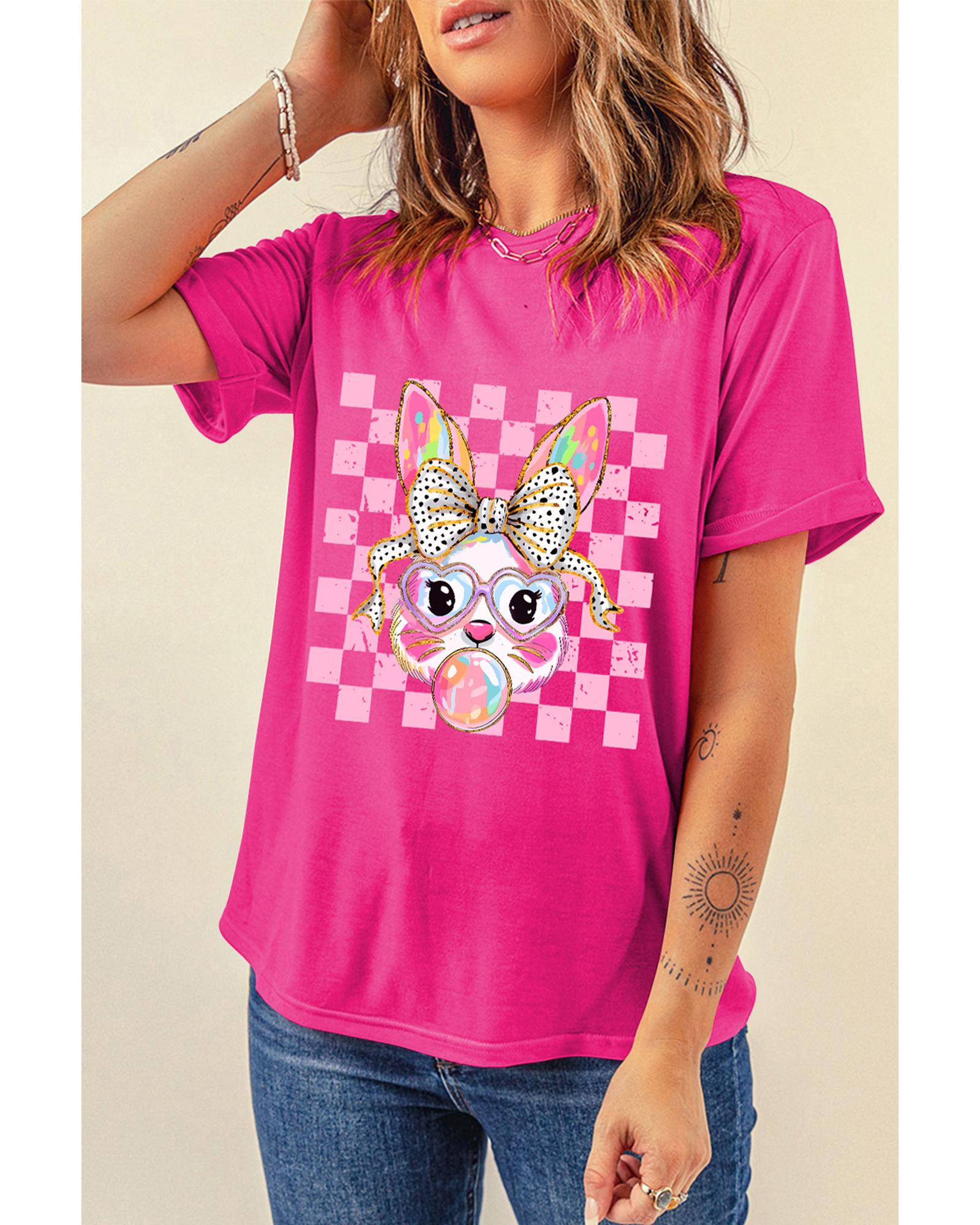 Rose Red Plaid Bubble Gum Rabbit Graphic Eater T Shirt – XL
