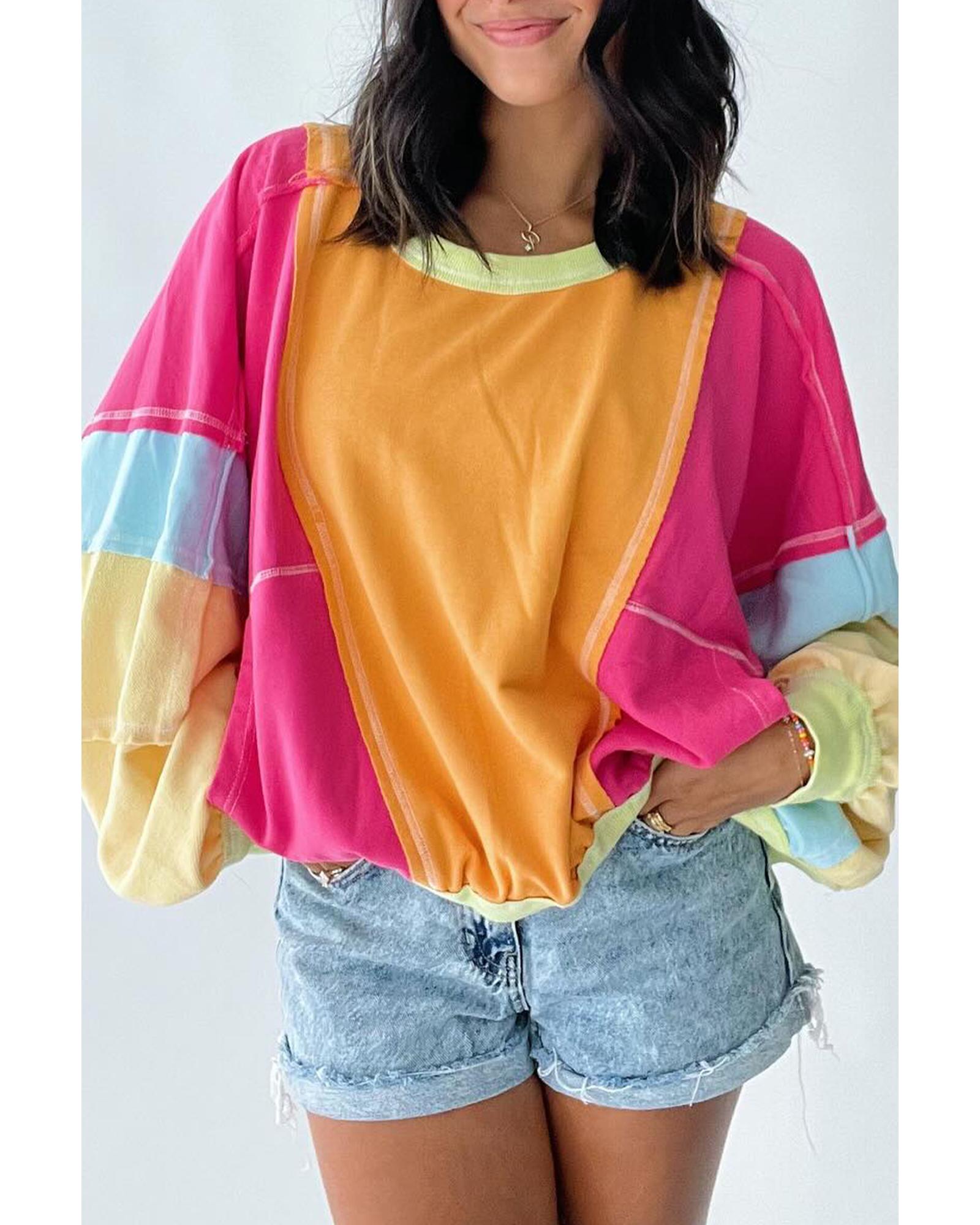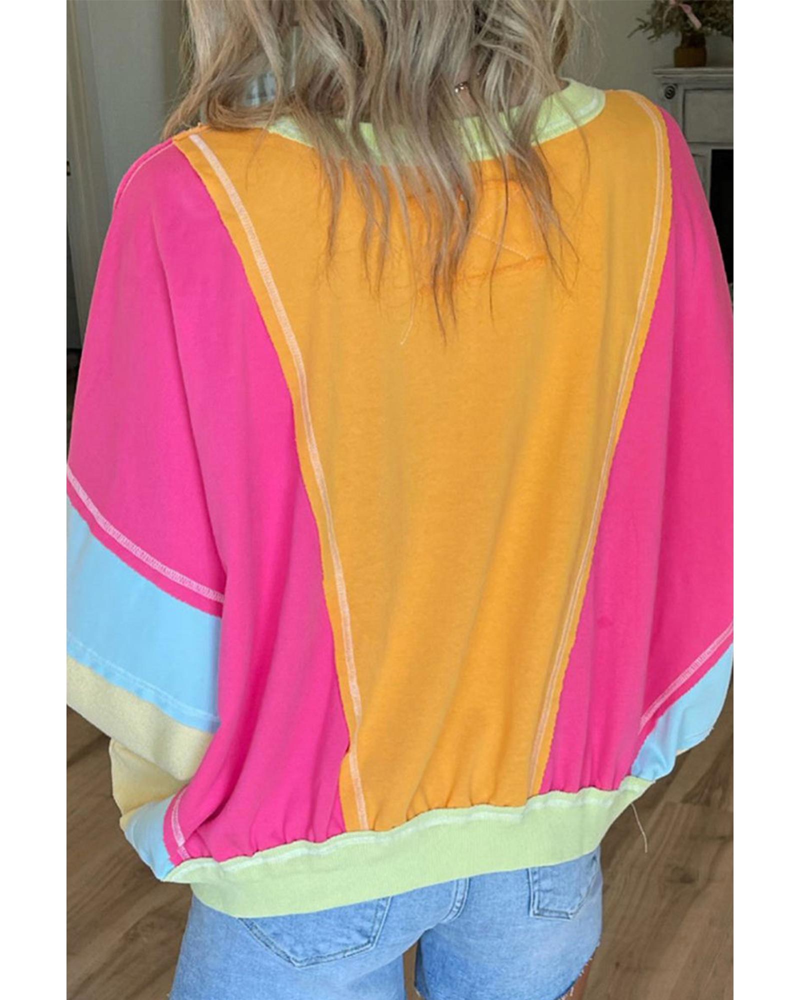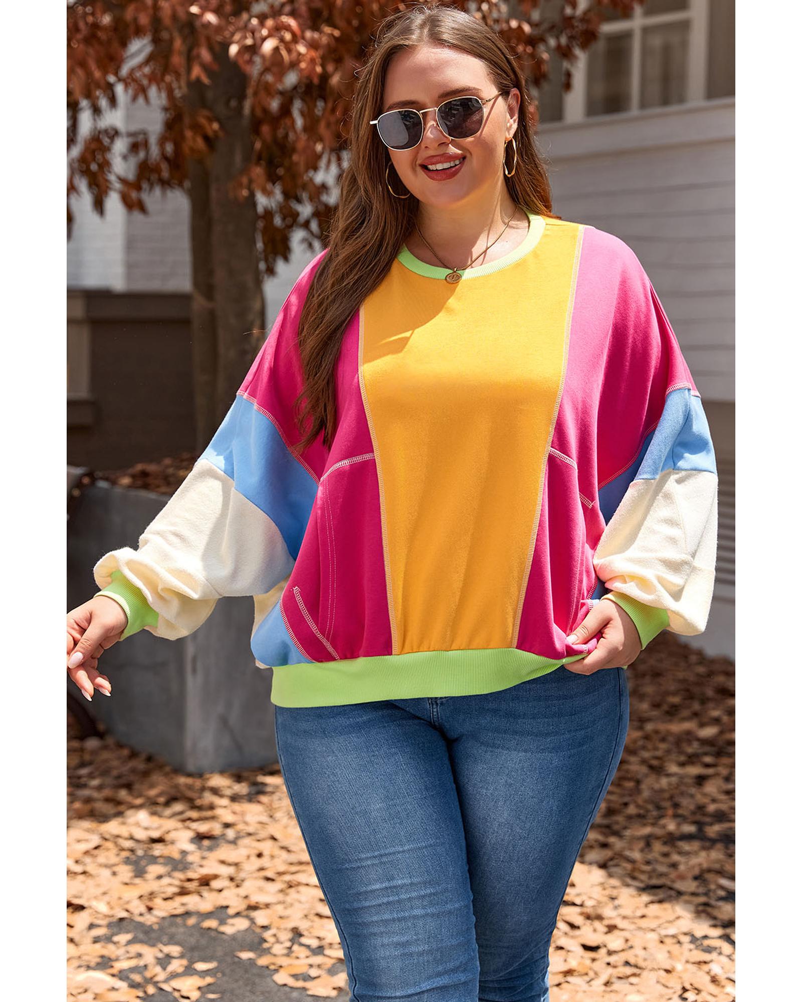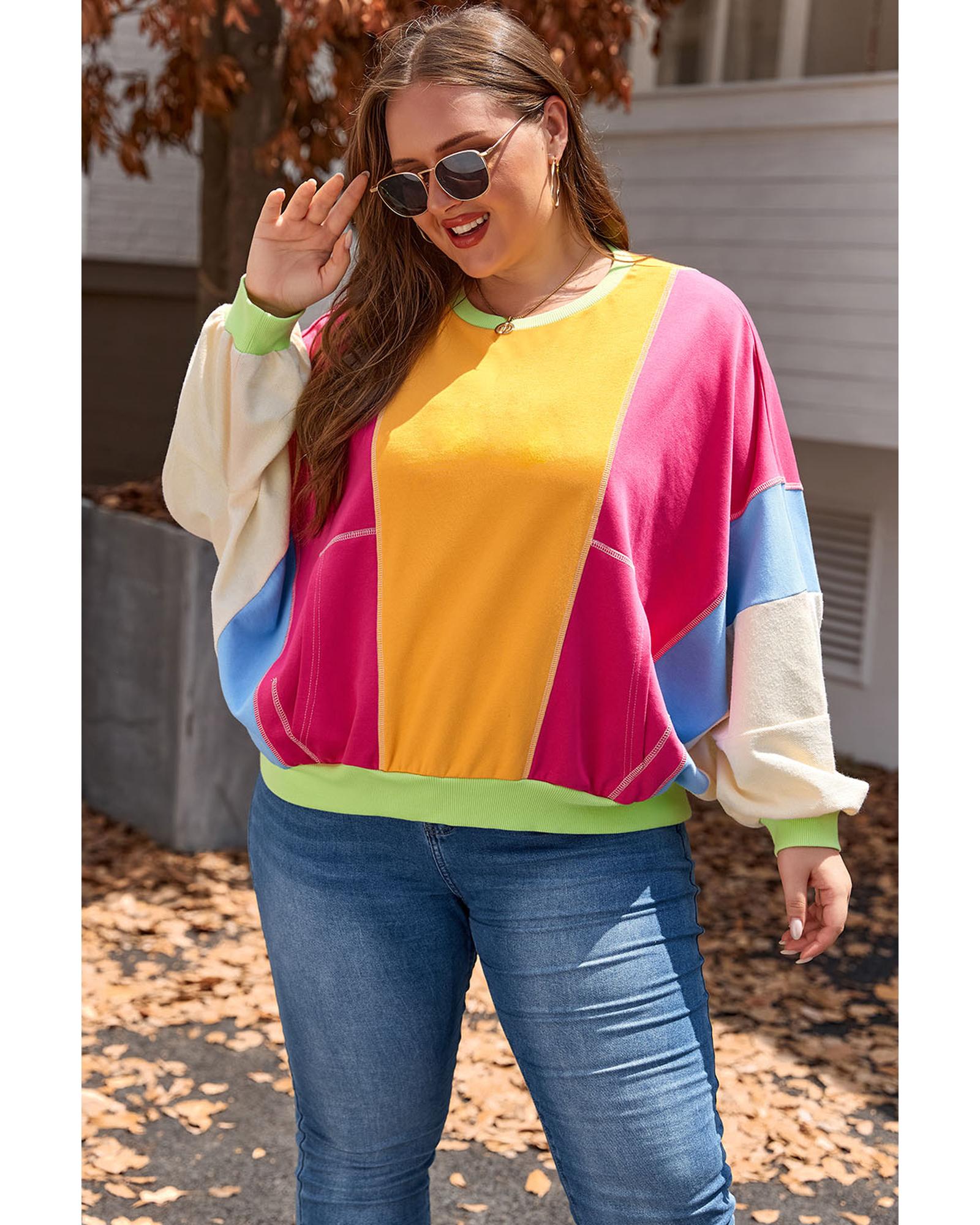 Rose Red Plus Size Colorblock Patchwork Exposed Seam Sweatshirt – 3X