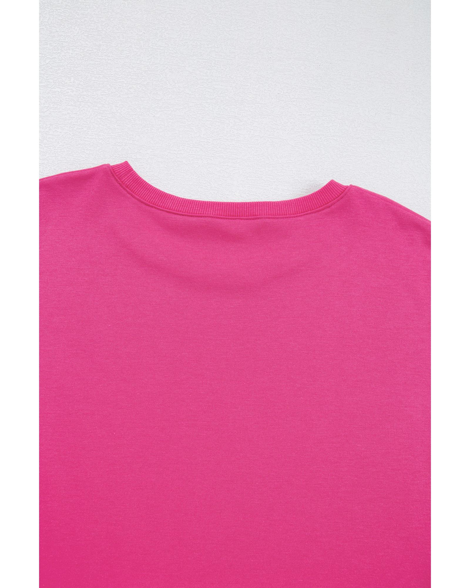 Rose Red Plus Size Printed Patchwork Sleeve Split Sweatshirt – 3X