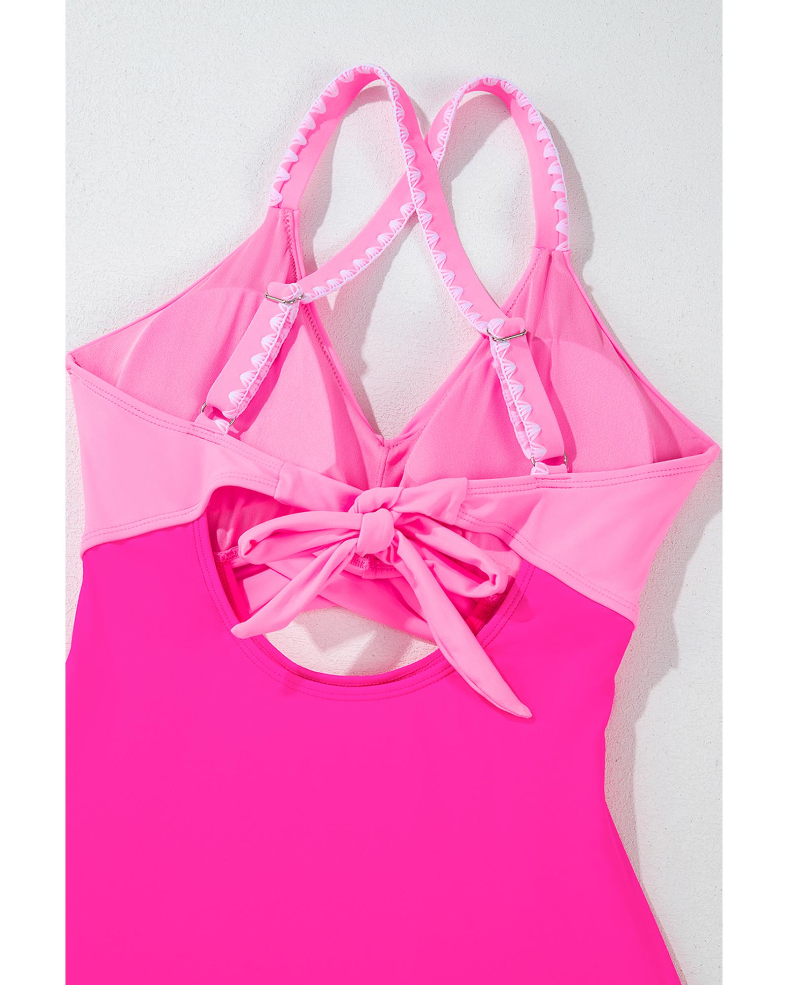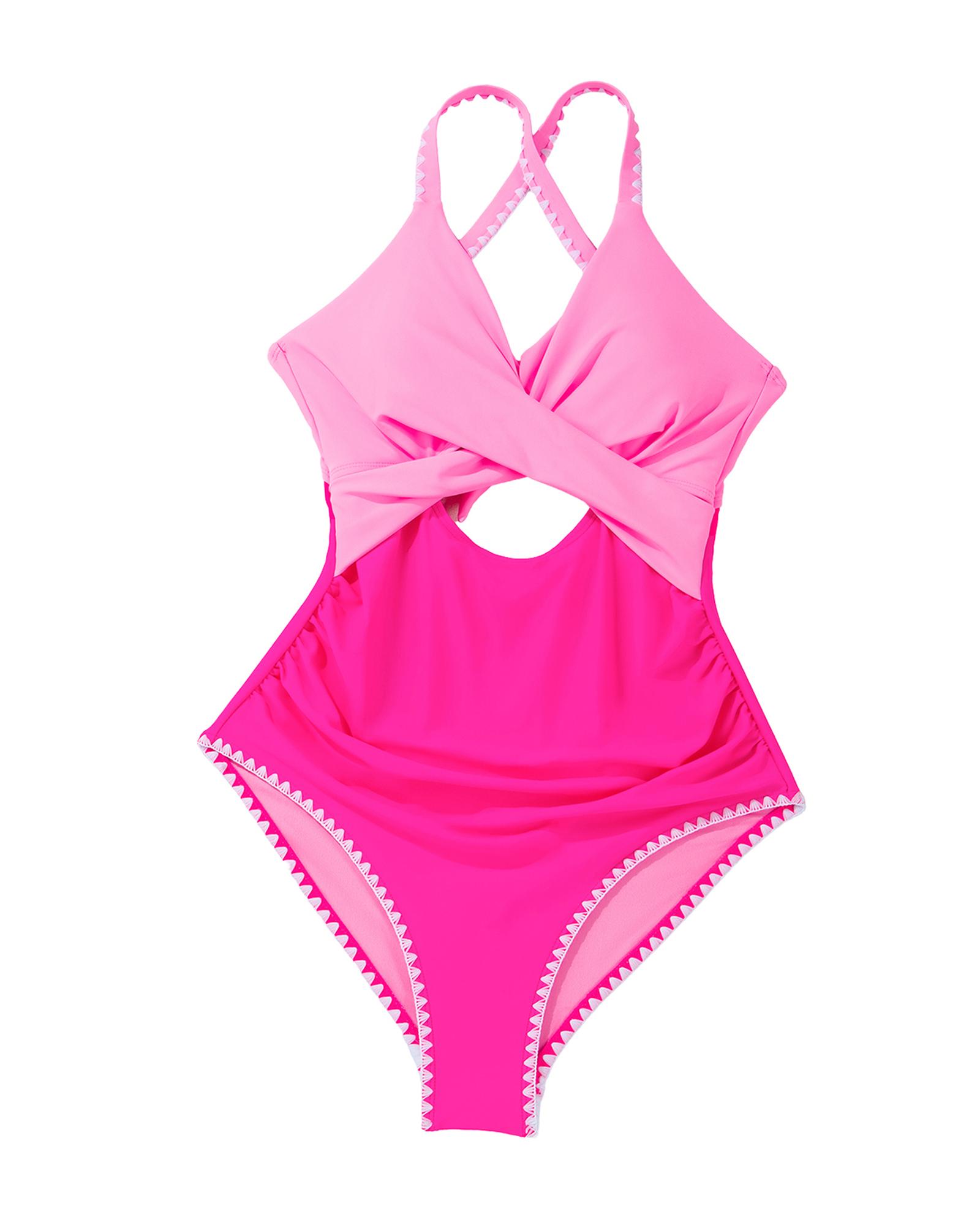 Rose Red Ric Rac Trim Contrasted Patchwork Cutout One Piece Swimsuit – S