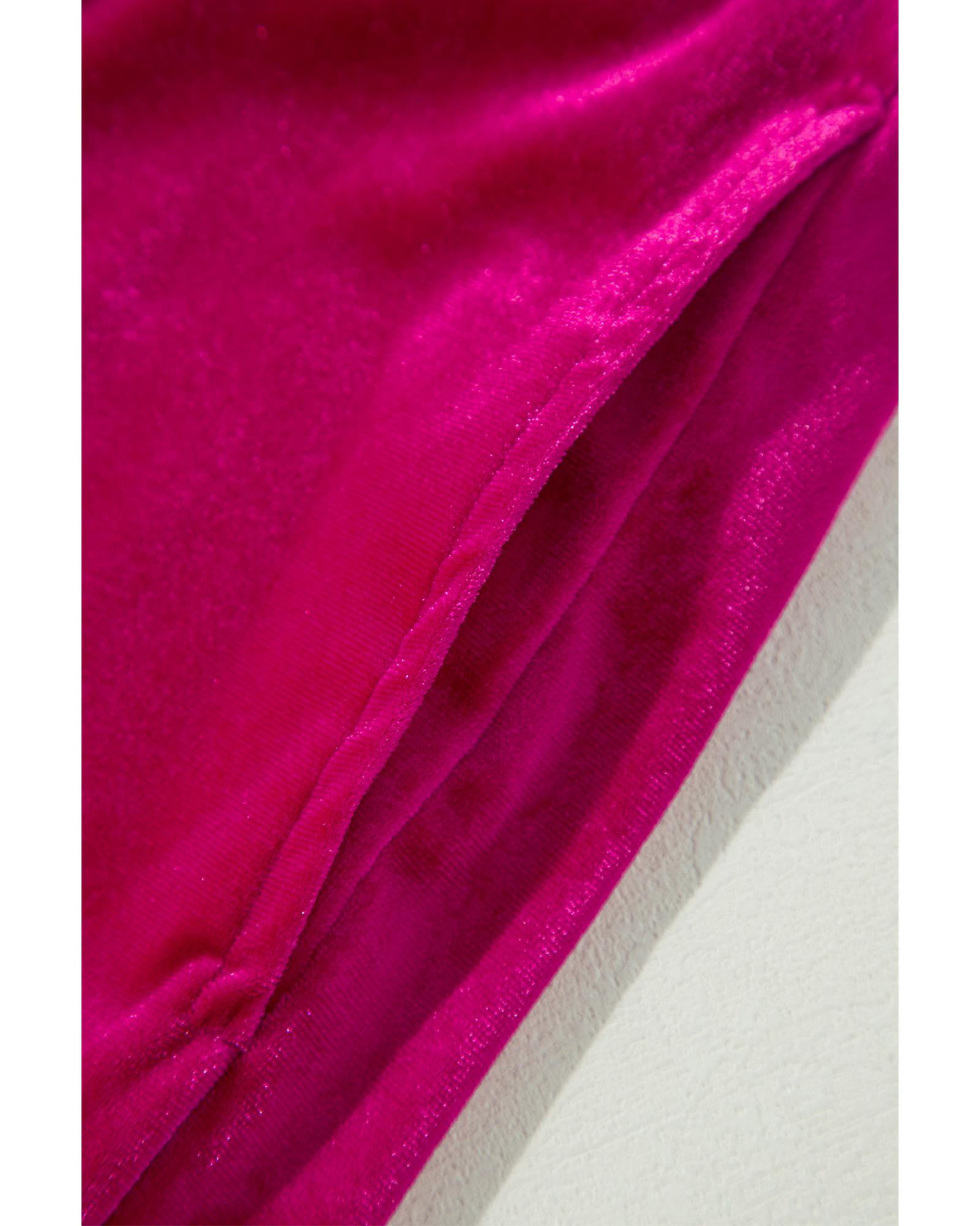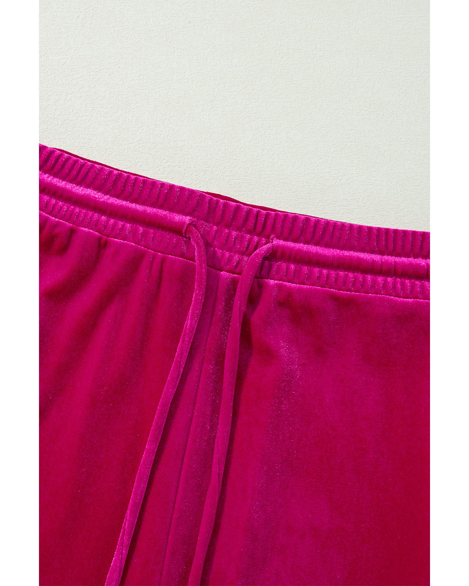 Rose Red Solid Velvet Ruffled Two Piece Pants Set – L