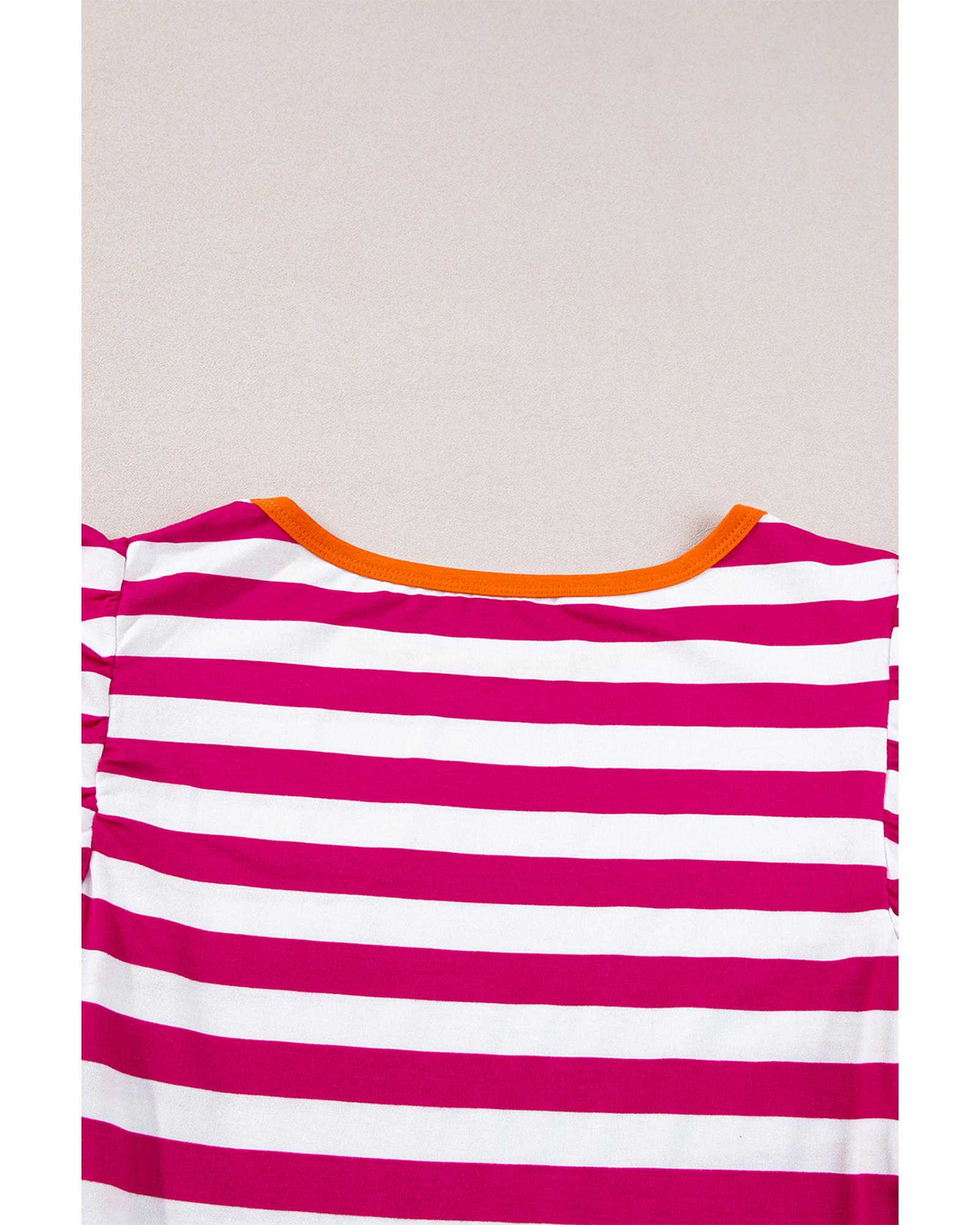 Rose Red Striped Ruffle Sleeve Crew Neck Blouse – XL