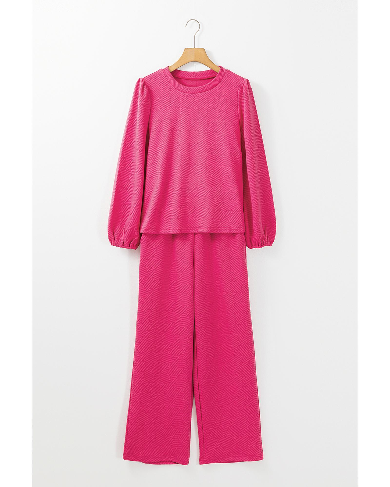 Rose Red Textured Puff Sleeve Top and Pants Set – L