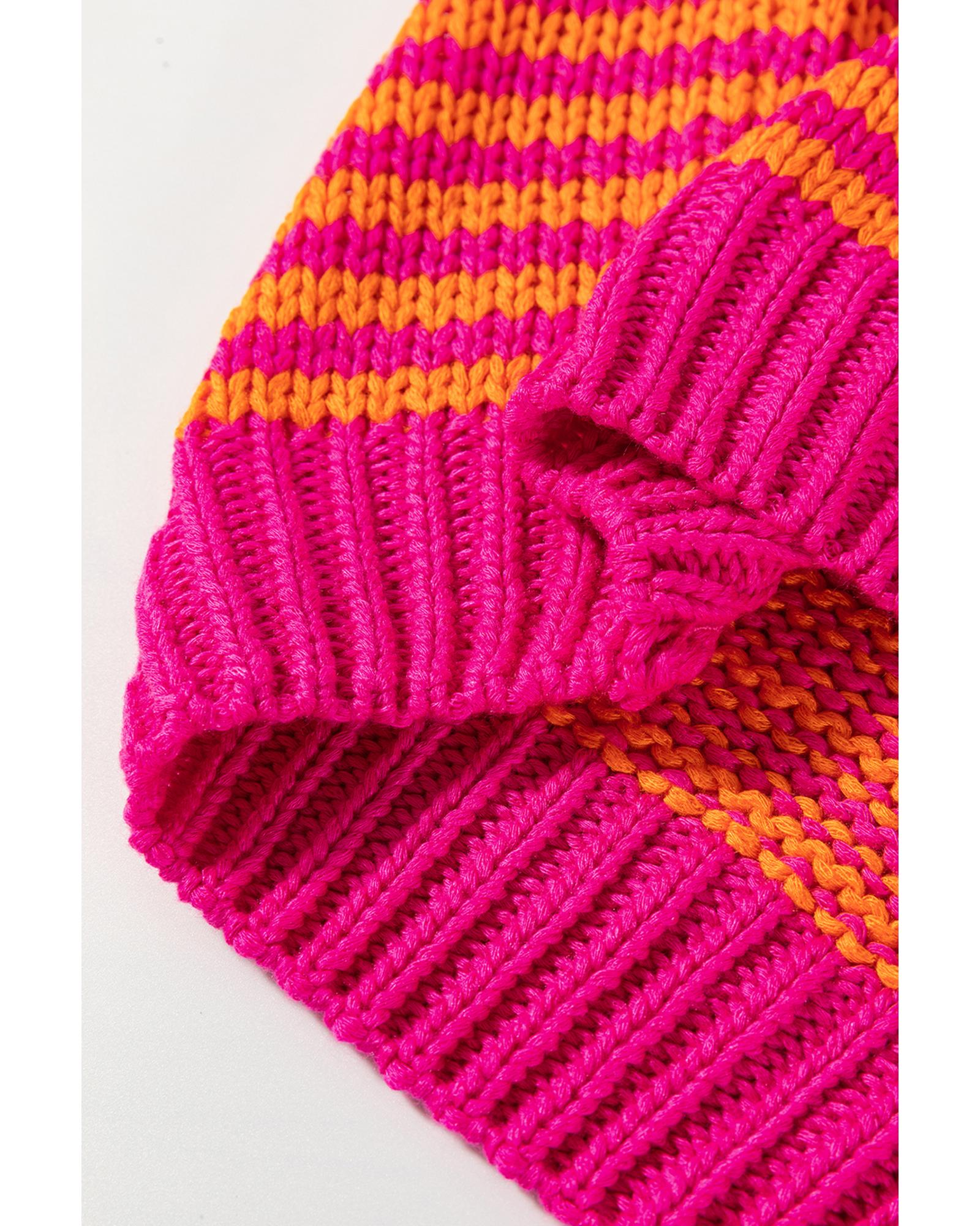 Rose Stripe 3/4 Puff Sleeve Drop Shoulder Sweater – XL