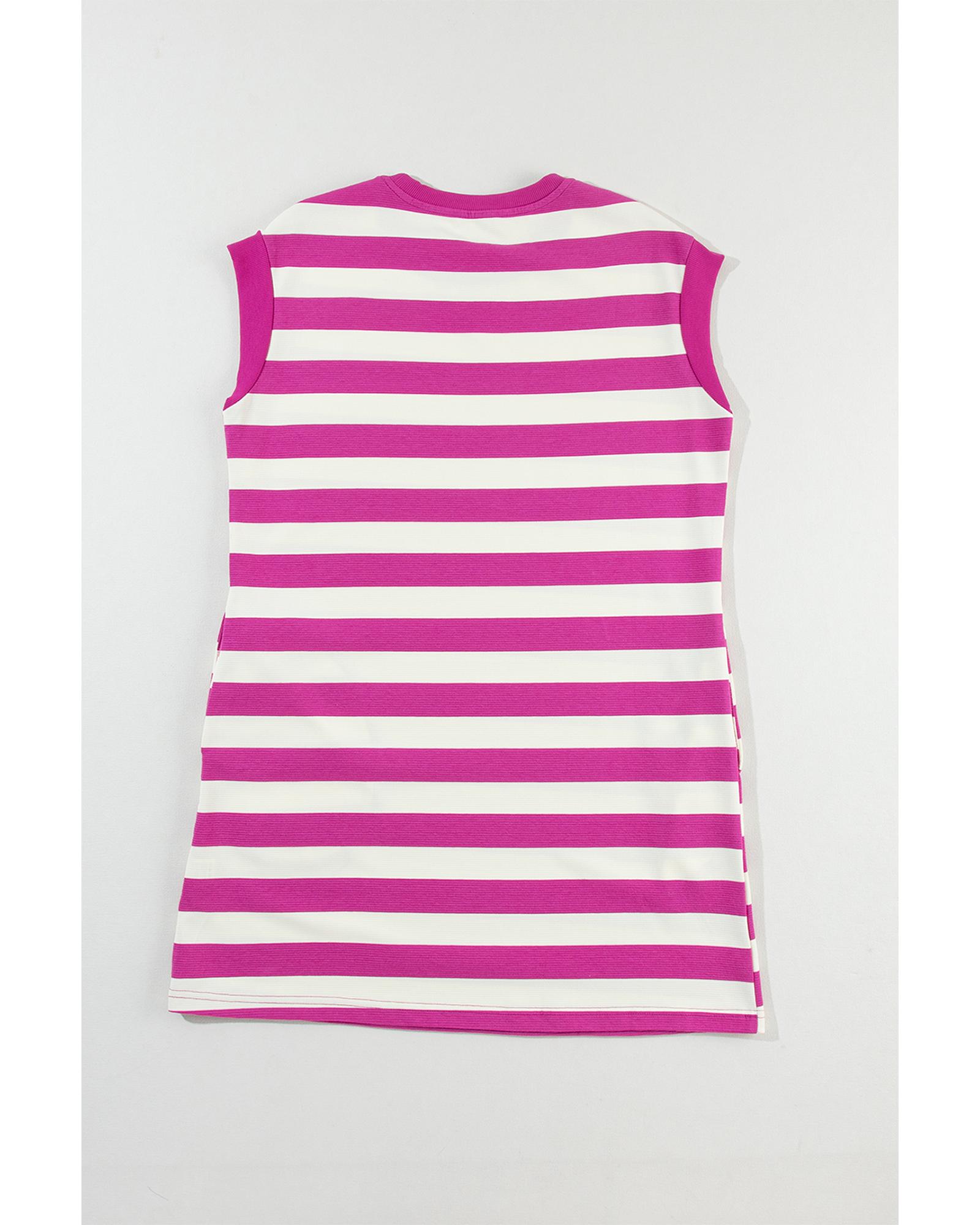 Rose Stripe Cap Sleeve Pocketed Shift T-shirt Dress – XL