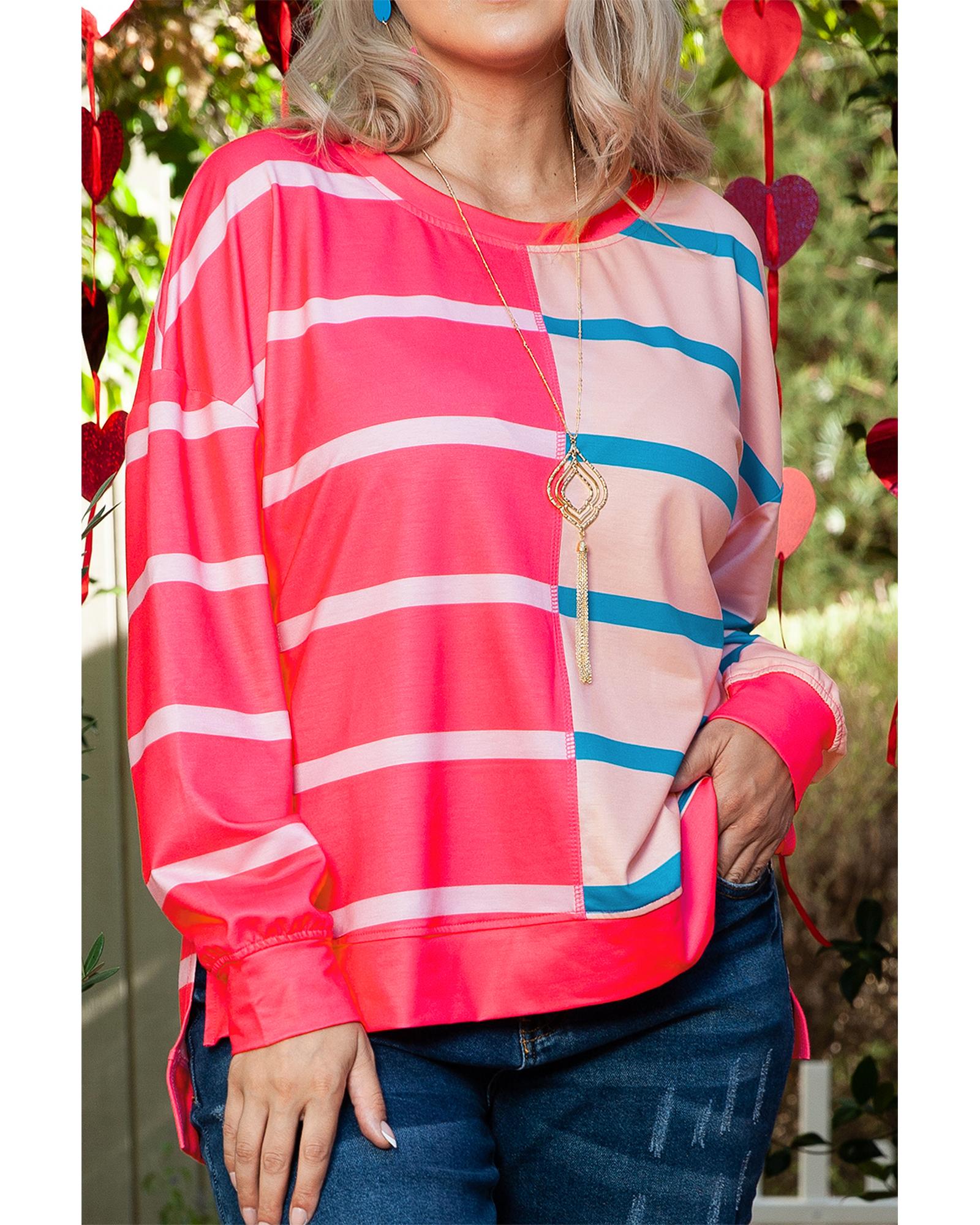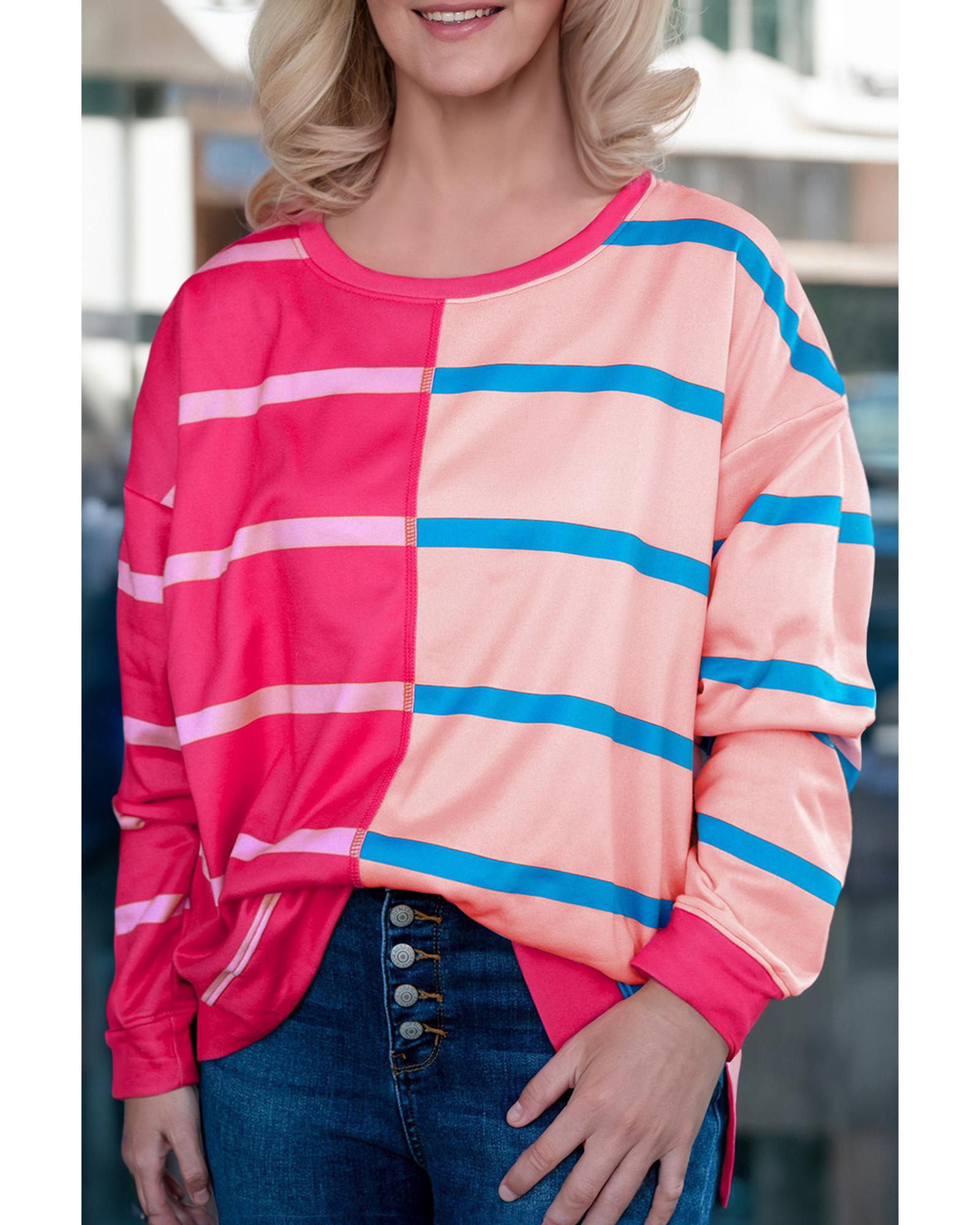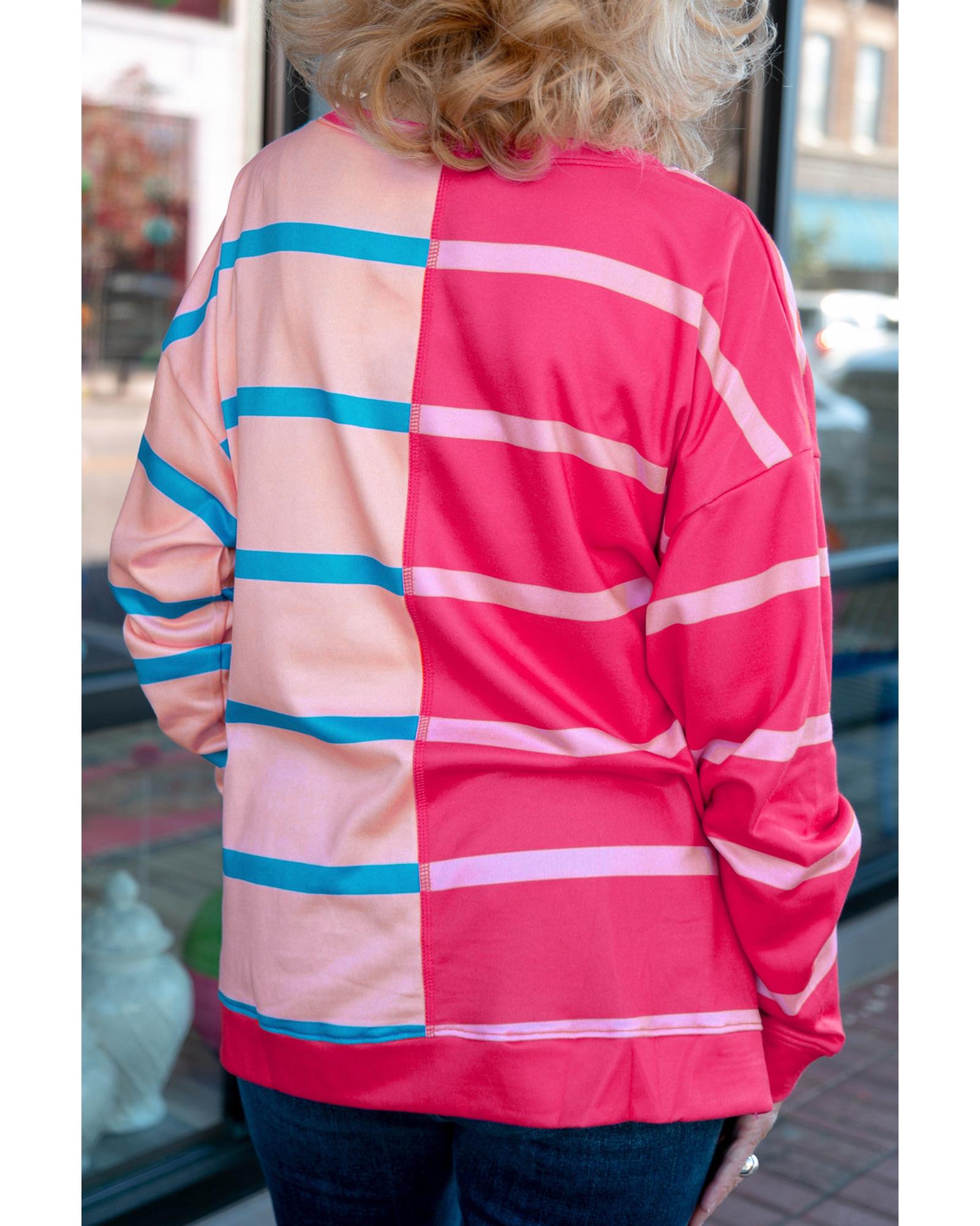 Rose Stripe Color Block Crewneck Long Sleeve Plus Size T Shirt – 2X