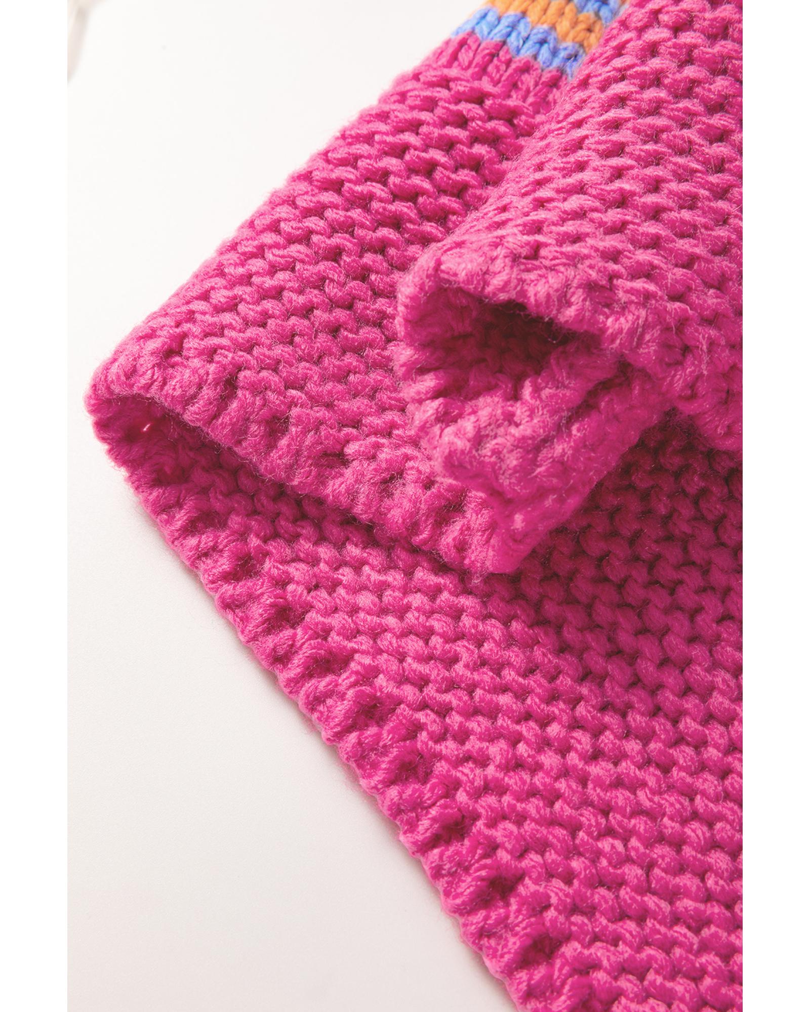 Rose Stripe Colorful Puff Sleeve Drop Shoulder Loose Cardigan – L