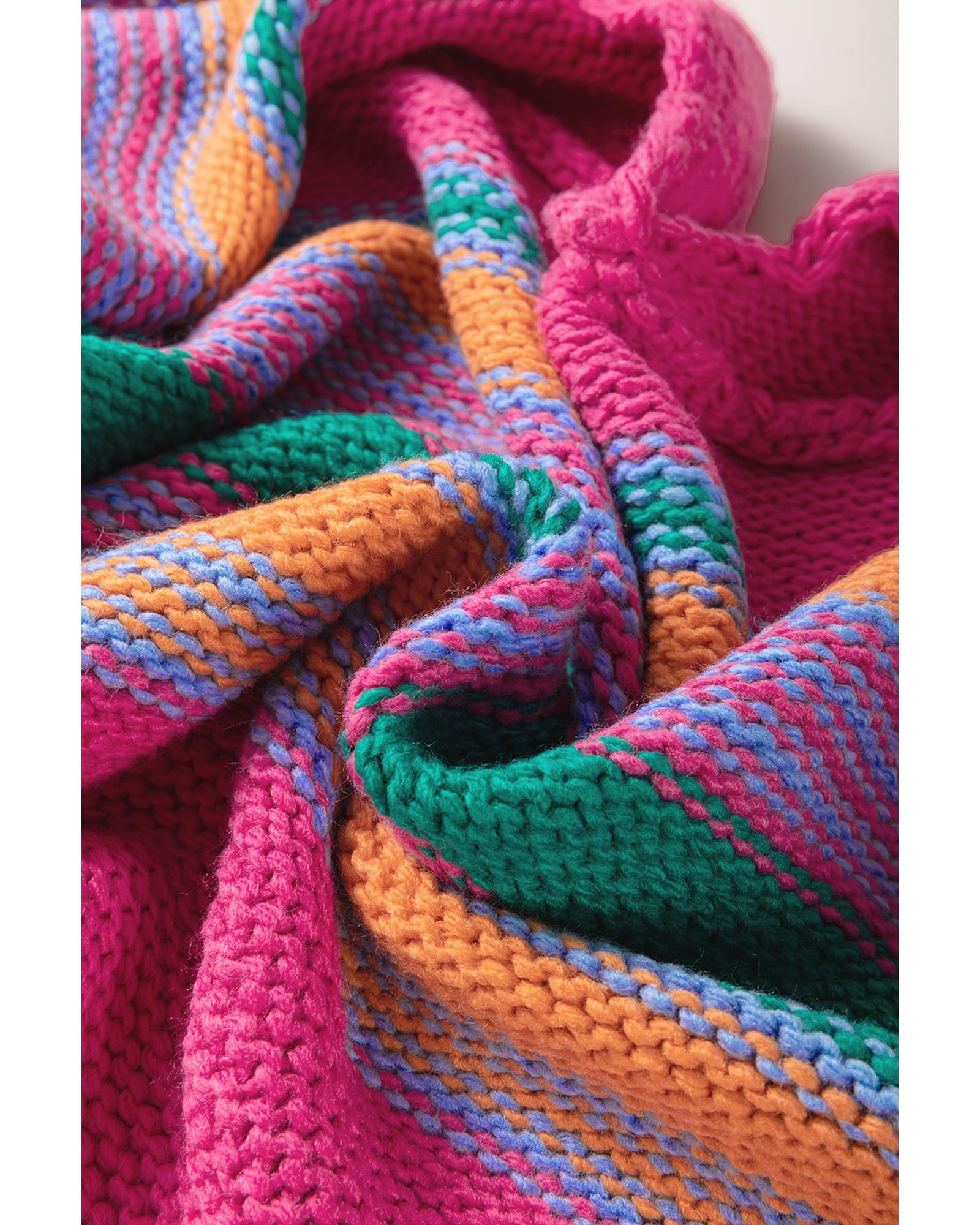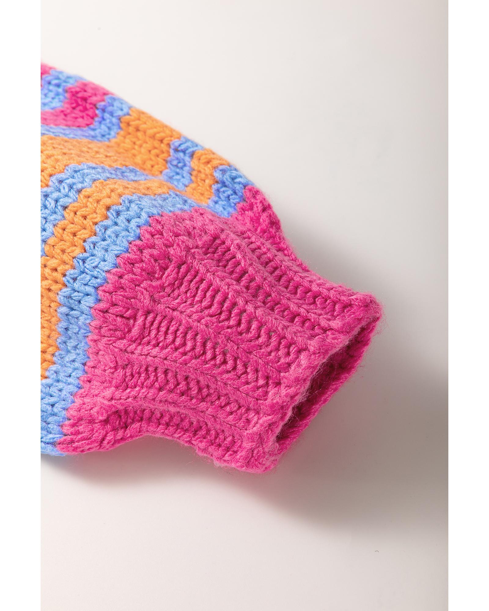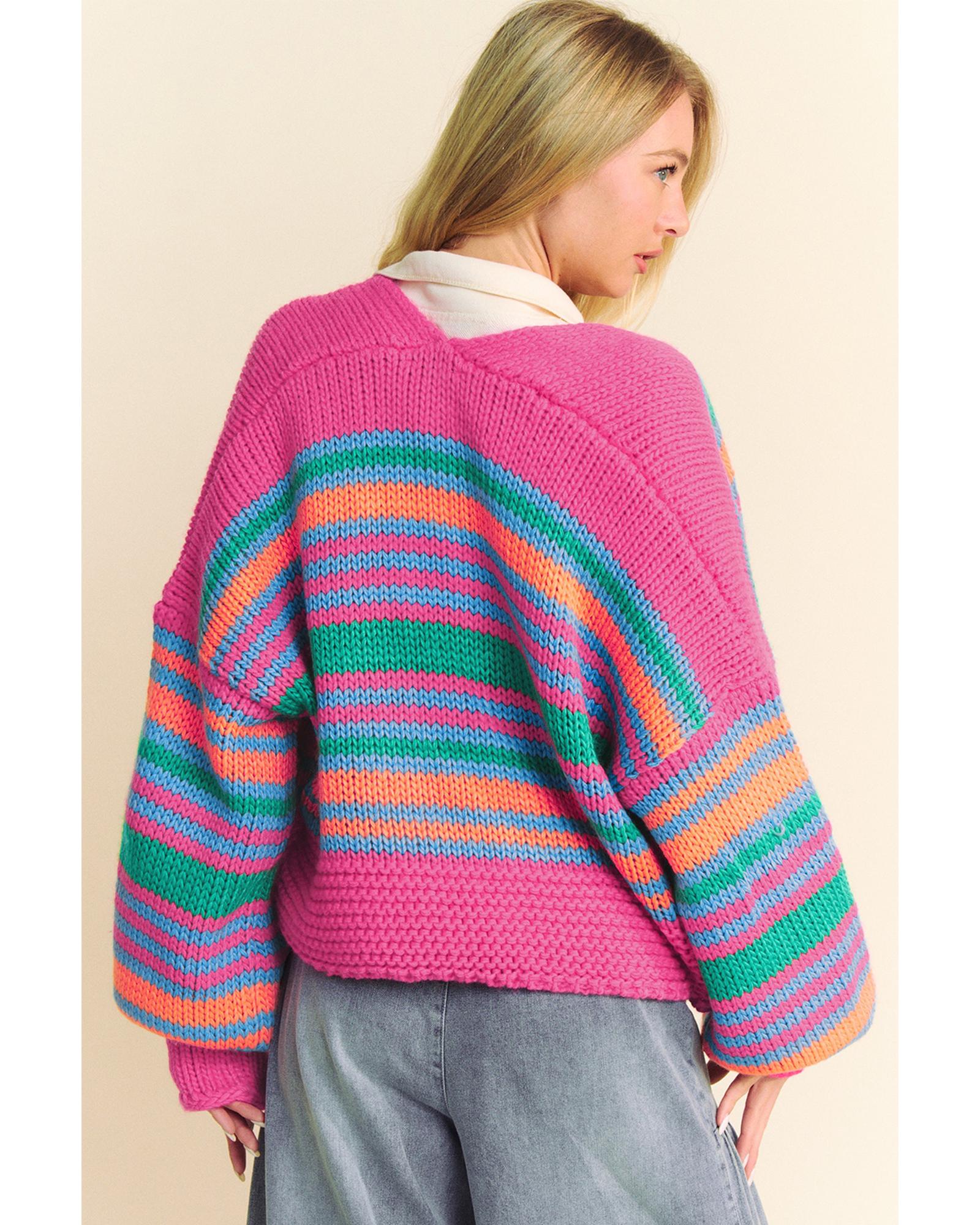 Rose Stripe Colorful Puff Sleeve Drop Shoulder Loose Cardigan – XL