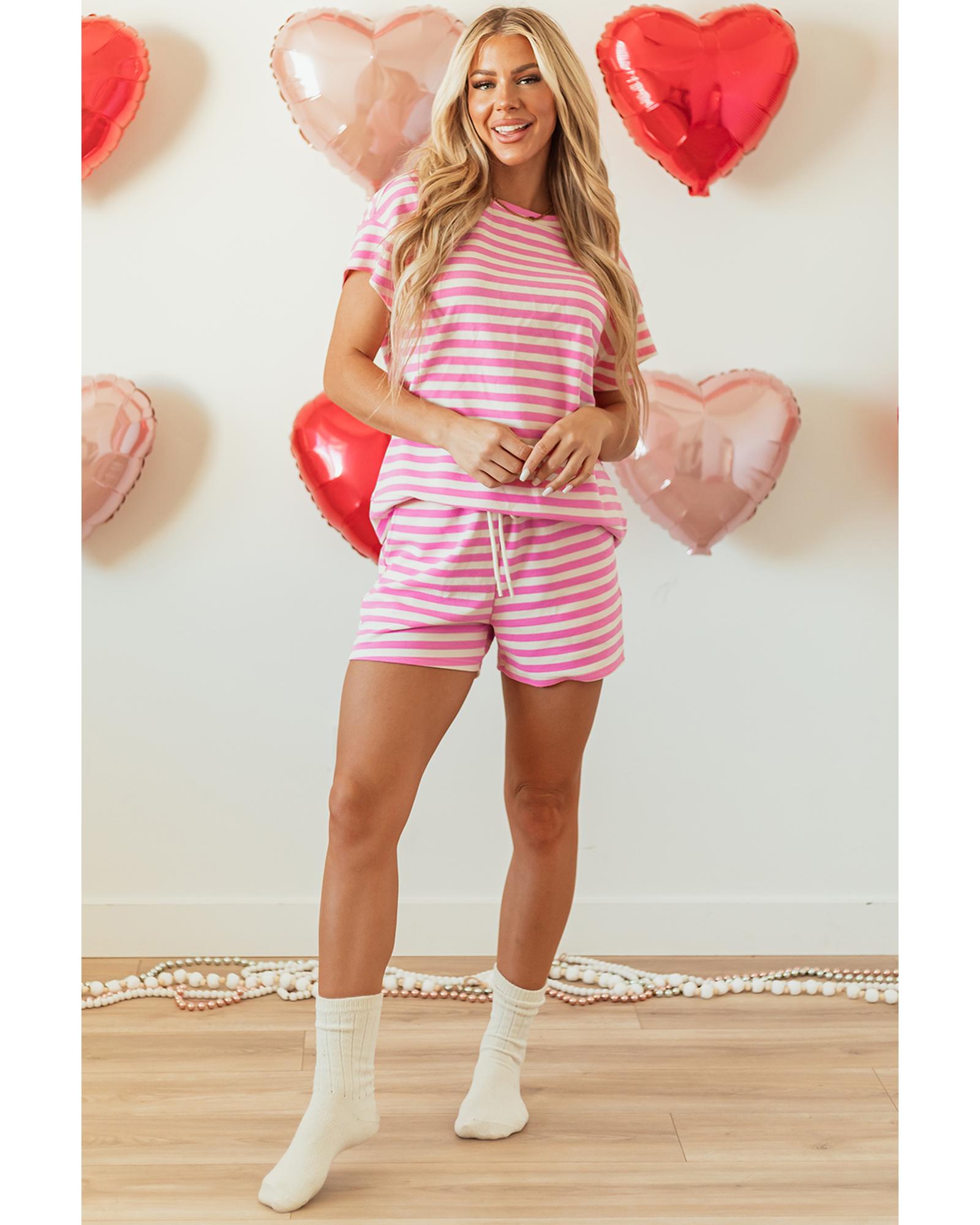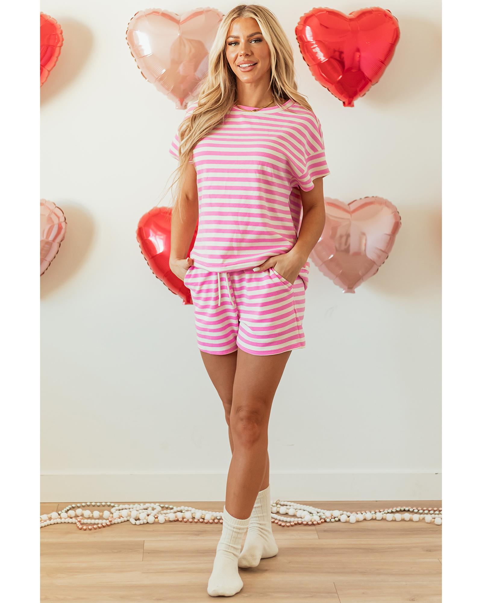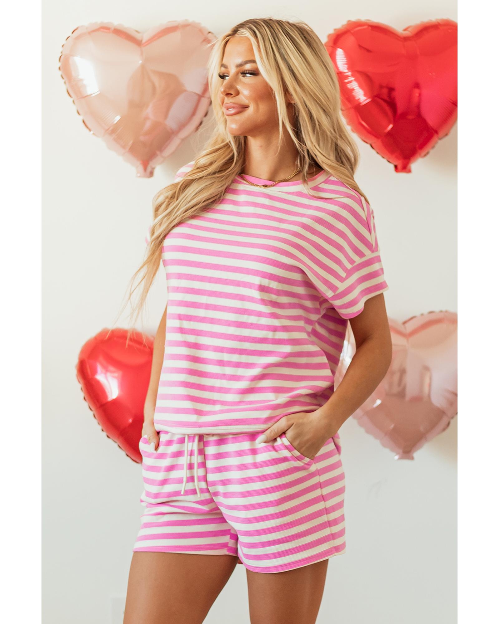 Rose Stripe Crew Neck T Shirt and Drawstring Shorts Set – M