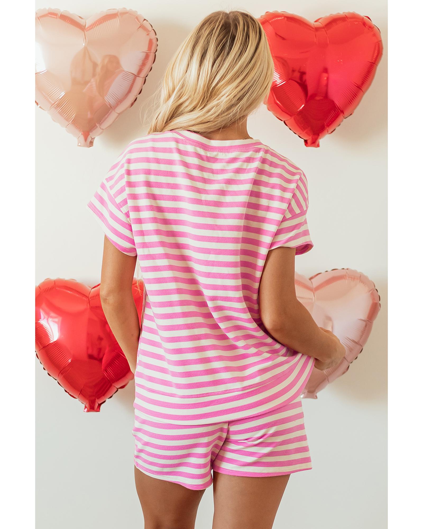 Pink Stripe Wide Short Sleeve Tee and Short Set - L