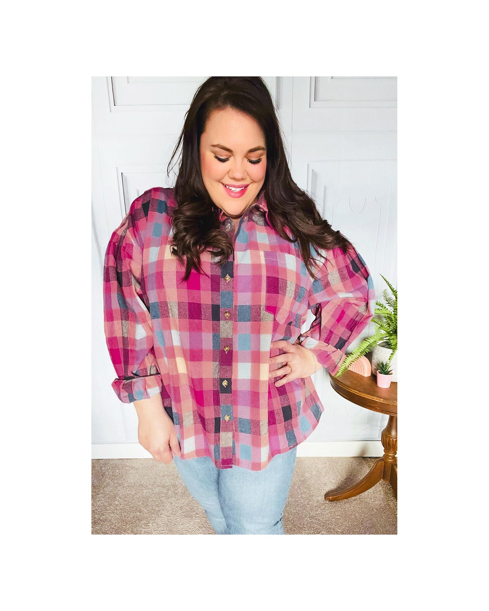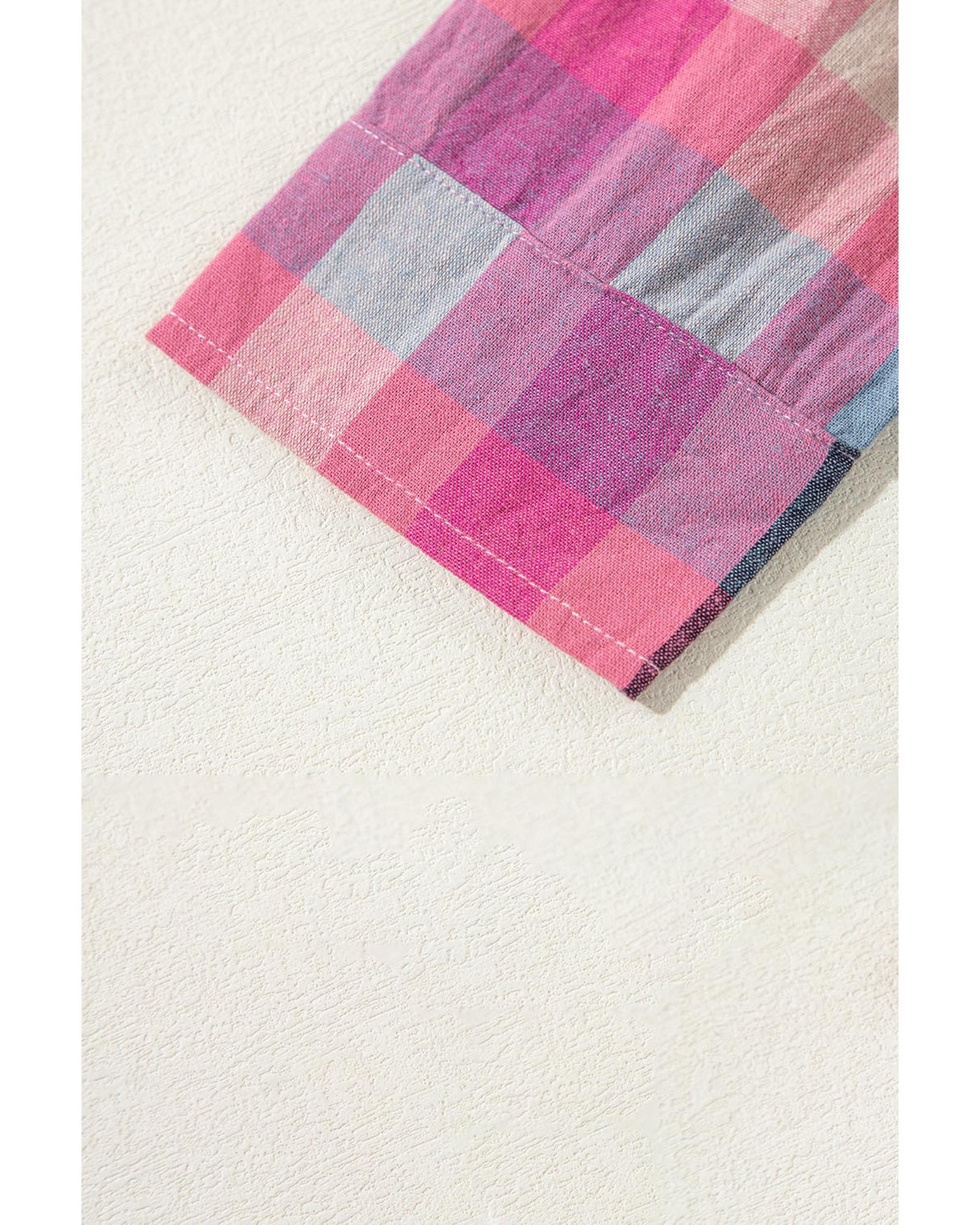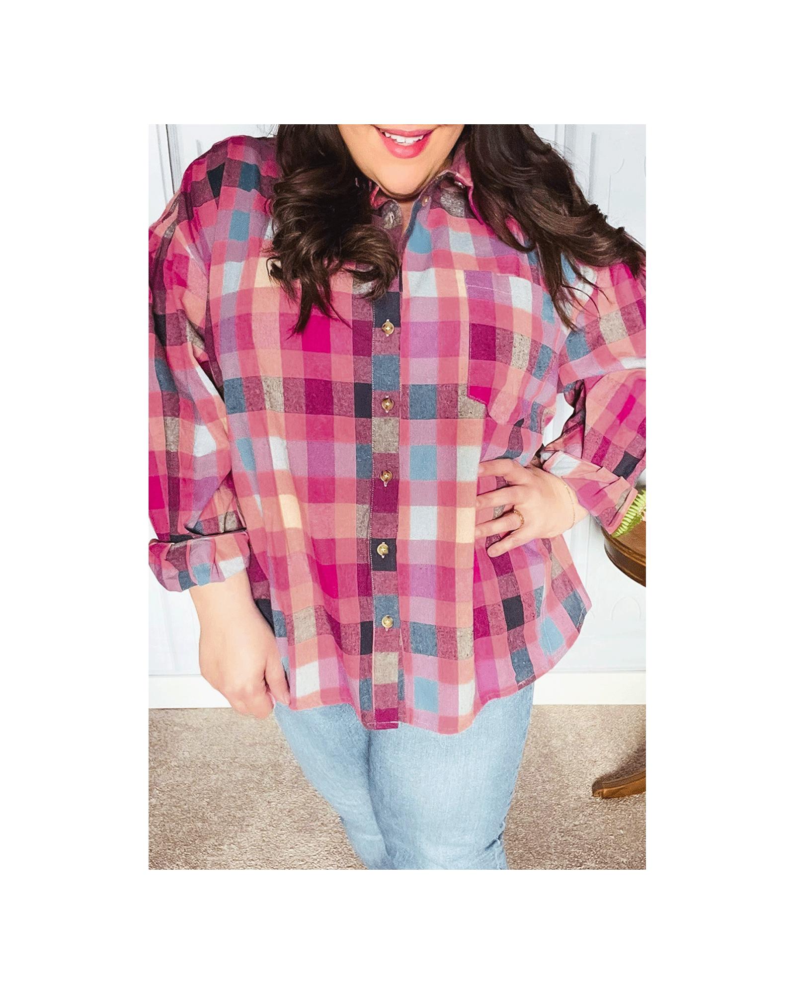 Rose Stripe Plus Size Checkered Print Button up Shirt – 3X