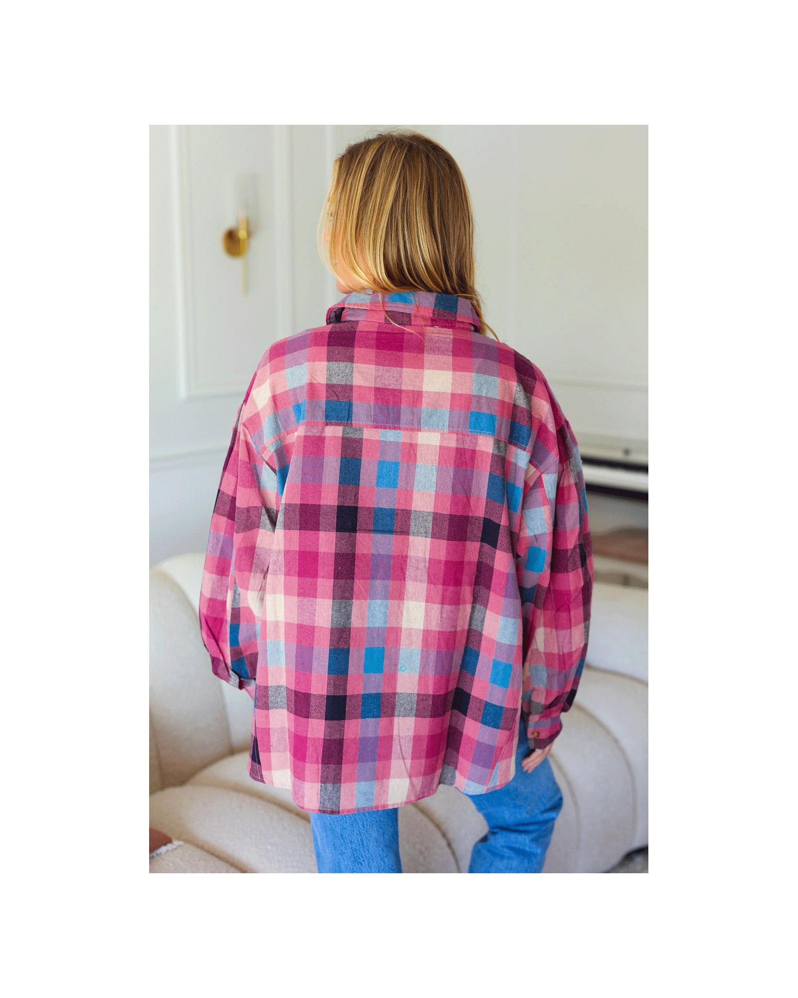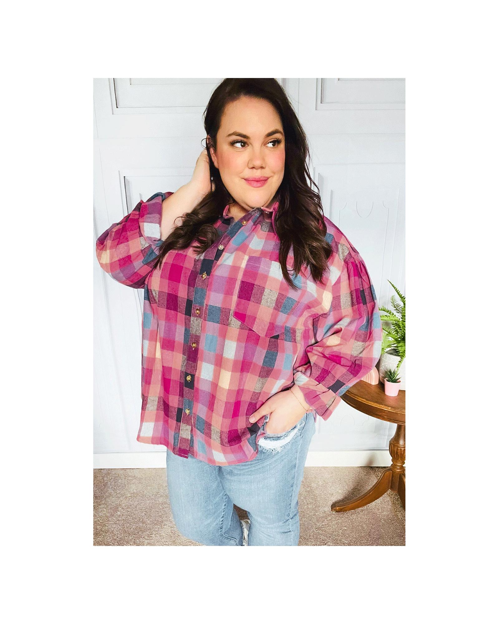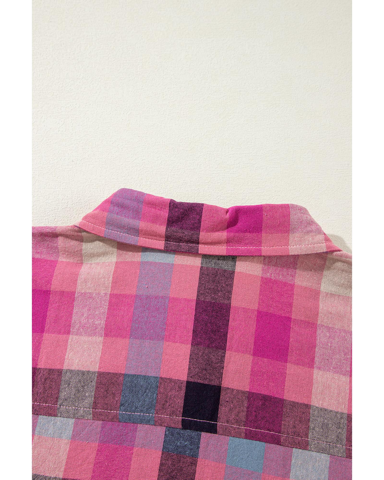 Rose Stripe Plus Size Checkered Print Button up Shirt – 4X