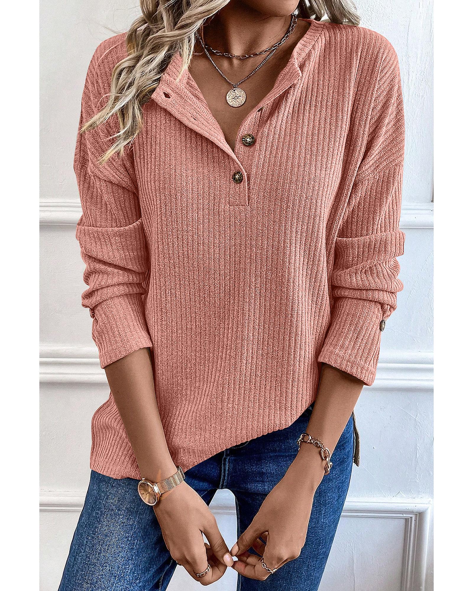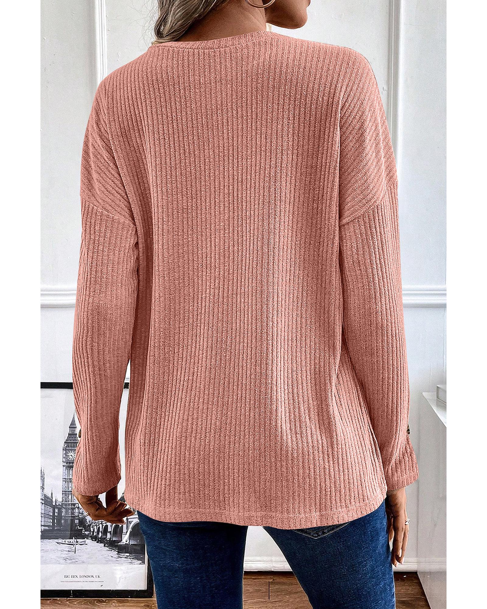 - Unisex Rose Tan Rib Textured Henley Knit Top
