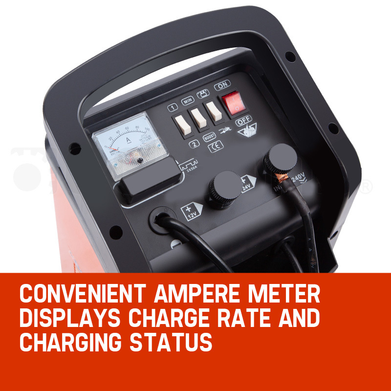 It features both 12V 24V charging coupled with a convenient ampere meter to display the charge rate and charge status of your battery. Suitable for lead-acid batteries, it also features a fast/slow charge setting for safe and reliable charging.