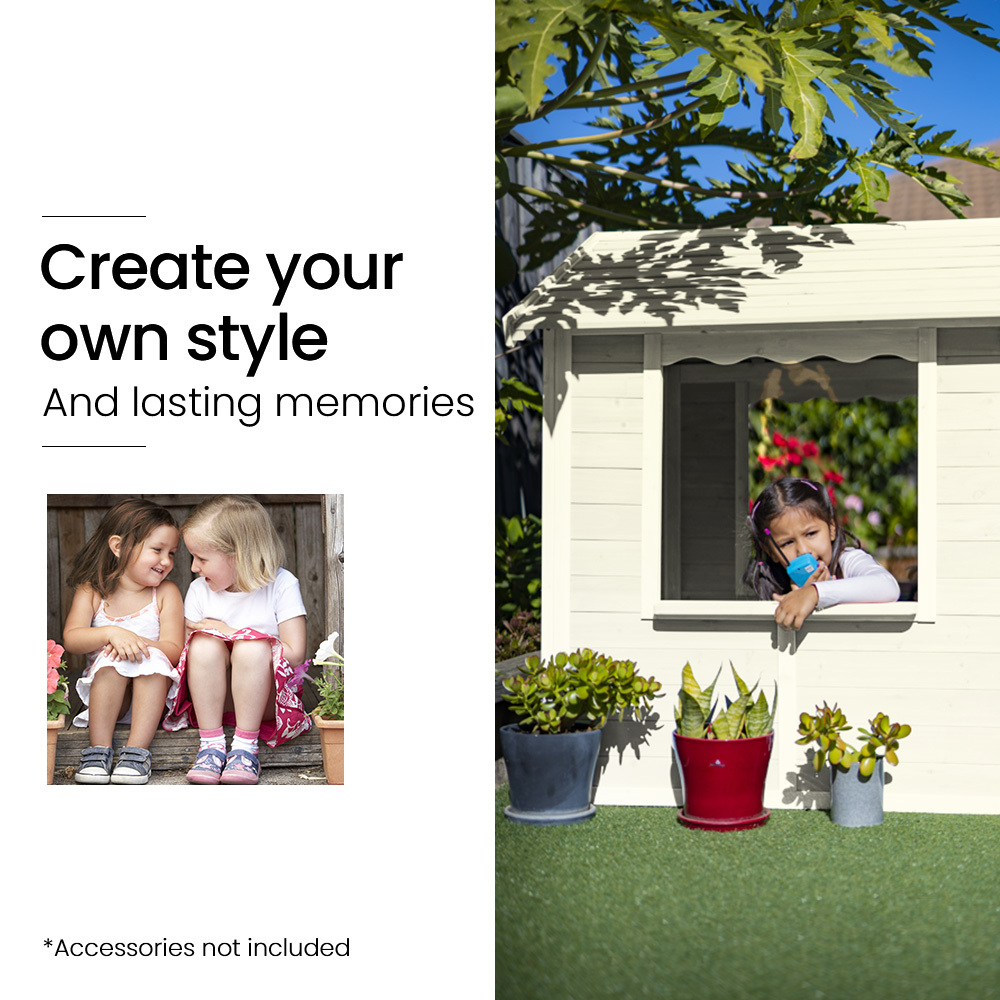 Join the global craze and truly make your mark on your Rovo Kids Cubby House – DIY style! Readily customisable, tap into your inner creativity – there are endless possibilities at your disposal! Create a dream castle for your own little royalty by painting and decorating their cubby with shades of white and gold, or create a home-business experience for your little ones serving you from their very own shop front! Mix and match your style to the season or holiday celebration; a pool house in summer or a winter wonderland log cabin complete with fairy lights. Unleash your imagination! With great design and curb appeal to start you off right, the choice is yours, and you can continue to customise your new Rovo Kids Wooden Cubby House as your child grows.
