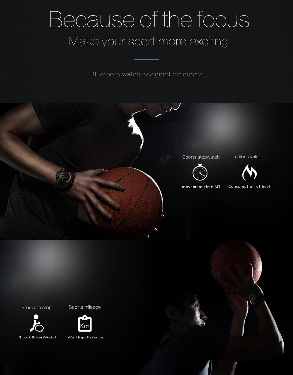 Rugged Sports Smartwatch – 50M Waterproof, 24H 3D Pedometer, Bluetooth Notifications & Long Battery Life(Black with white text)