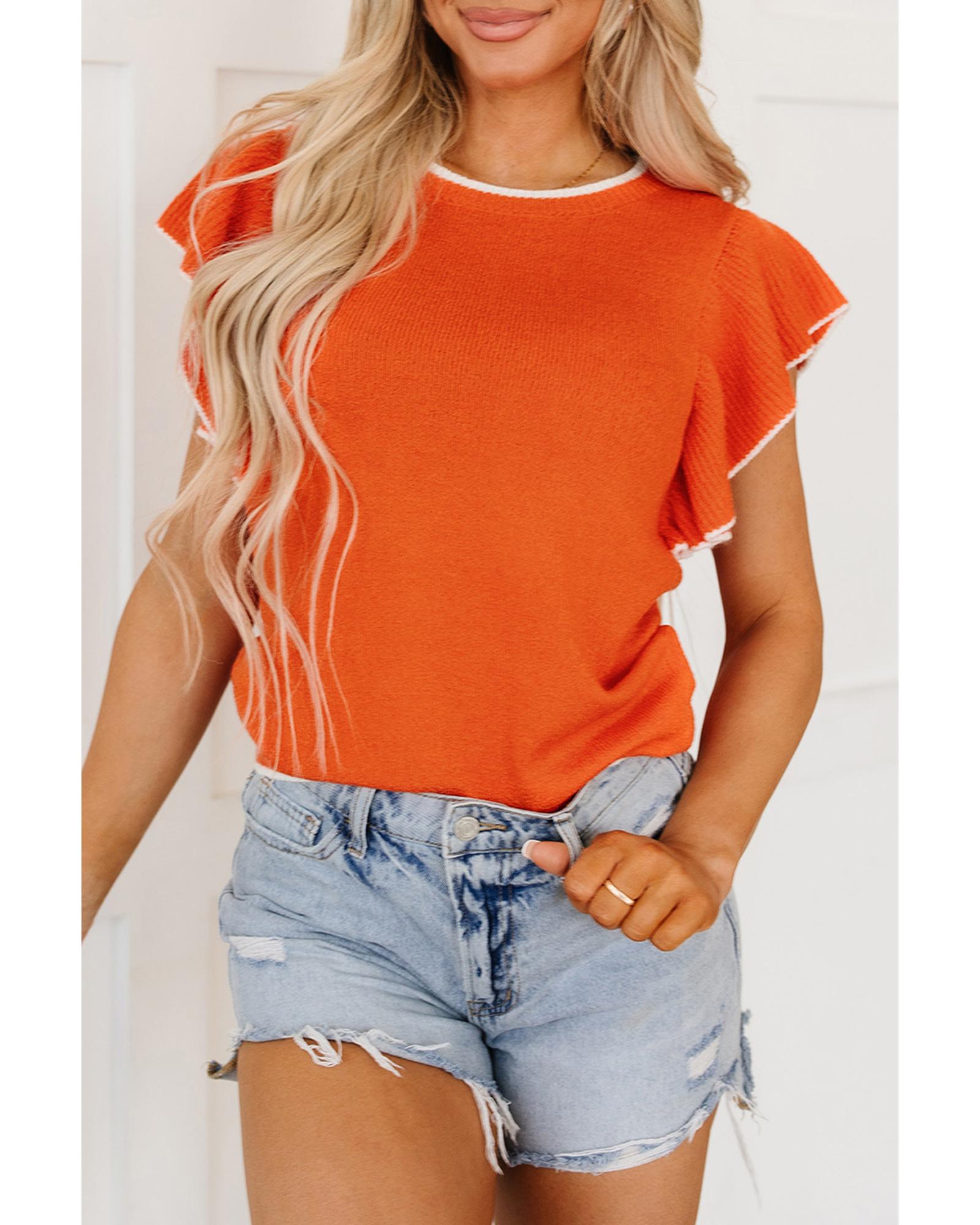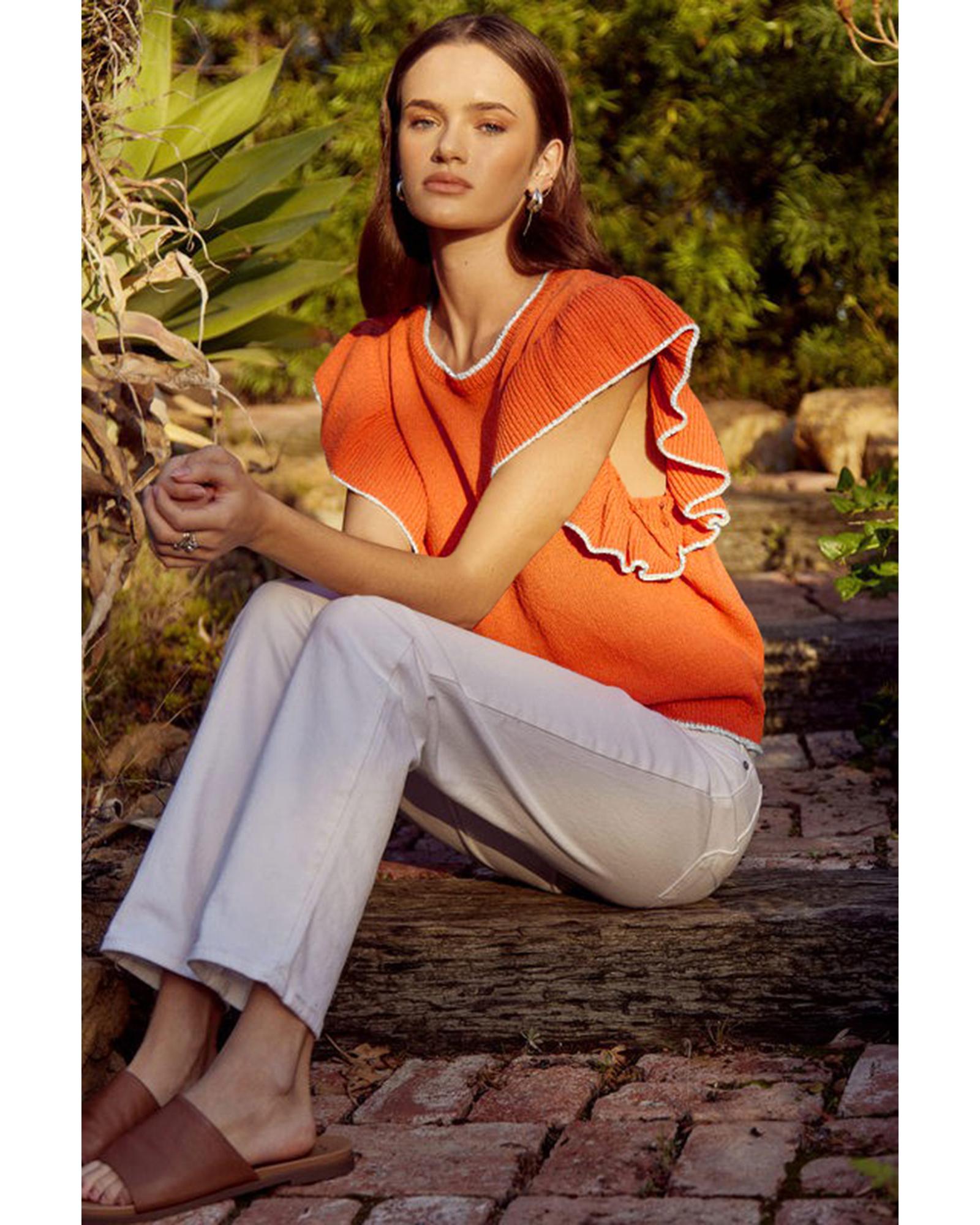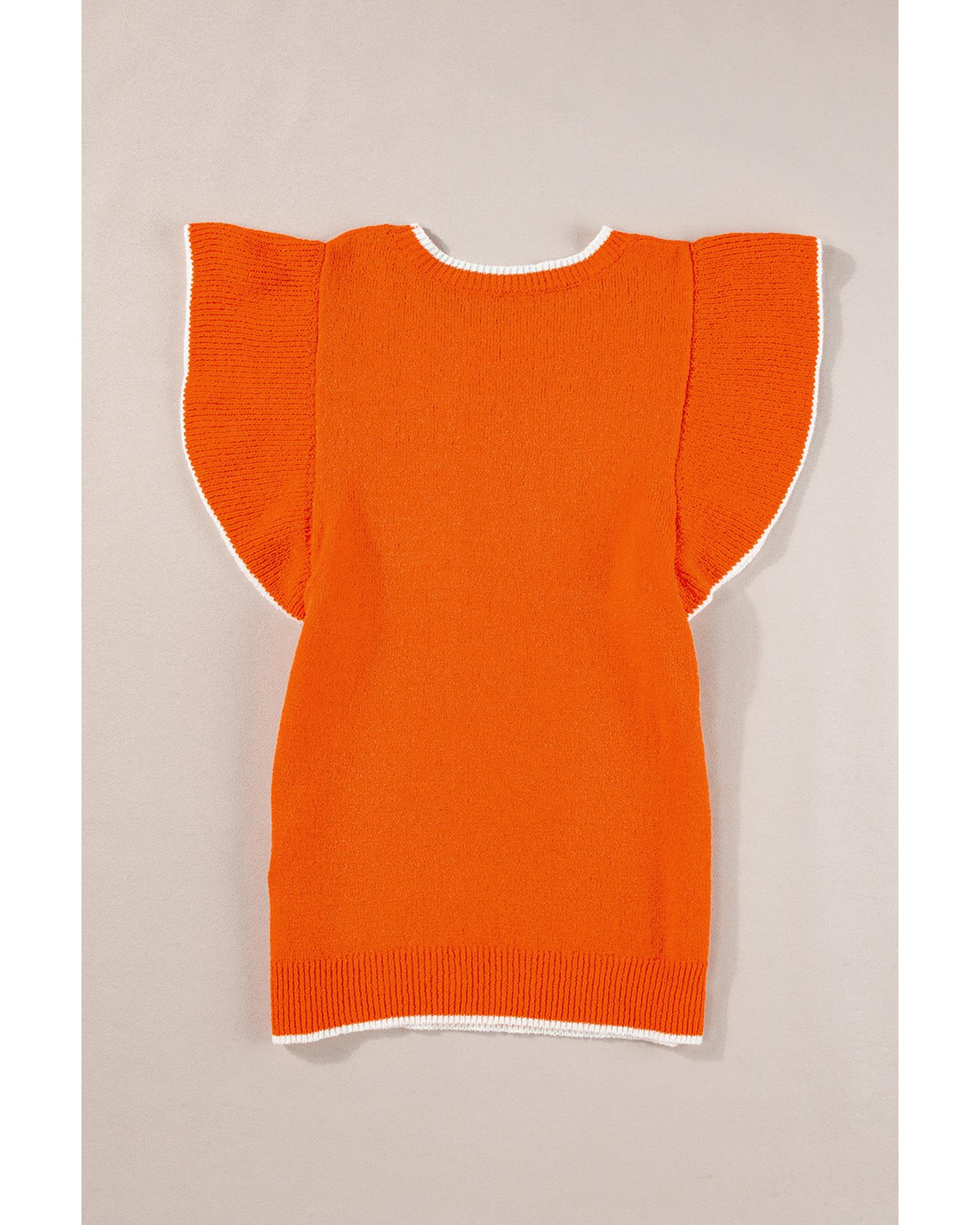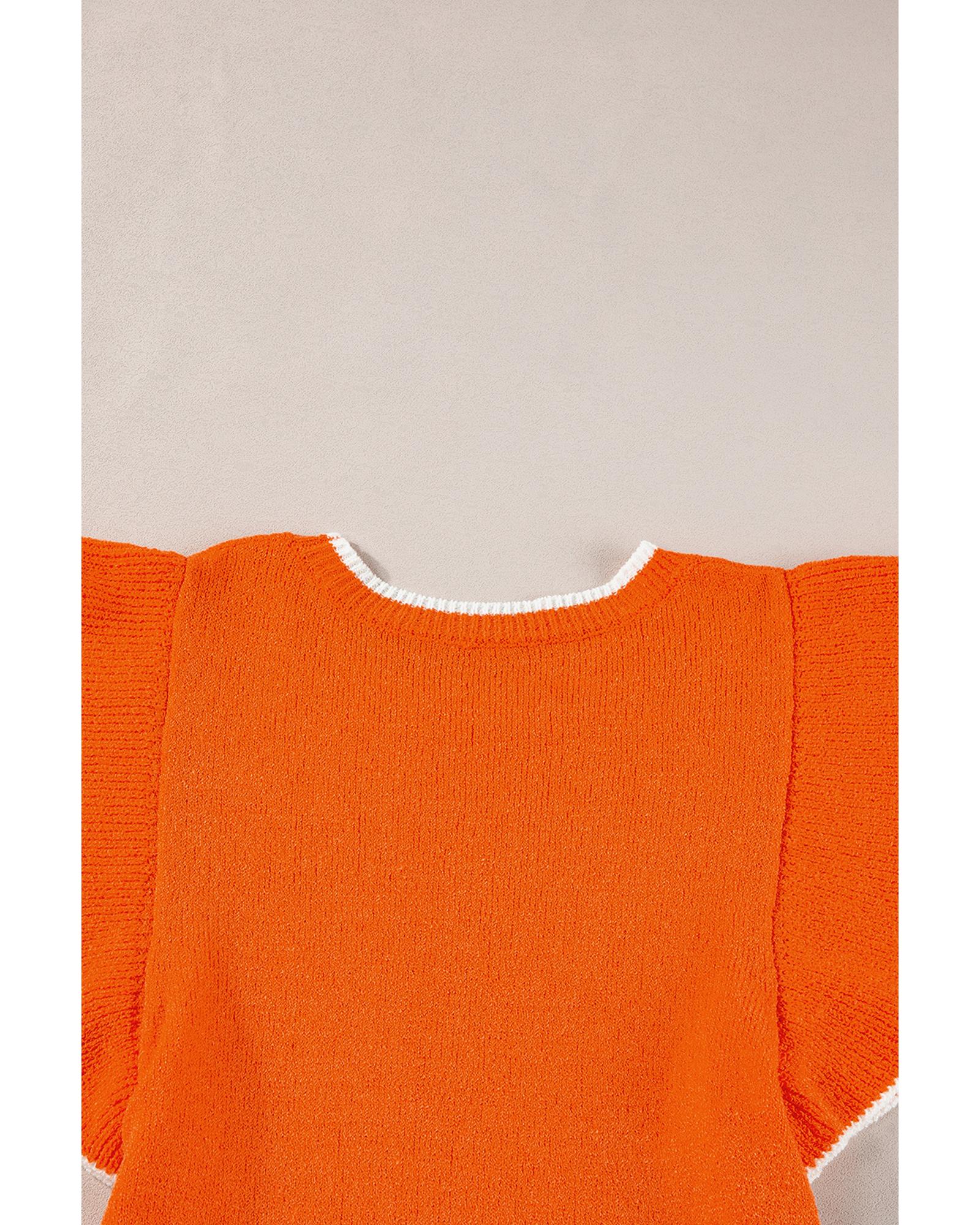 Russet Orange Contrast Trim Ruffle Sleeve Knitted Top – XL