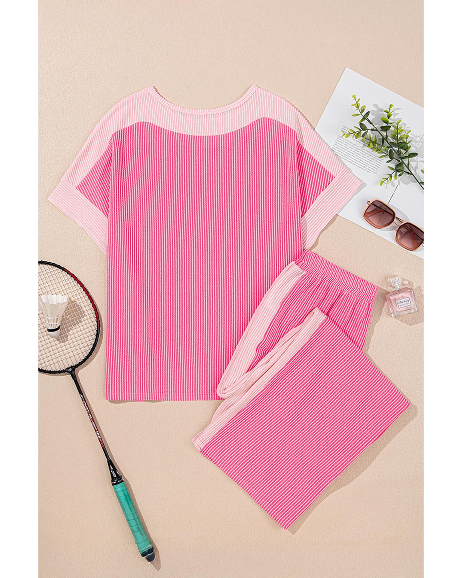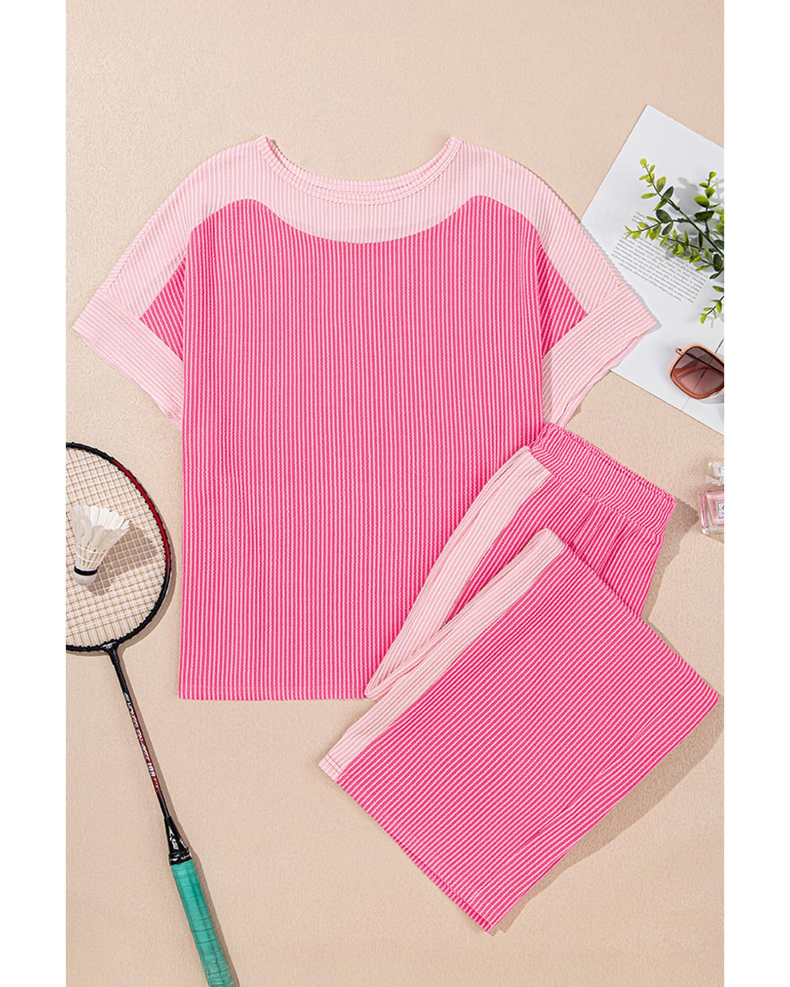 Sachet Pink 2-tone Colorblock Patchwork Corded 2pcs Outfit – L