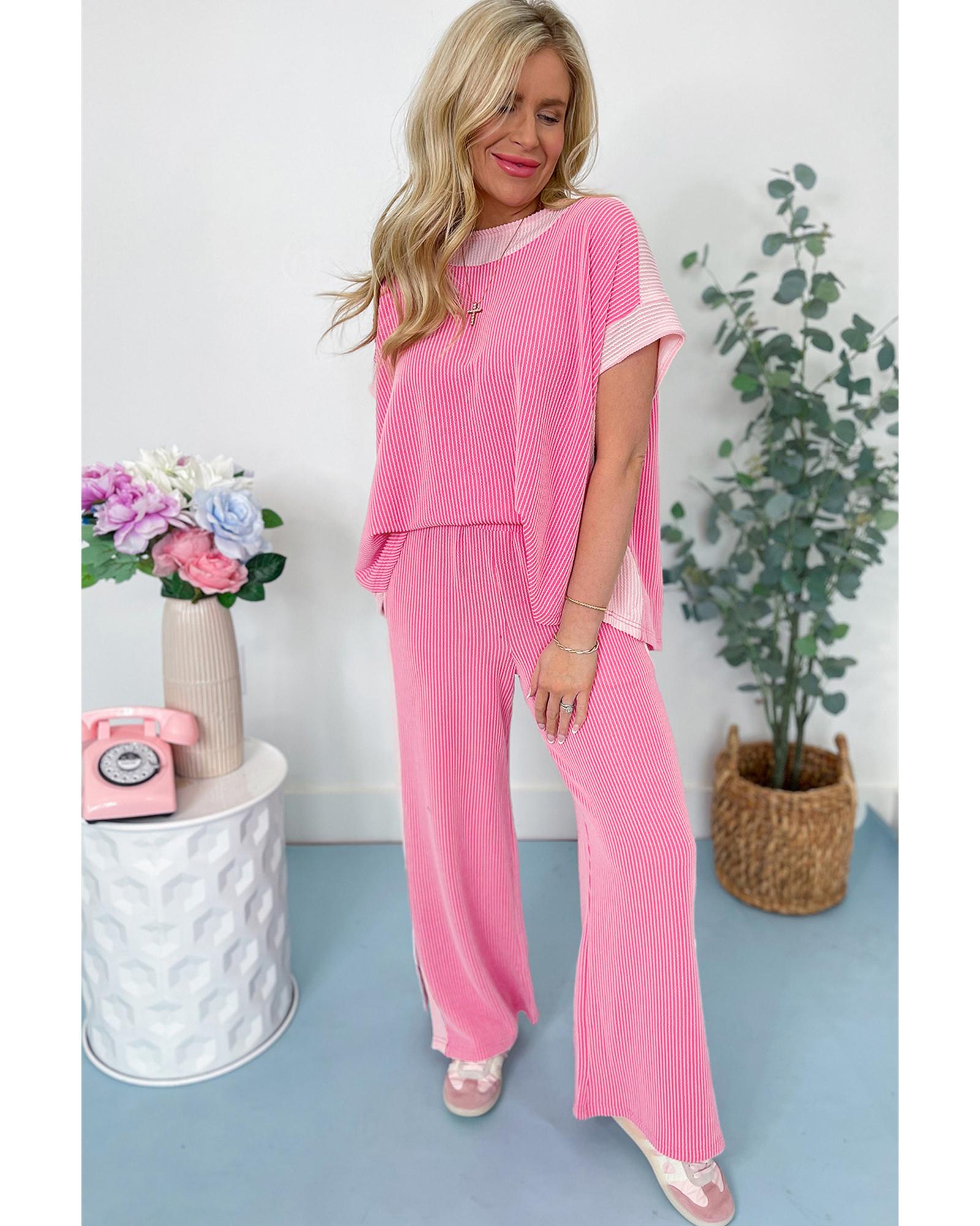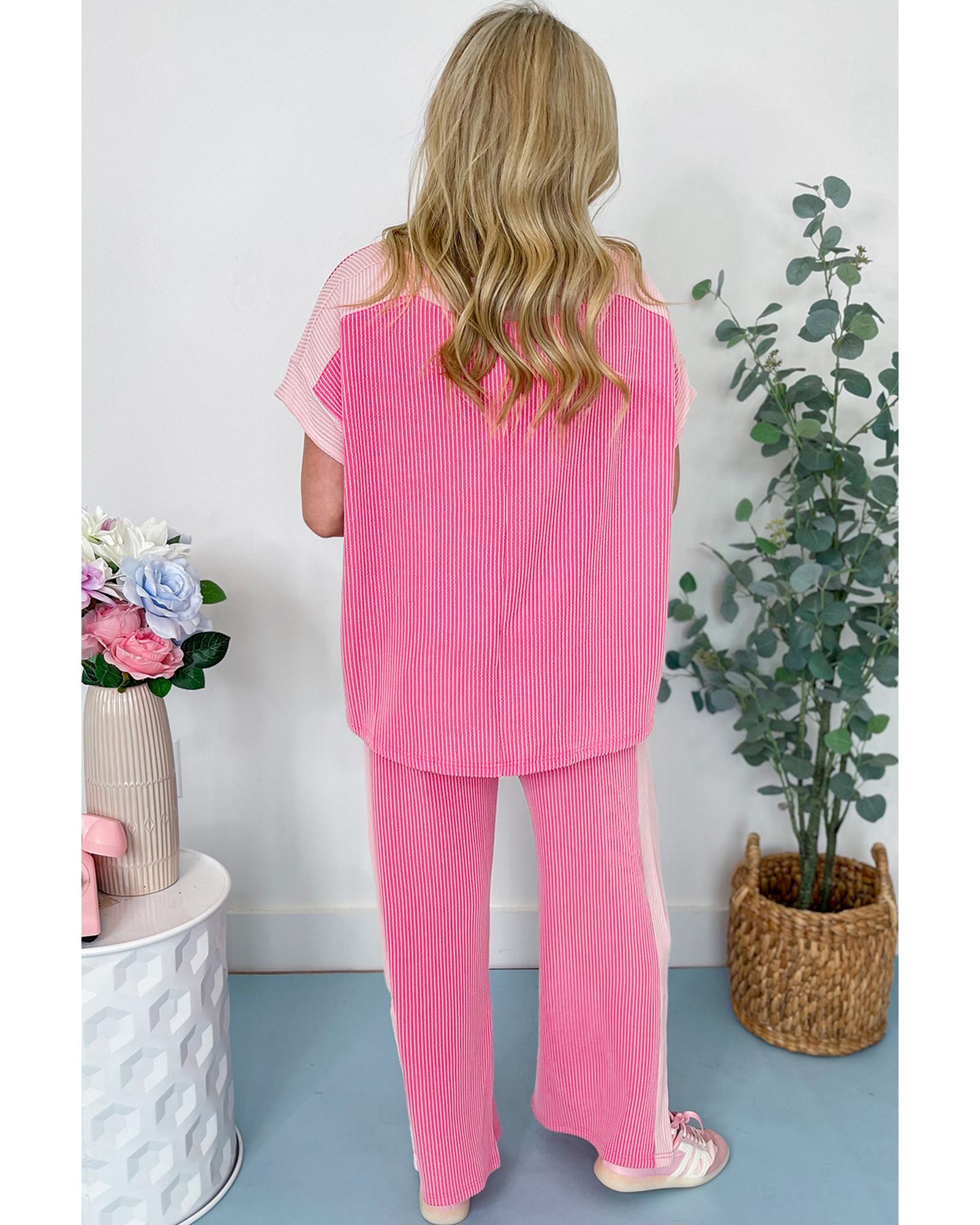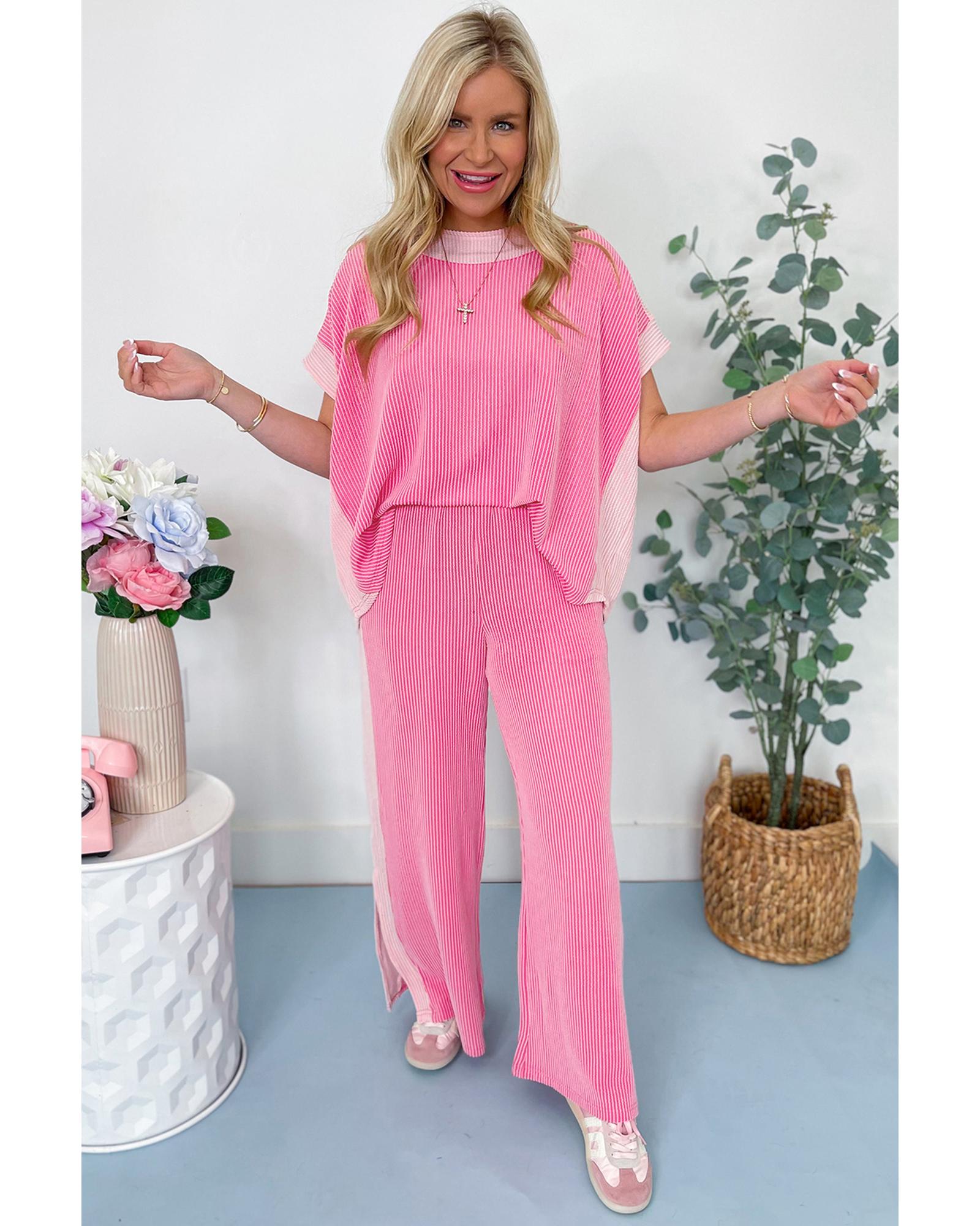 Sachet Pink 2-tone Colorblock Patchwork Corded 2pcs Outfit – S
