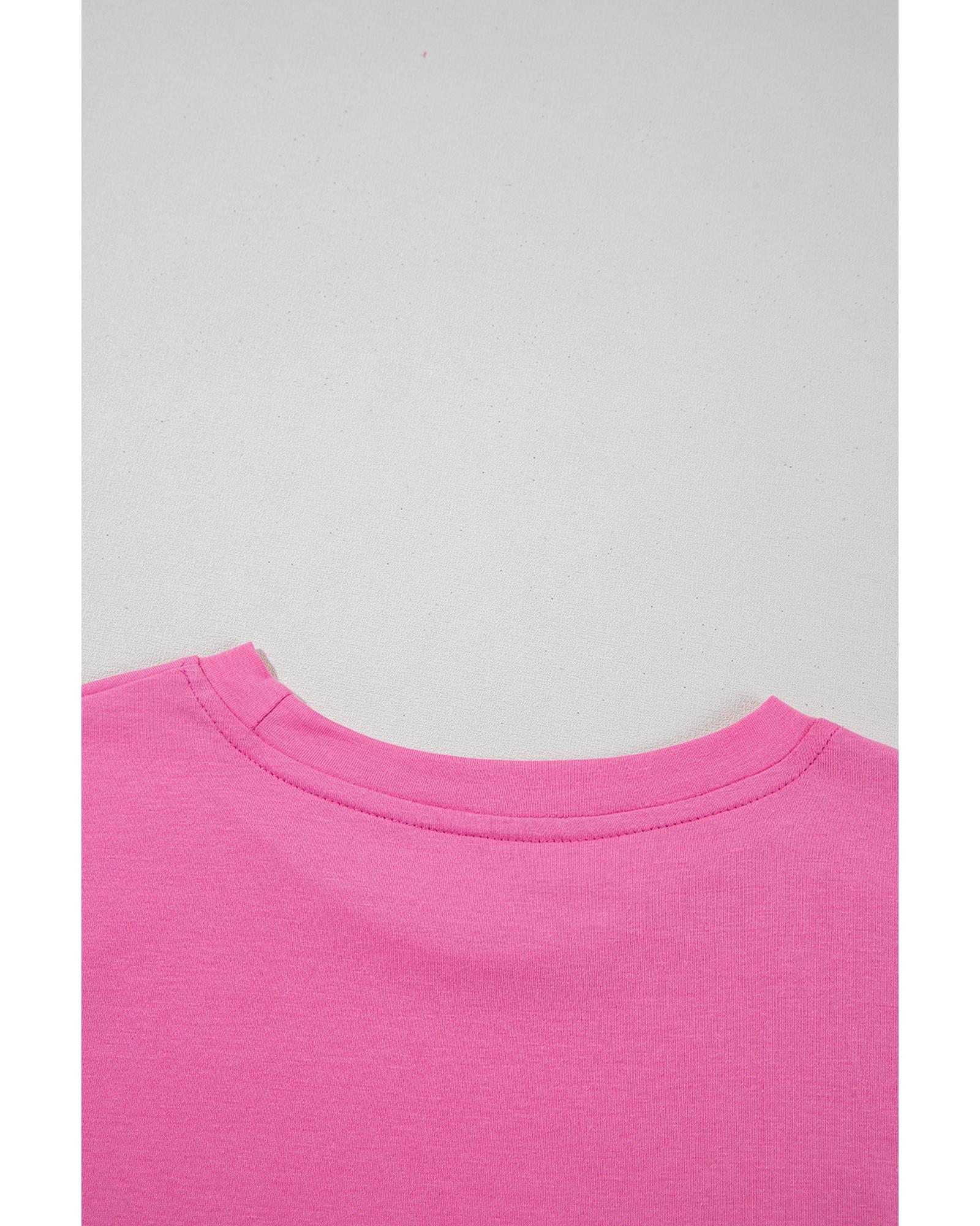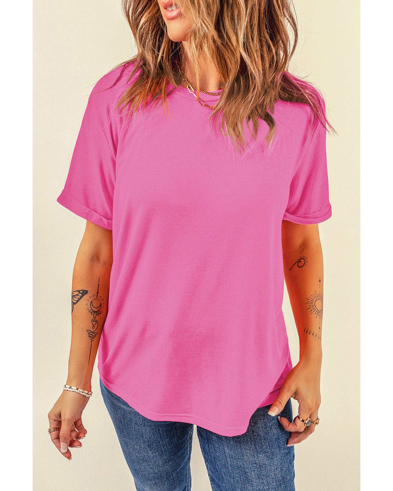 Sachet Pink Bright Casual Plain Crew Neck Tee – XL