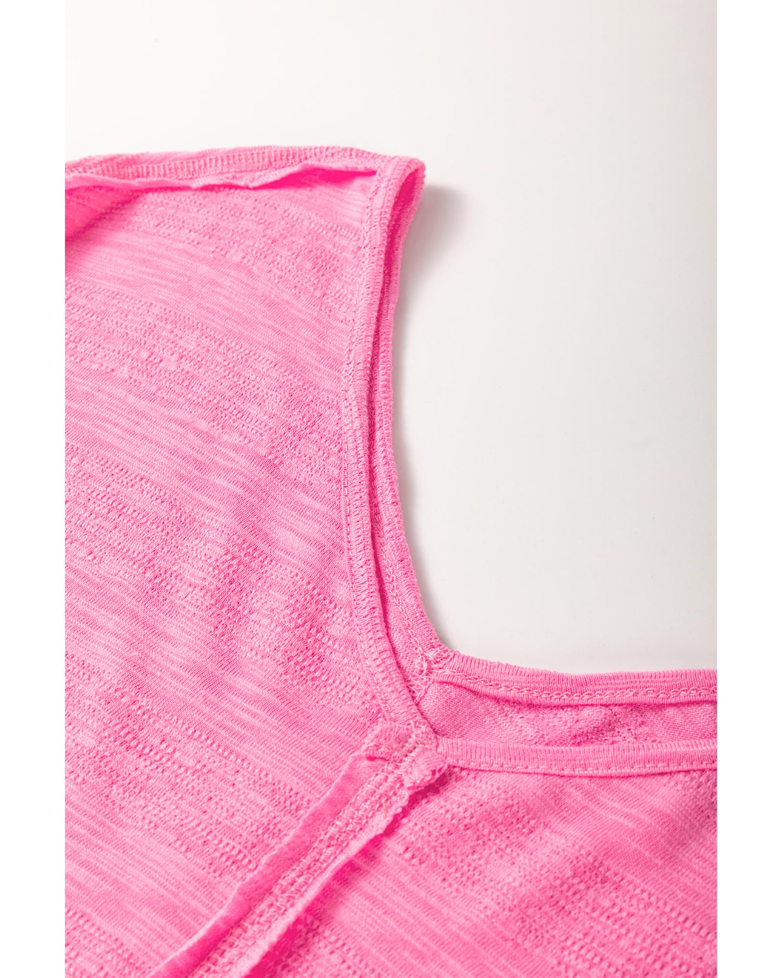 Sachet Pink Contrast Patchwork 3/4 Sleeve V Neck Loose Blouse – M