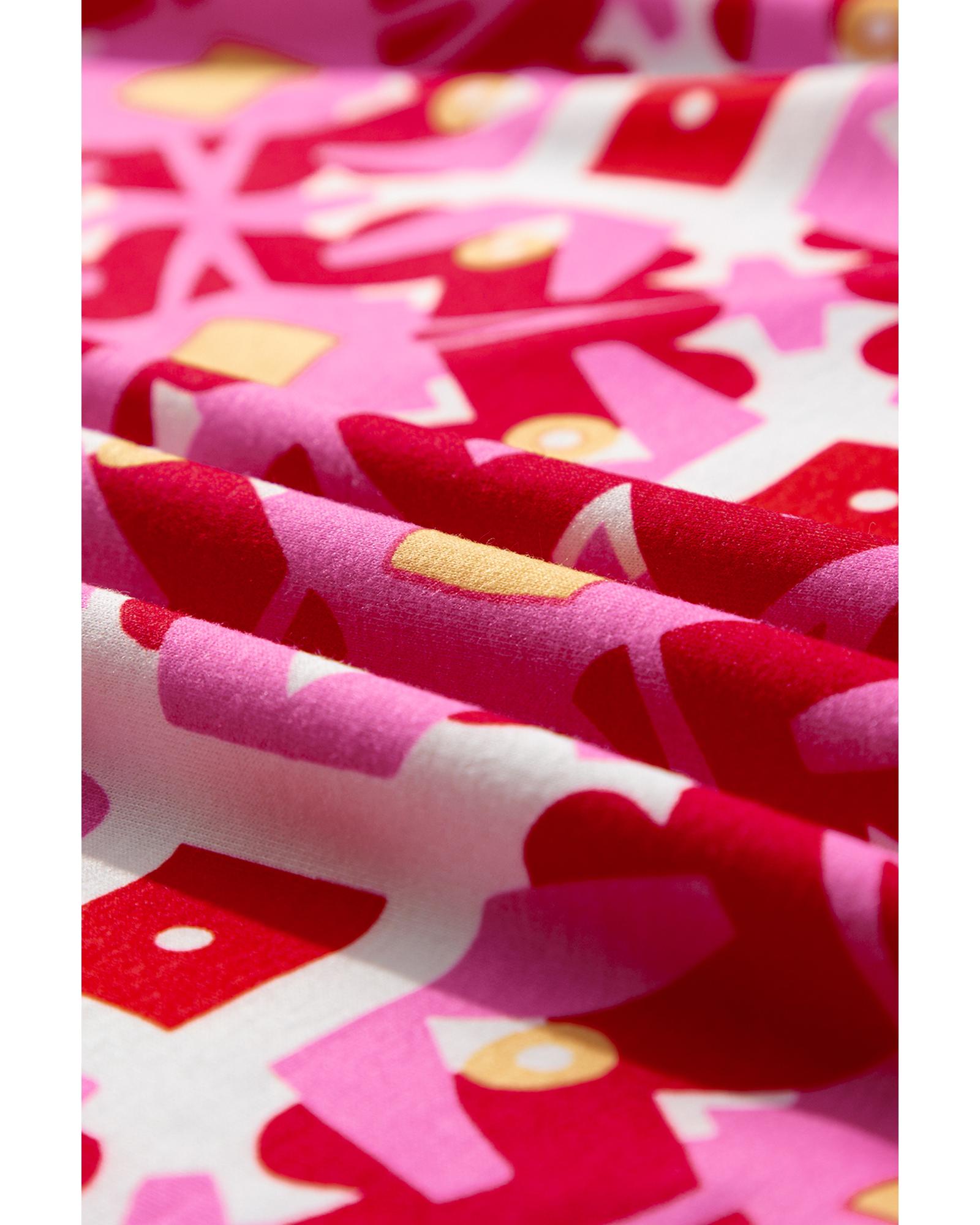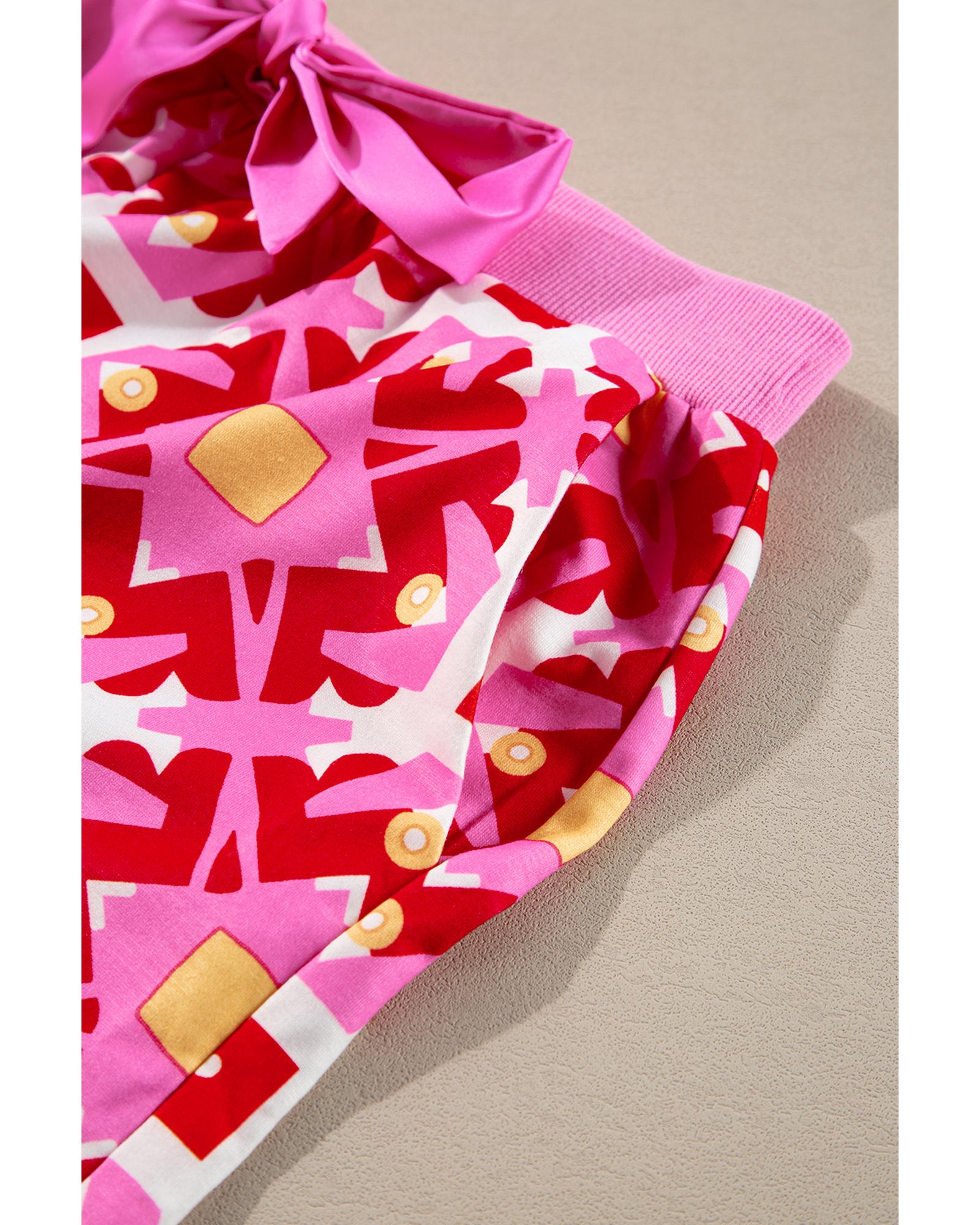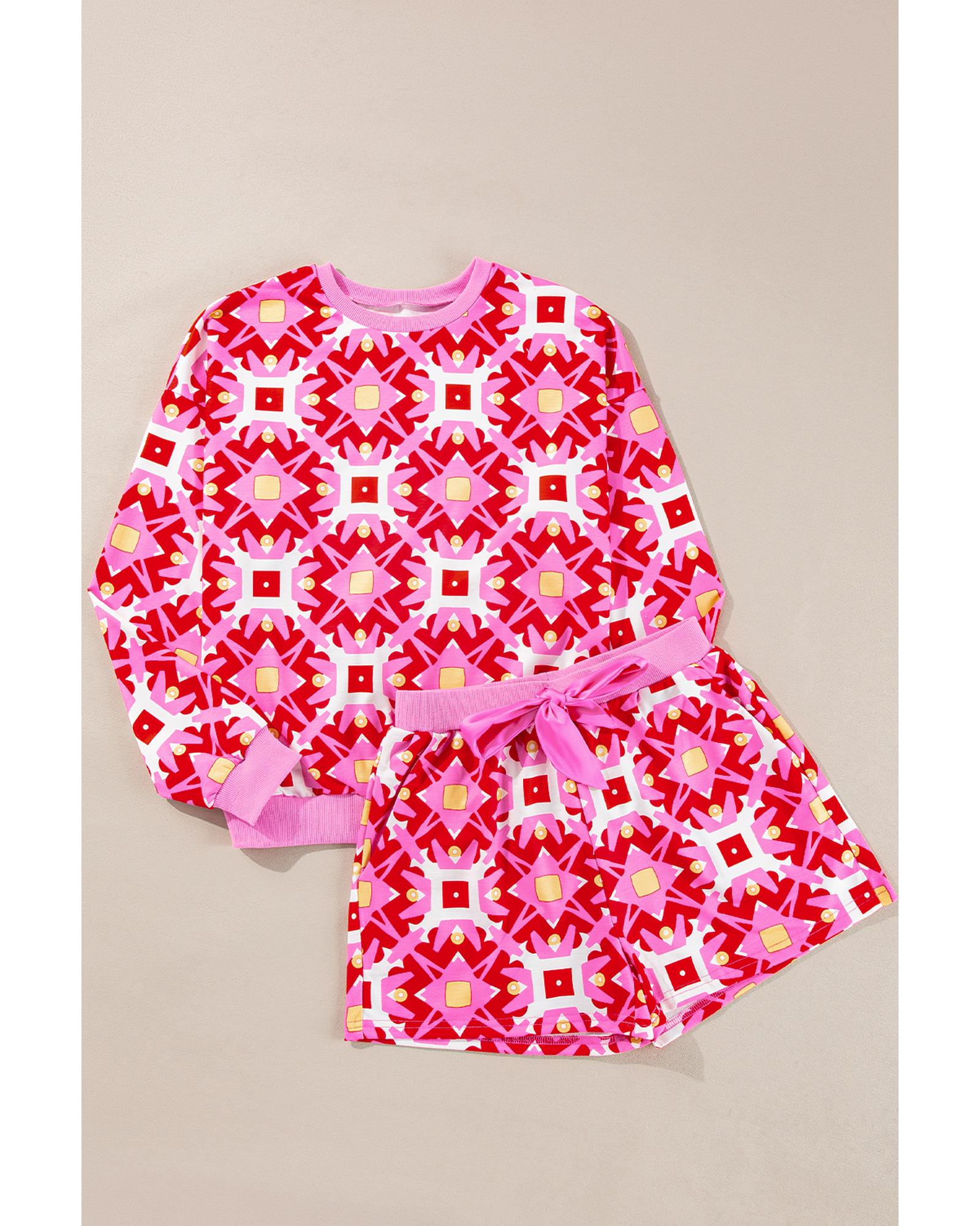 - Sachet Pink Geometric Print Long Sleeve Top and Drawstring Shorts Set