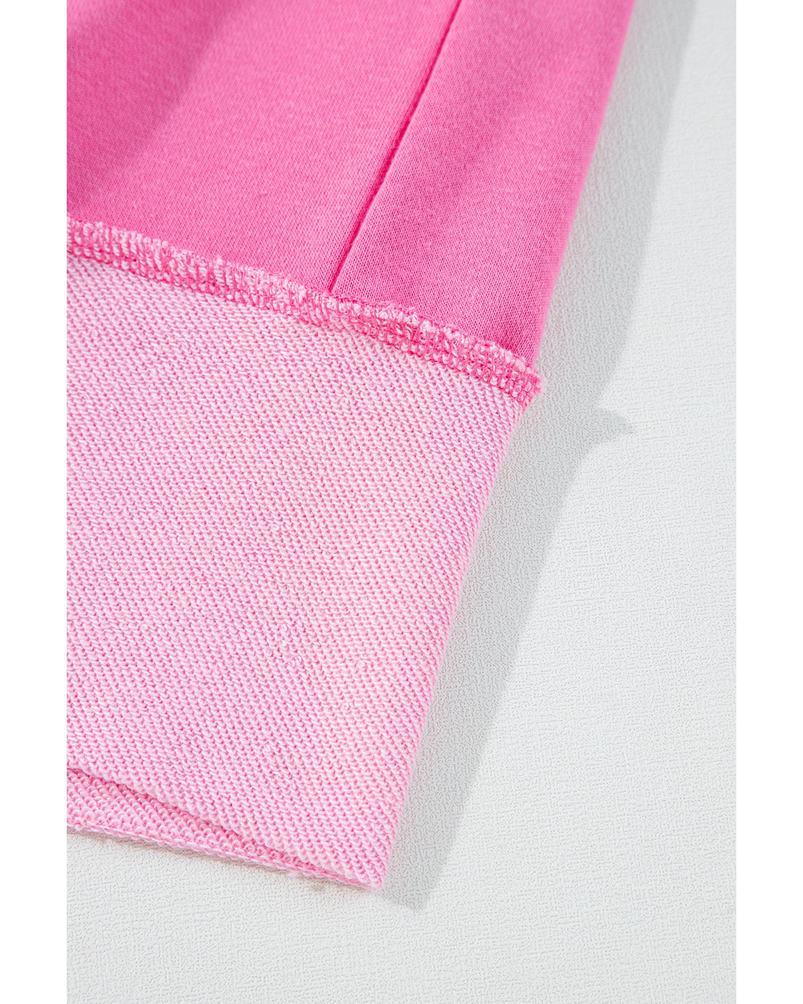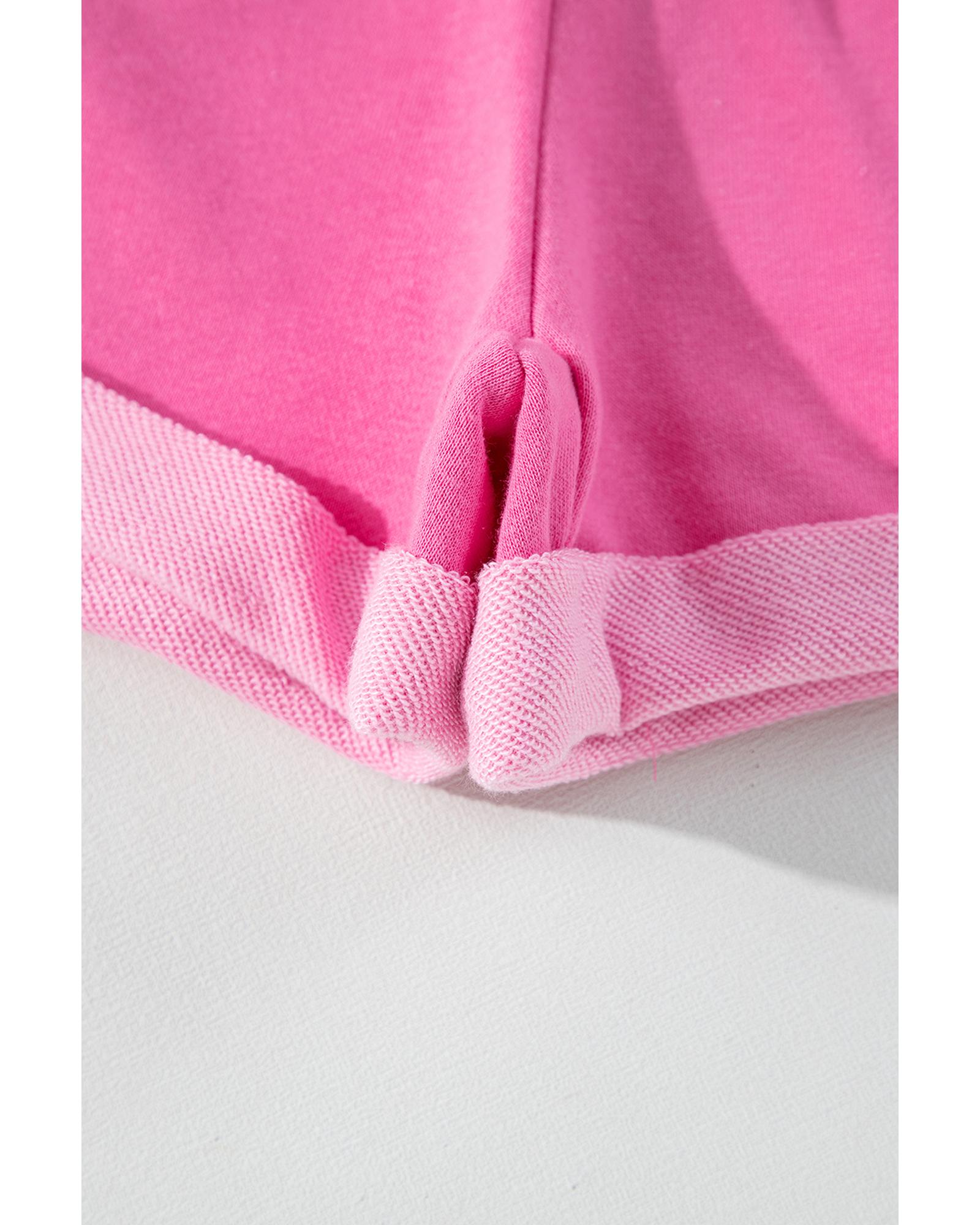 - Sachet Pink High Low Patchwork Long Sleeve Top and Shorts Set