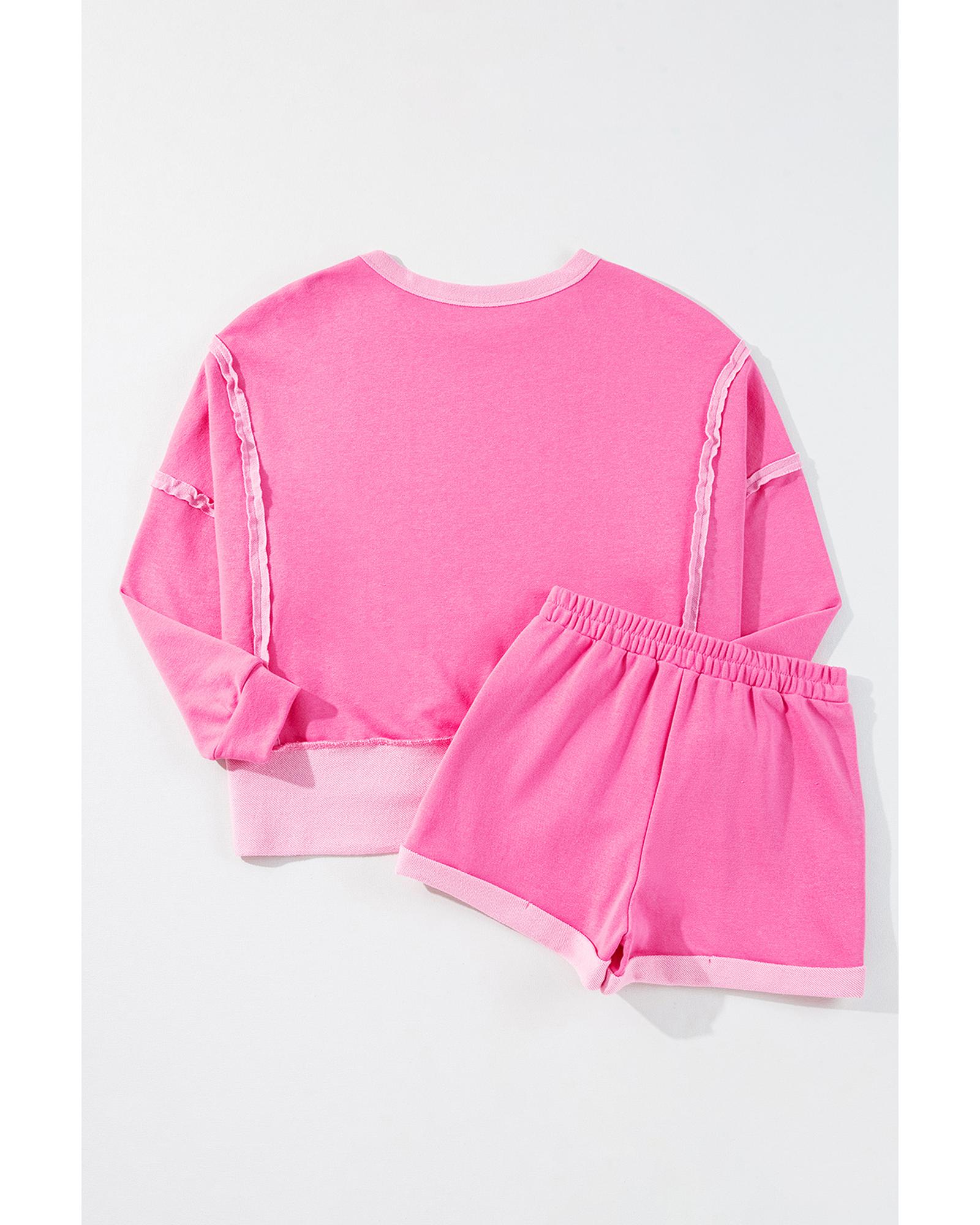 Sachet Pink High Low Patchwork Long Sleeve Top and Shorts Set – XL