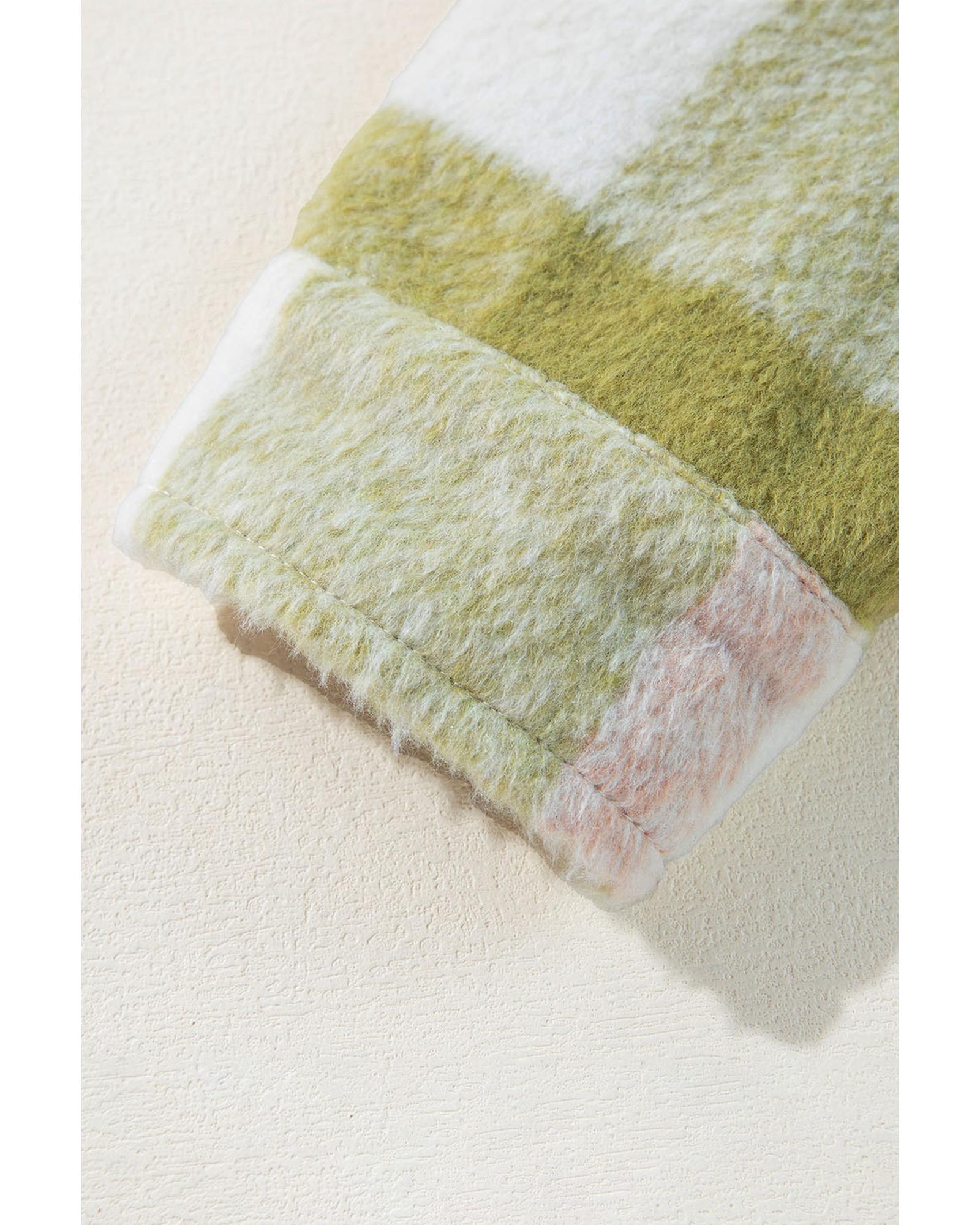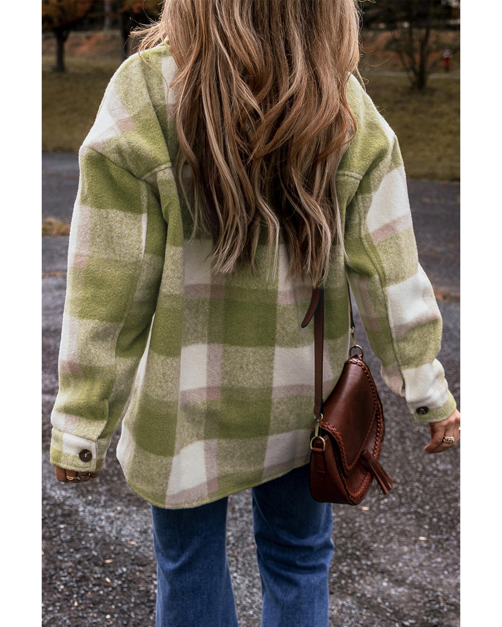 Sage Green Plaid Print Buttoned Flap Pockets Baggy Shacket – M