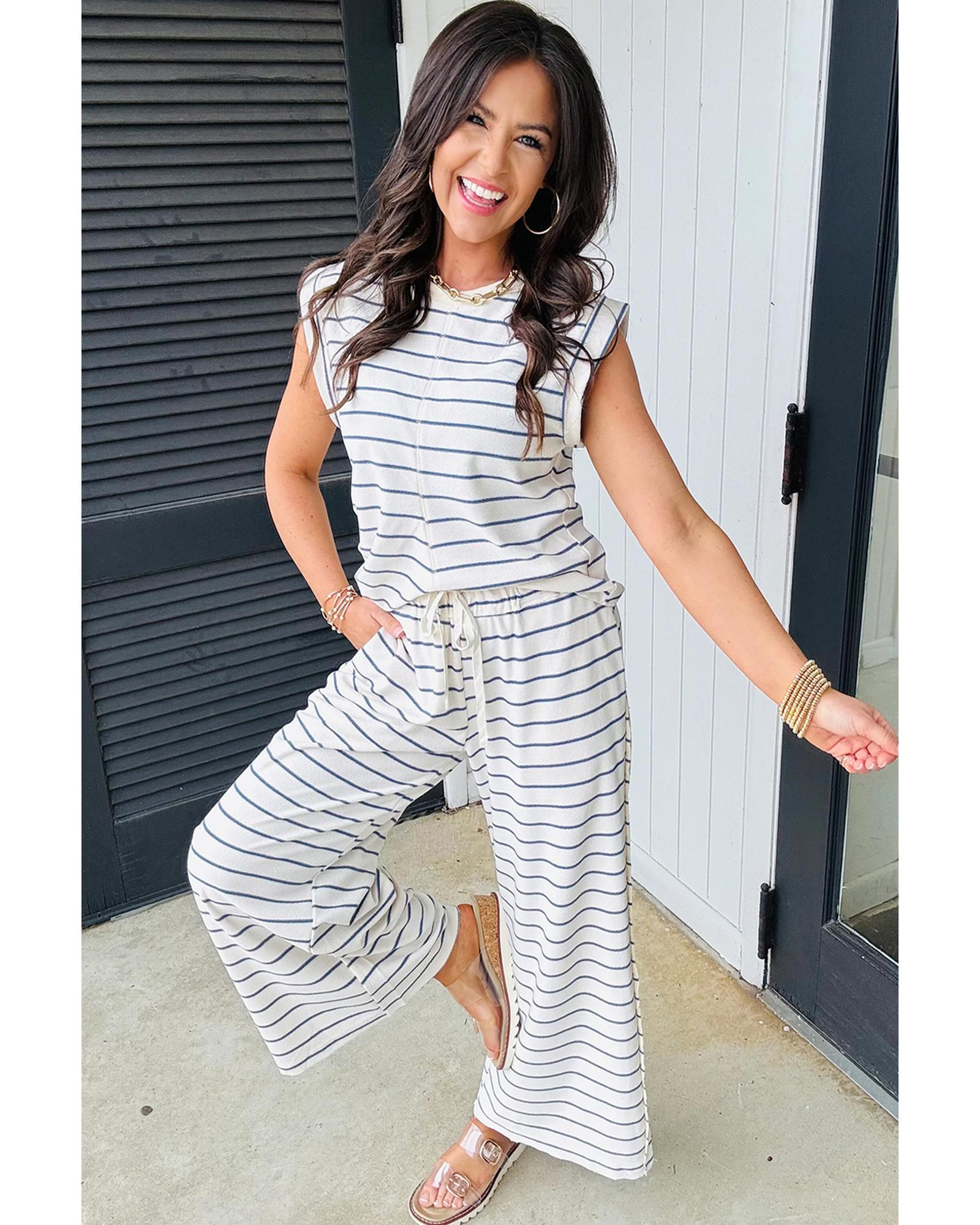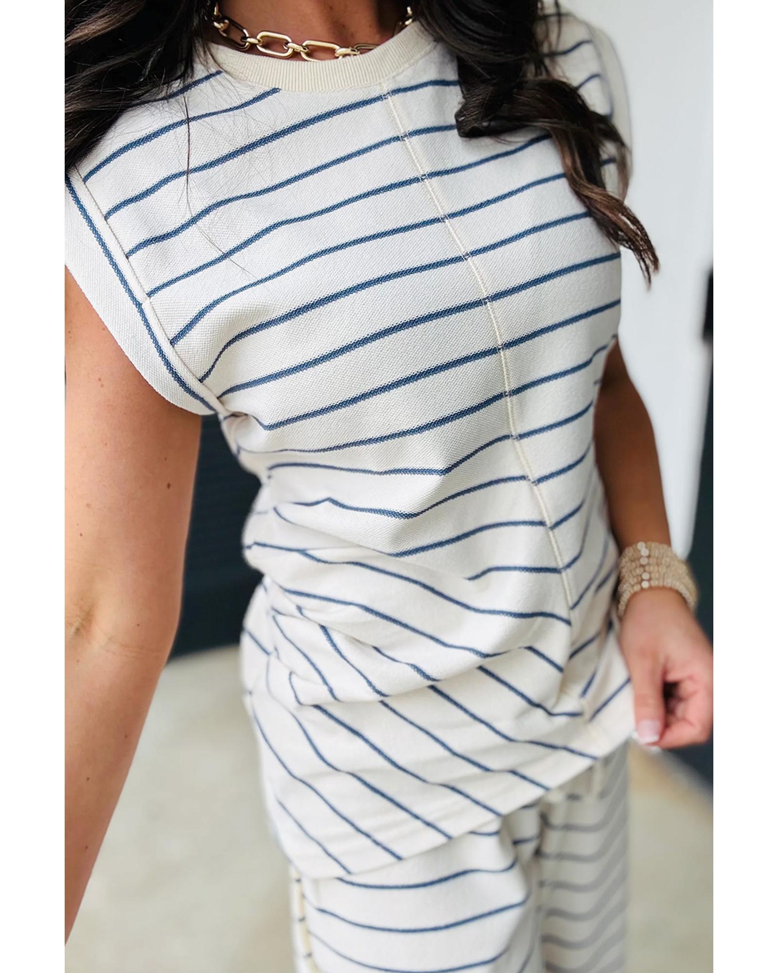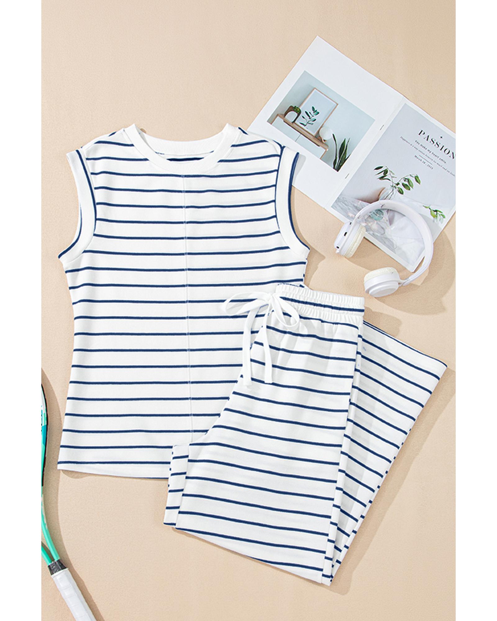 Sail Blue Casual Wide Leg 2pcs Pants Set – L