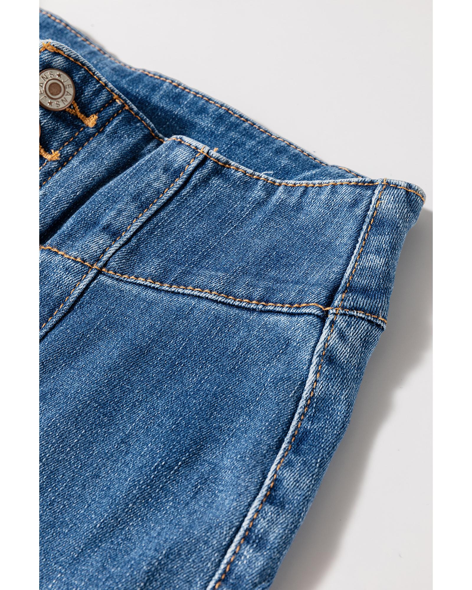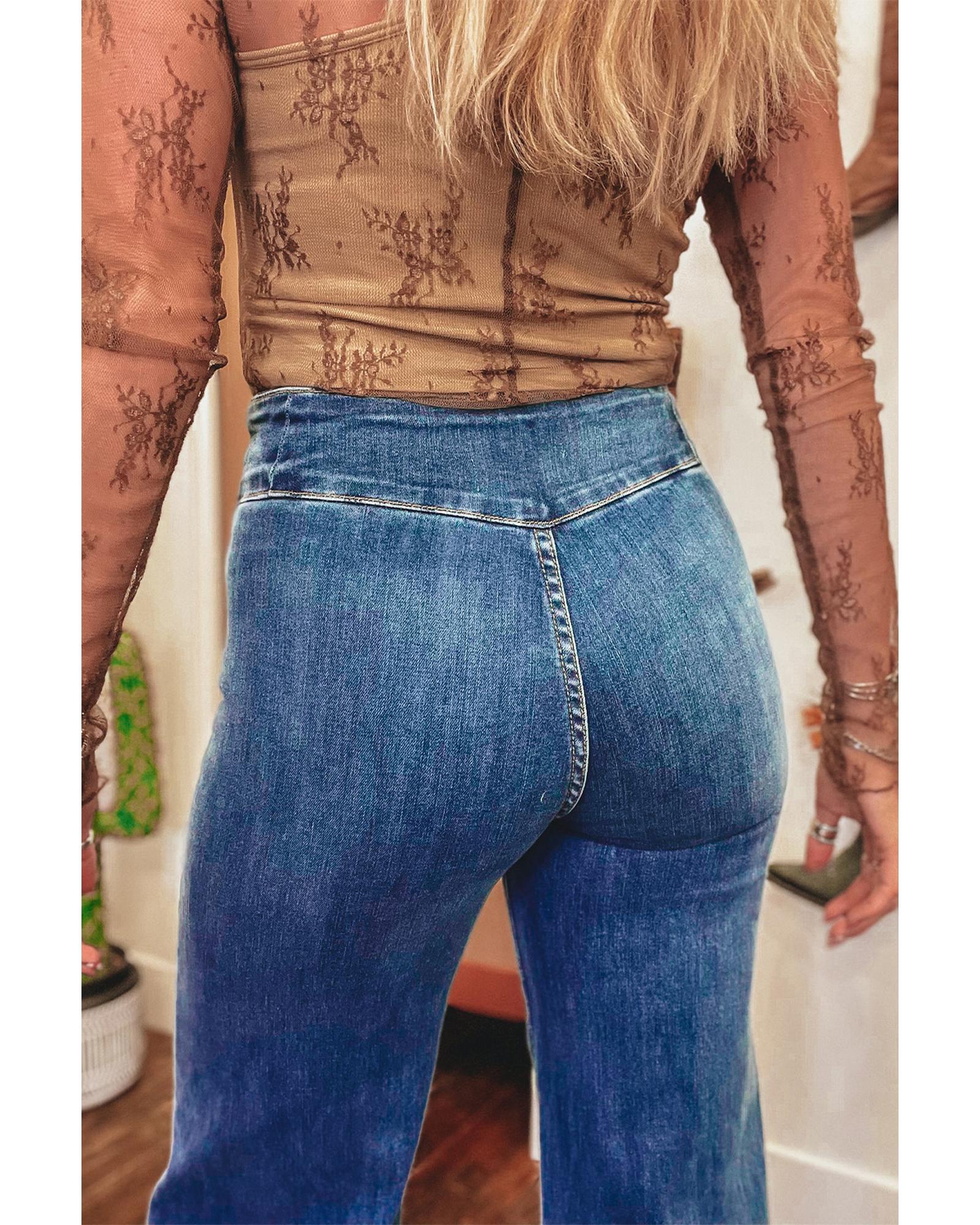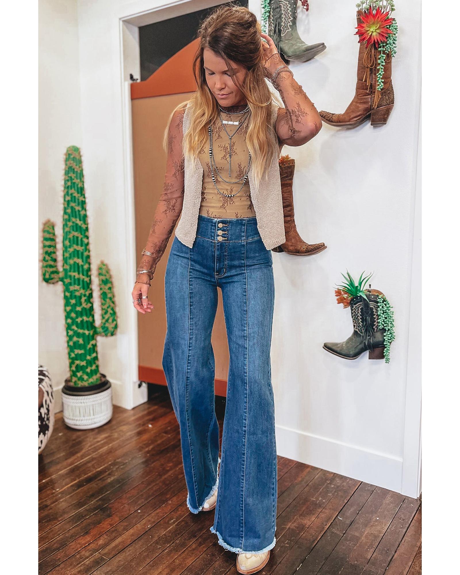 Sail Blue High Waist Button Fly Seamed Raw Hem Flare Jeans - 12 US