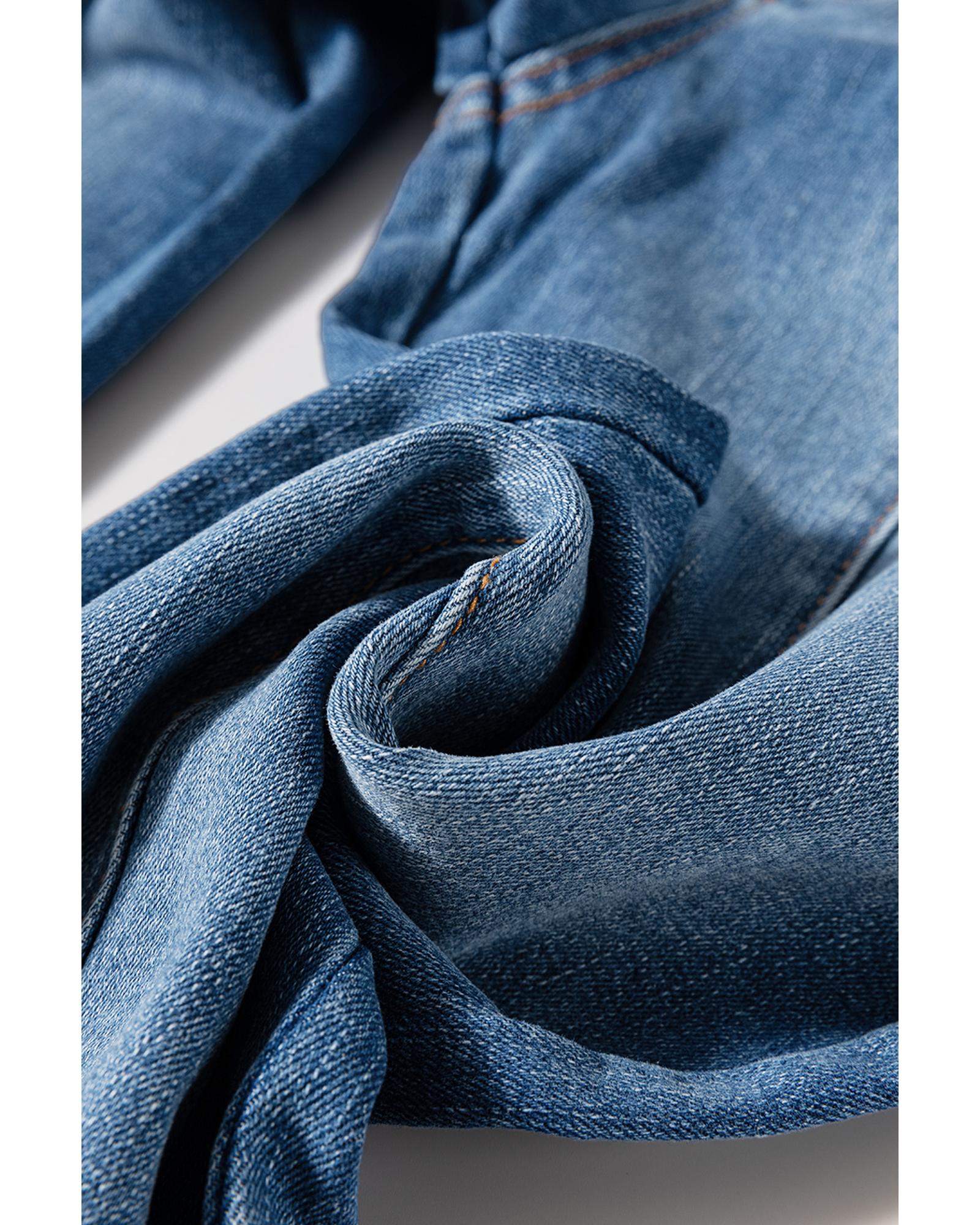 Sky Blue Drawstring High Waist Cargo Pocket Wide Leg Jeans - L