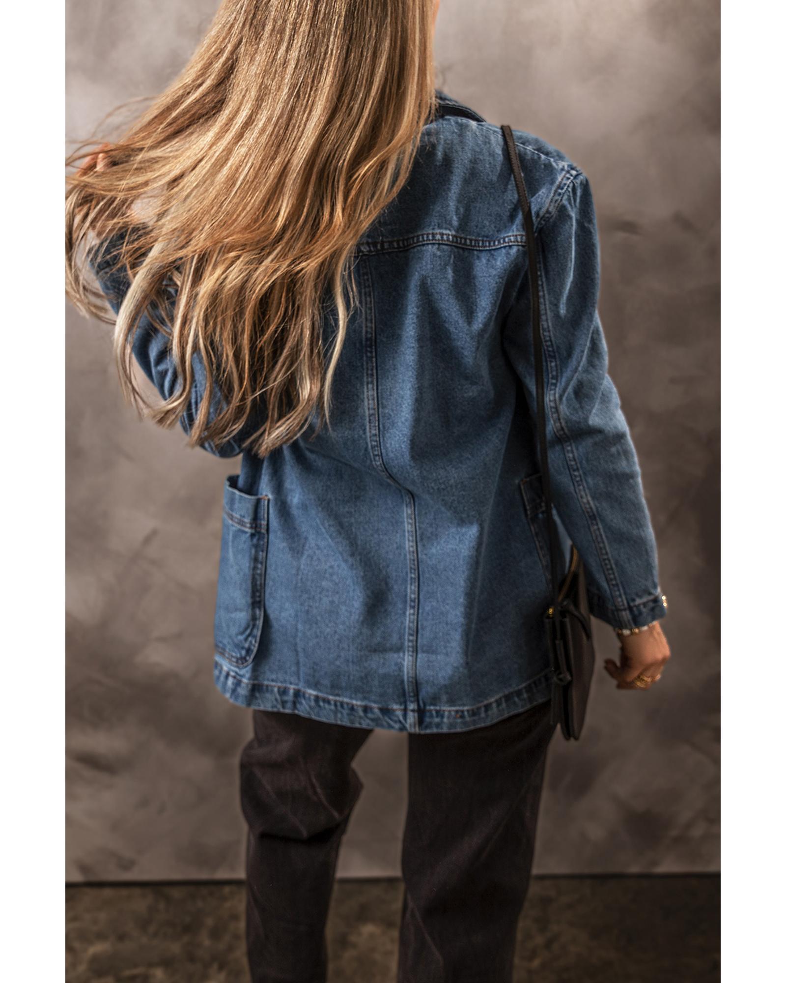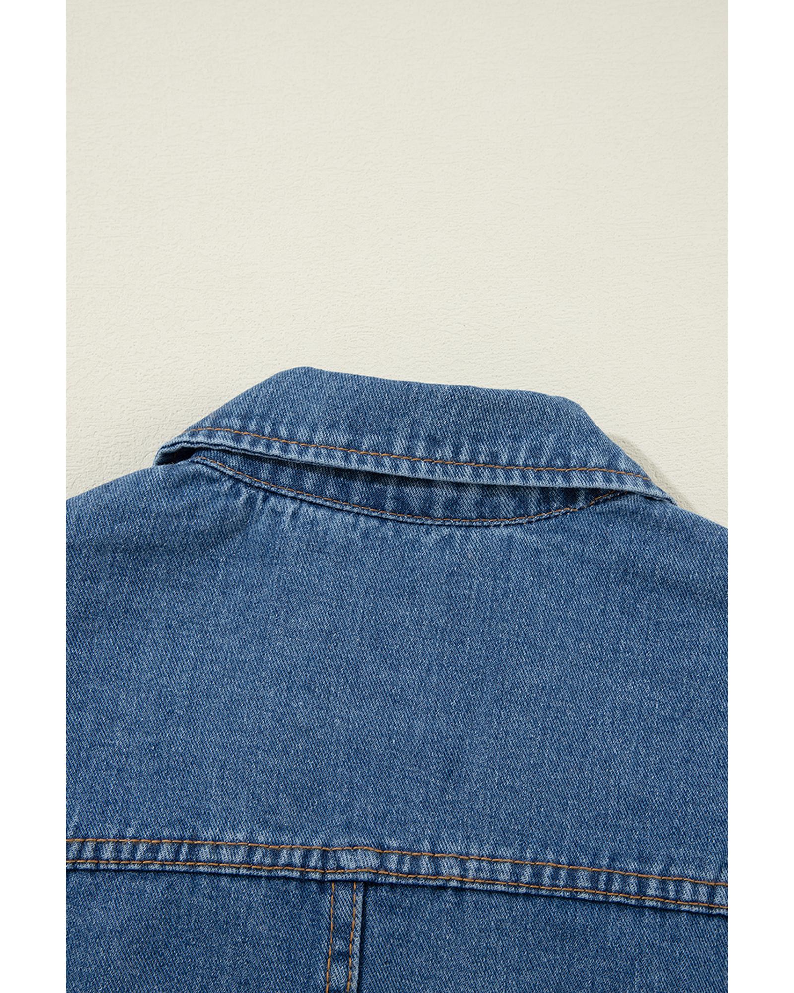 Sail Blue Side Pockets Lapel Collar Denim Jacket – M