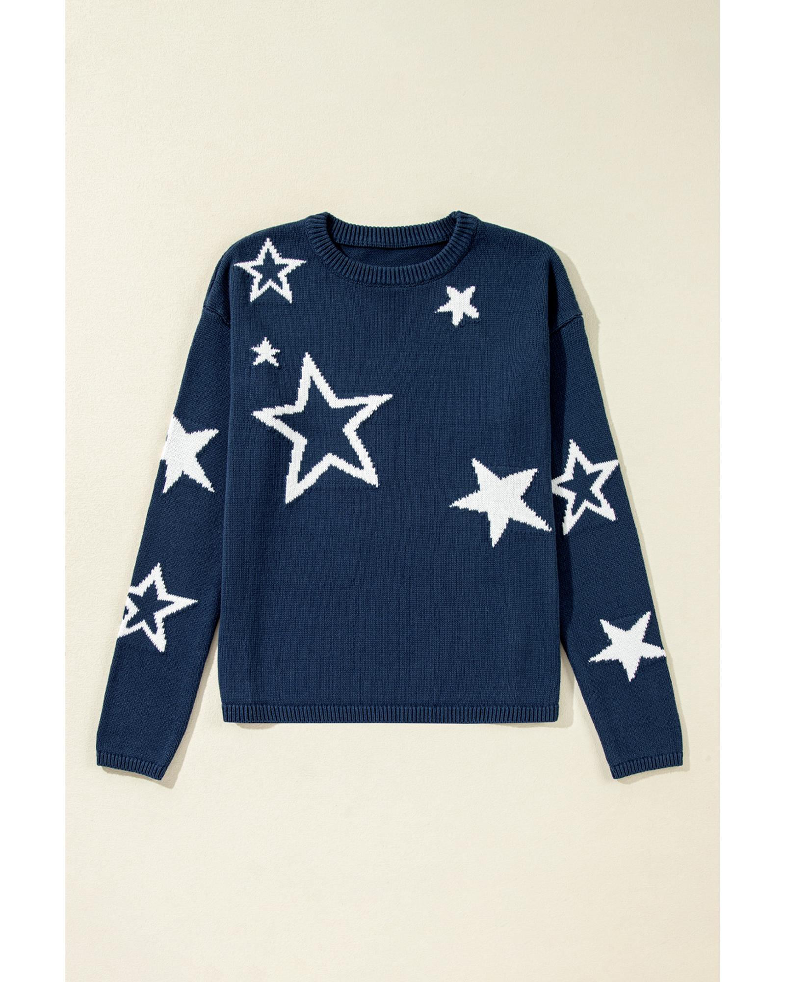 Sail Blue Star Pattern Drop Shoulder Knitted Sweater – XL