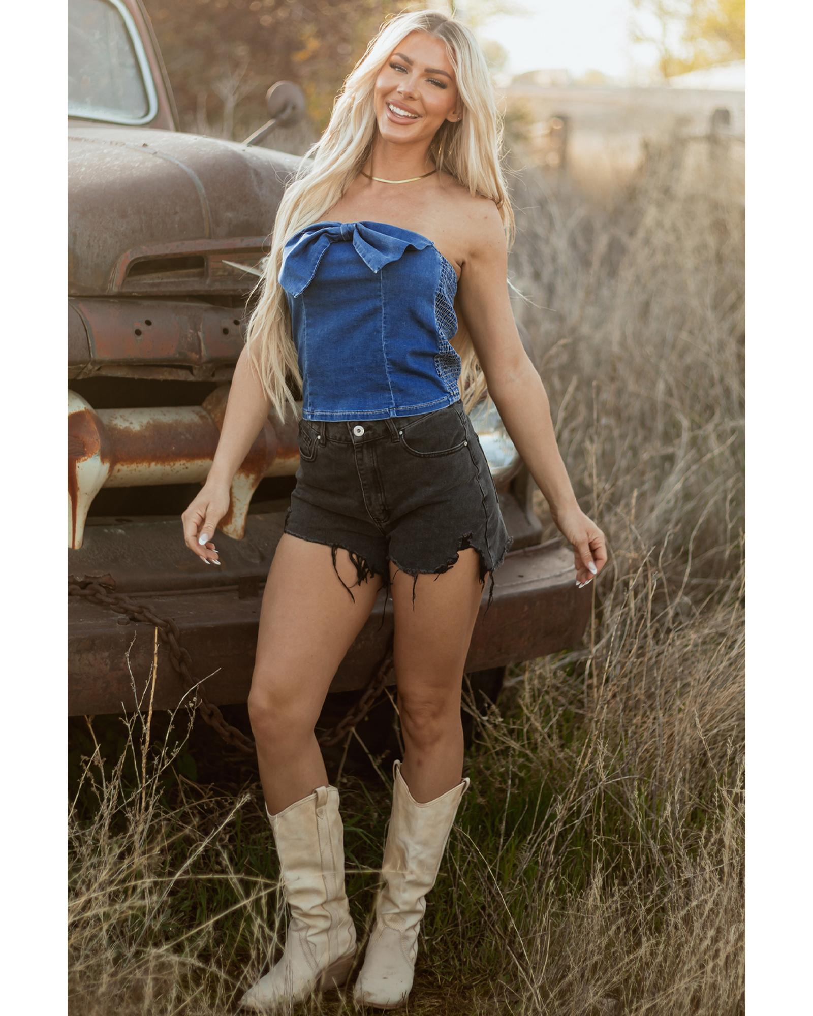 Sail Blue Vintage Bow Front Smocked Back Denim Tube Top – XL