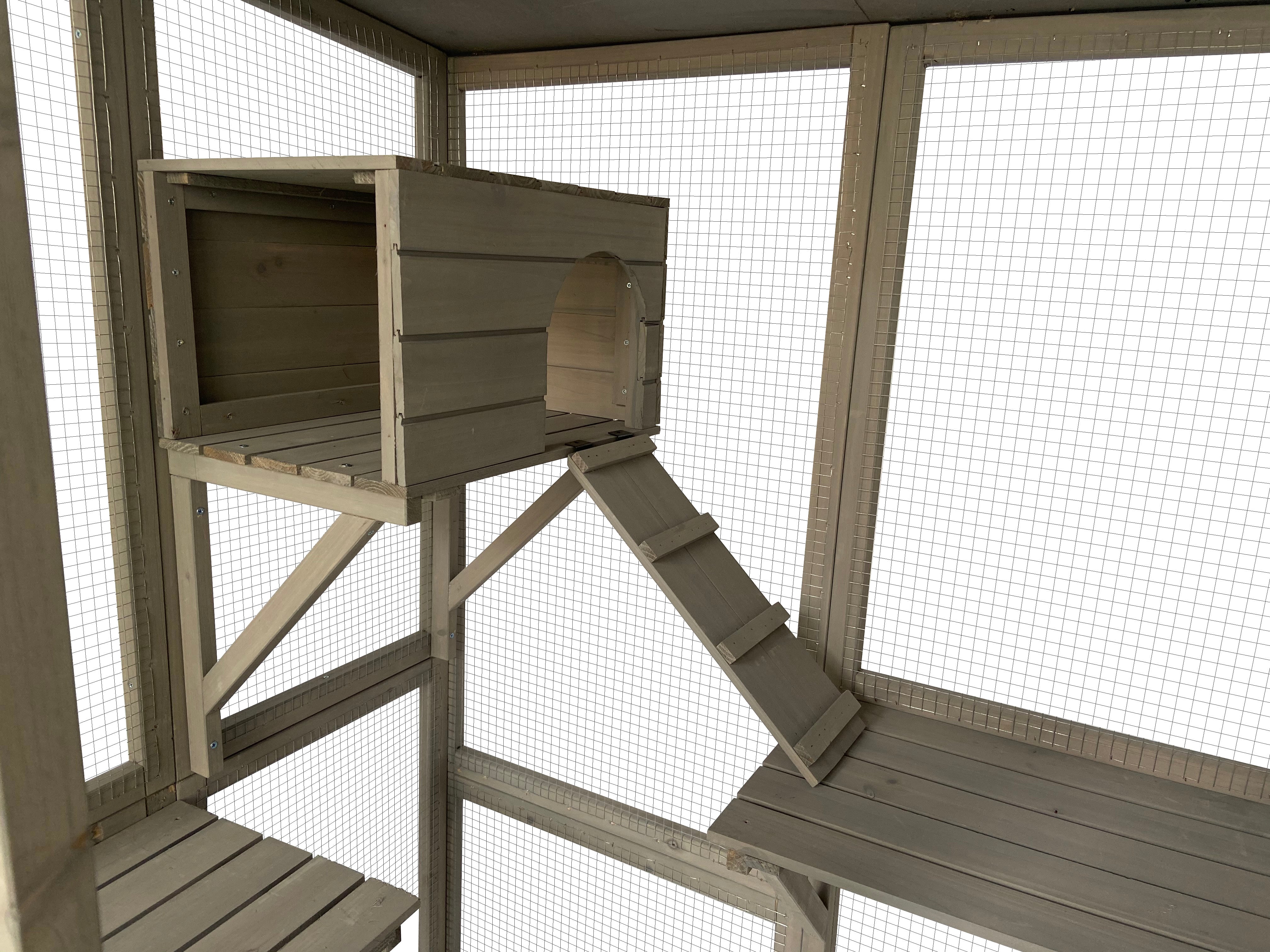 Samland Wooden Cat Cage Walk in Cat Condo House Kitten Ferret Enclosure Cage