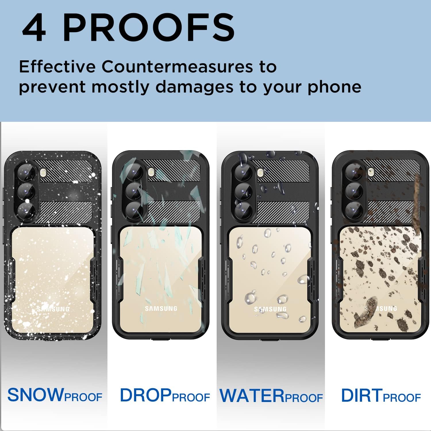 - 【IP68 Certified Waterproof】Underwater full sealed IP68 Certified Samsung Galaxy S23 Plus waterproof case, designed and tested to submersible to 6.6-10ft/2-3m for 30 minutes, and it Can take pictures underwater.
