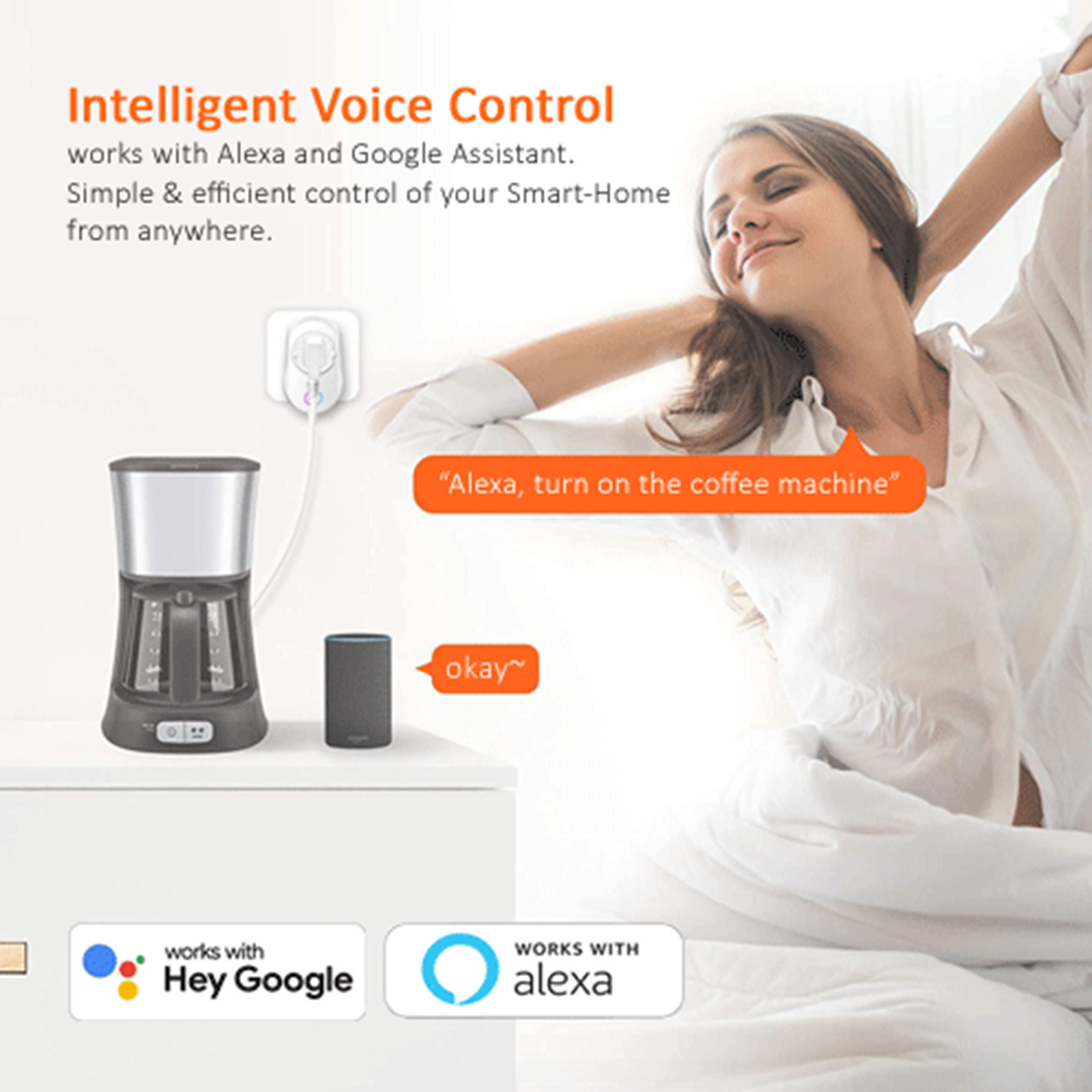 - Voice Control – Manage your smart plug with voice commands via Amazon Alexa or Google Assistant